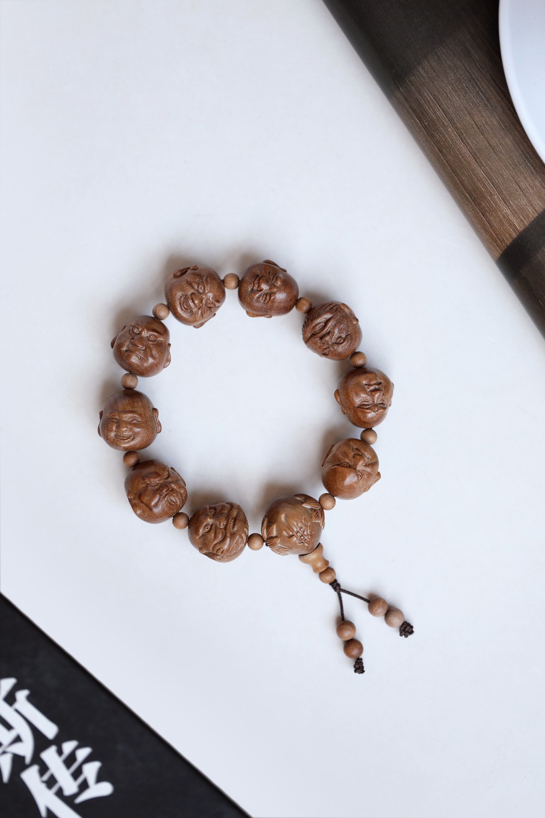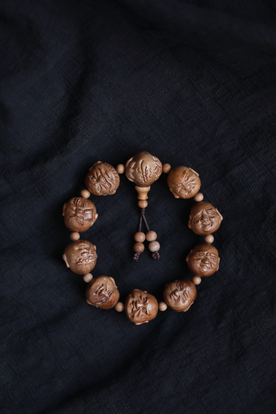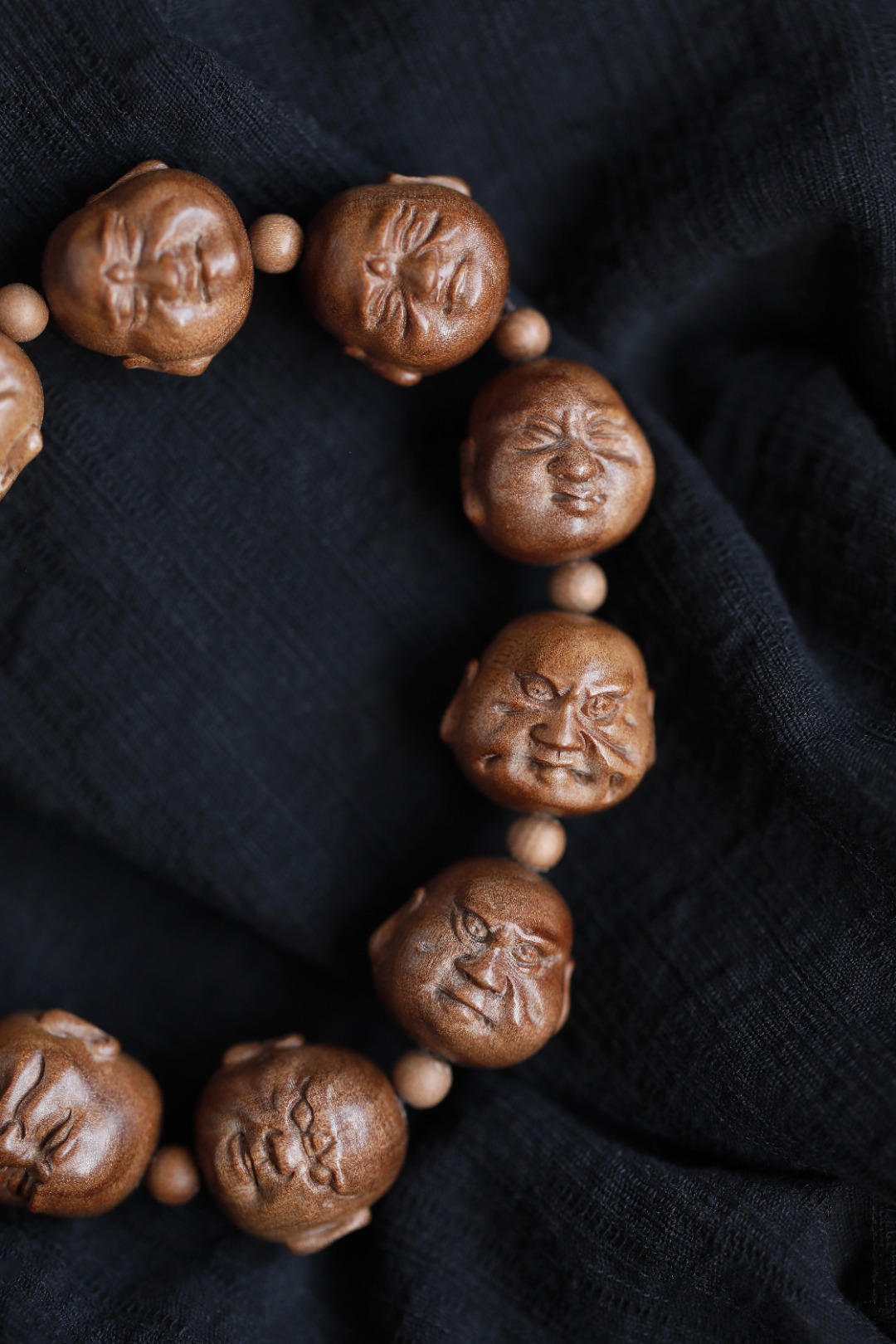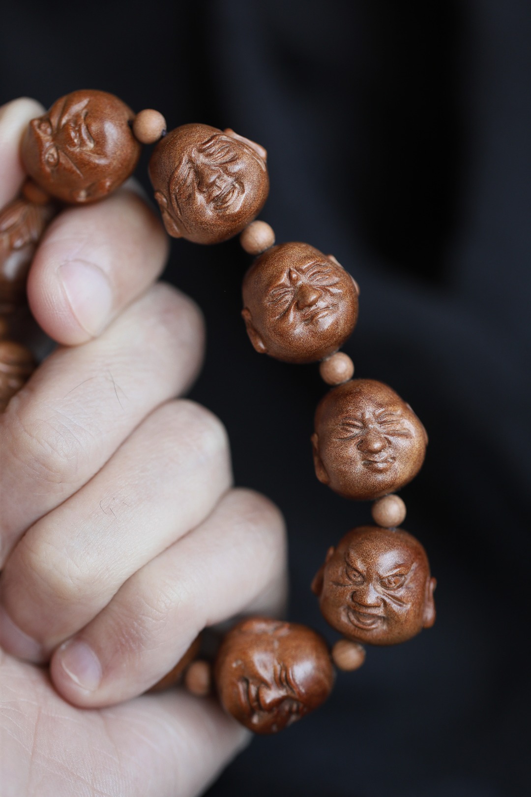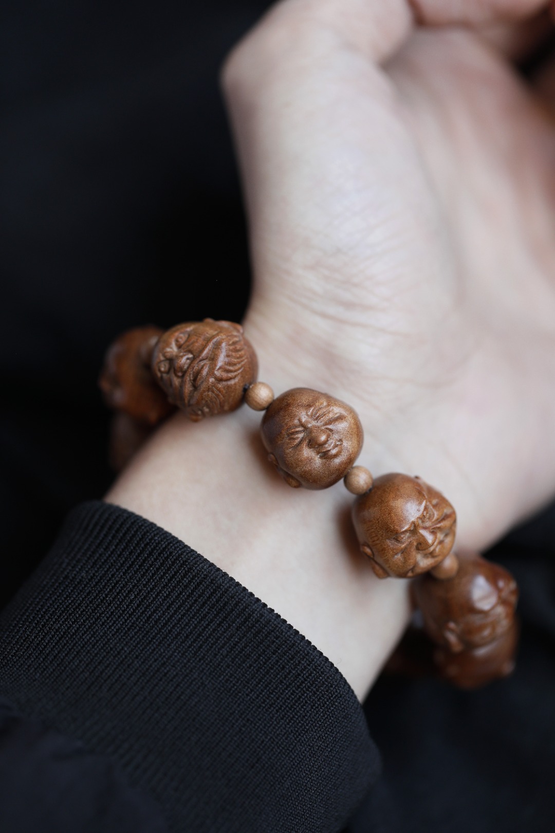 天然老山檀香,香气迷人,罗汉雕刻传神,