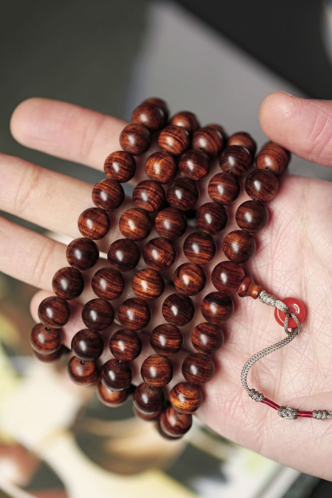 6027 海黄紫油梨老料带水波纹 1.0cm108颗 重70g