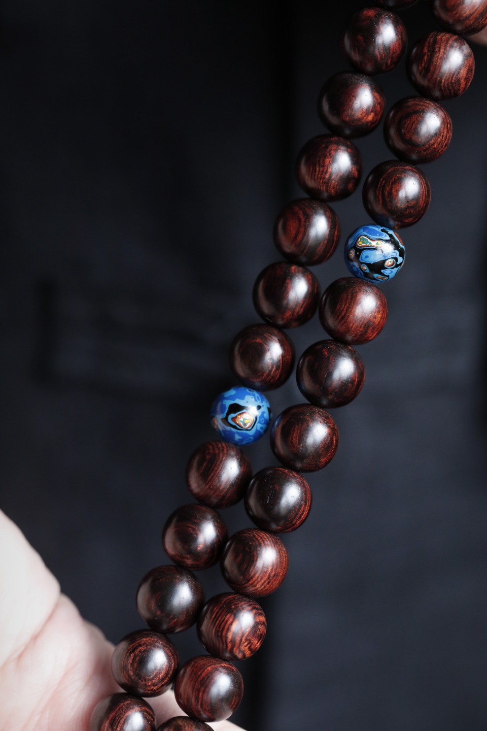 【5705】紫油梨海黄老料108颗10mm念珠 墨线丰富 降香味浓郁  约79.1g