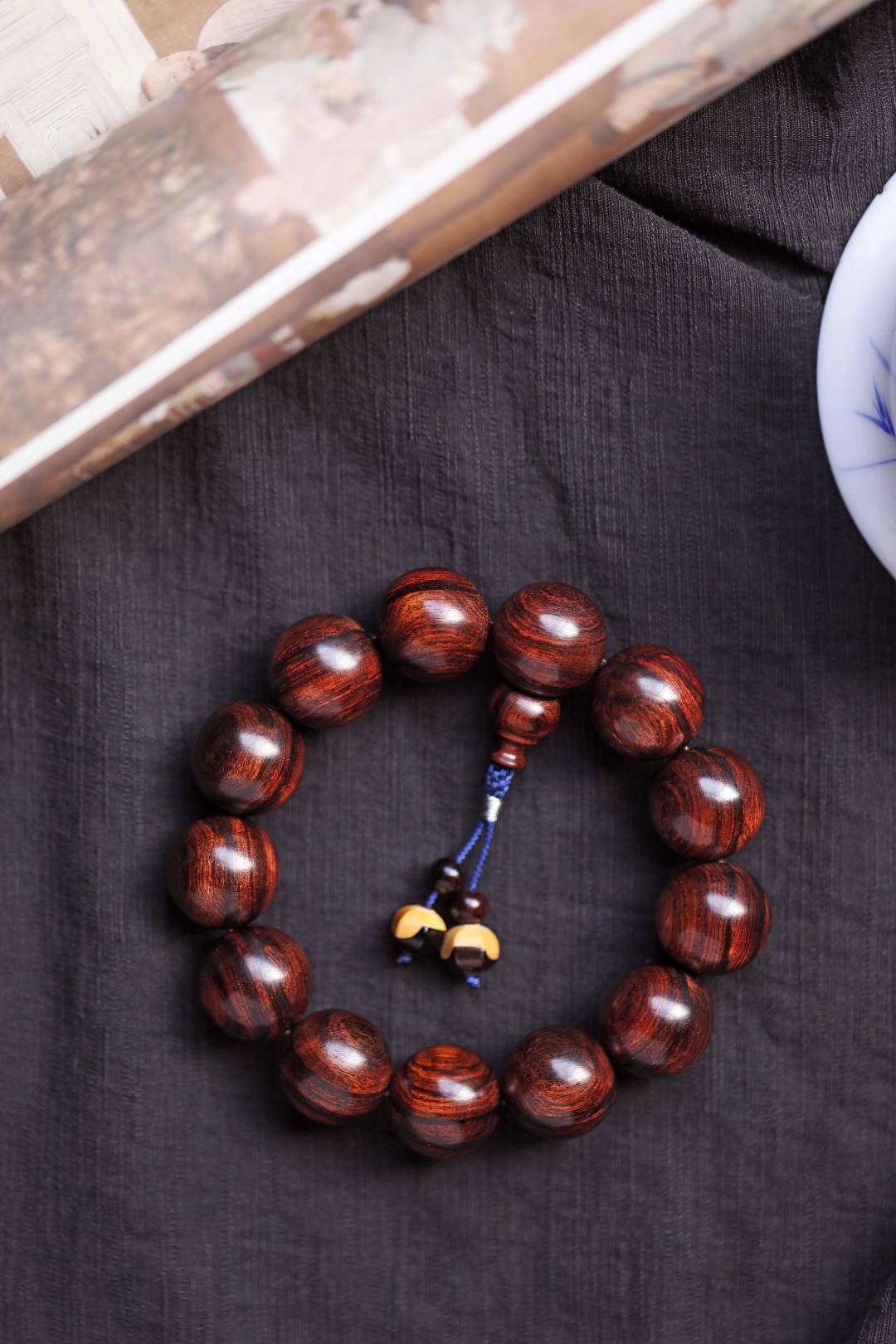 6090 沉水级紫油梨顺纹老料1.8手串 纹理绚丽 重44.5g