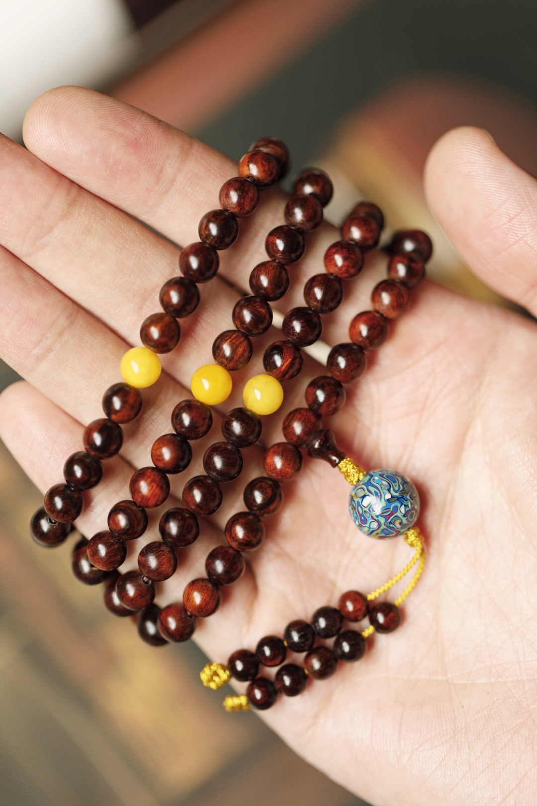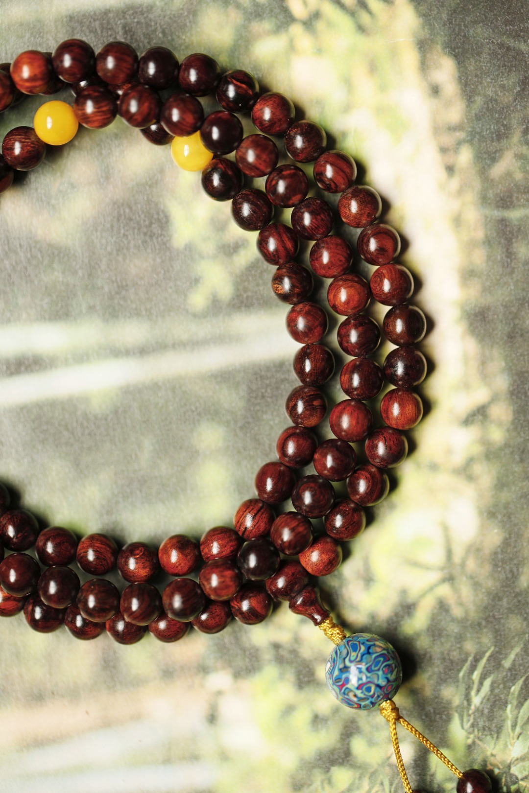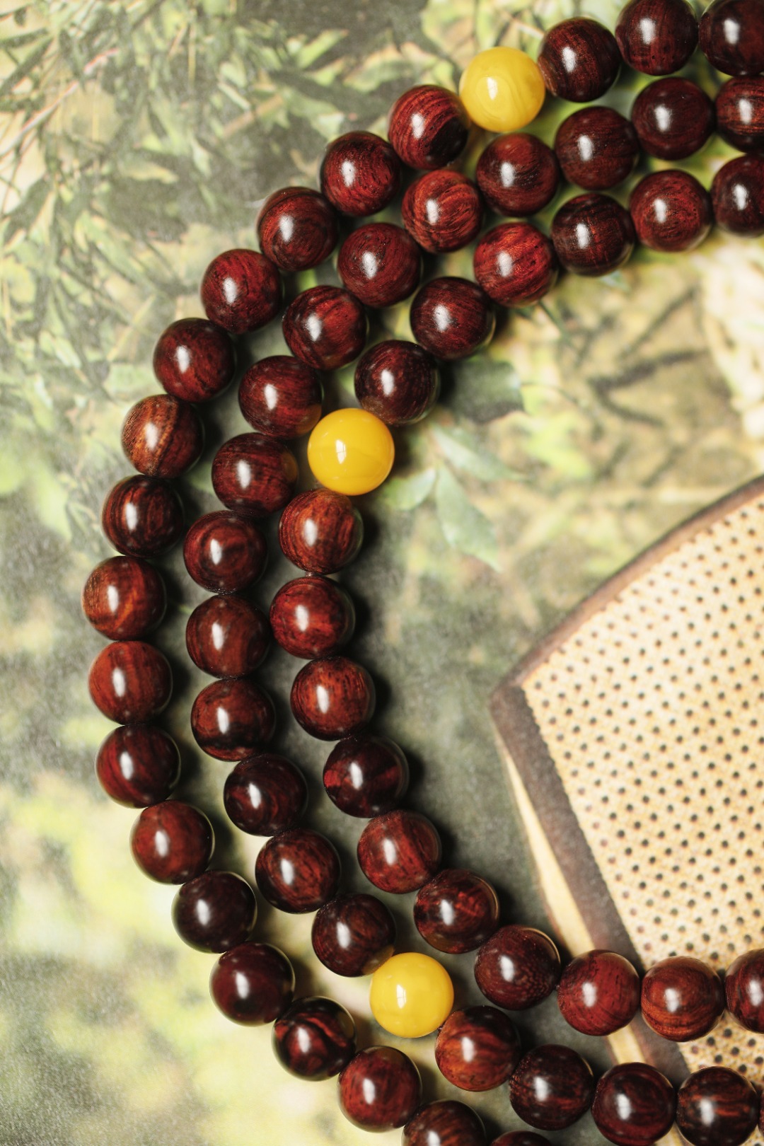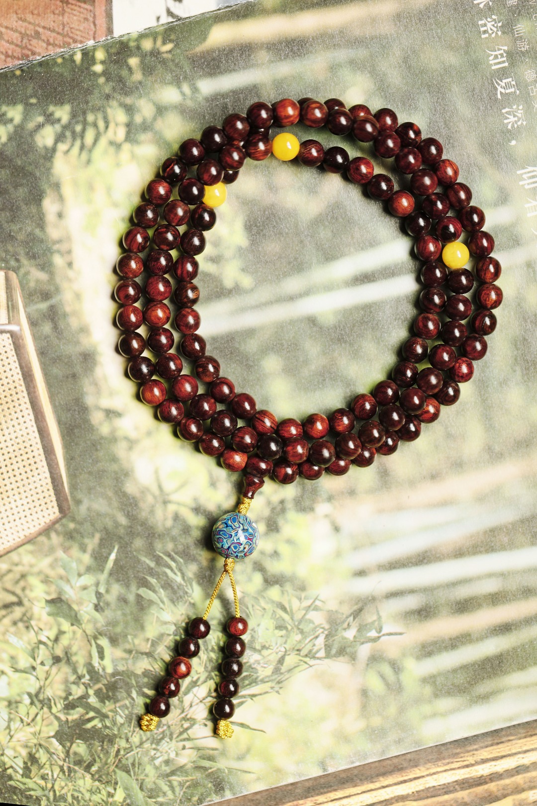 【5676】高档 沉水级 海黄紫油梨老料108颗7mm念珠 纹理清晰 降香浓郁 约26.4g