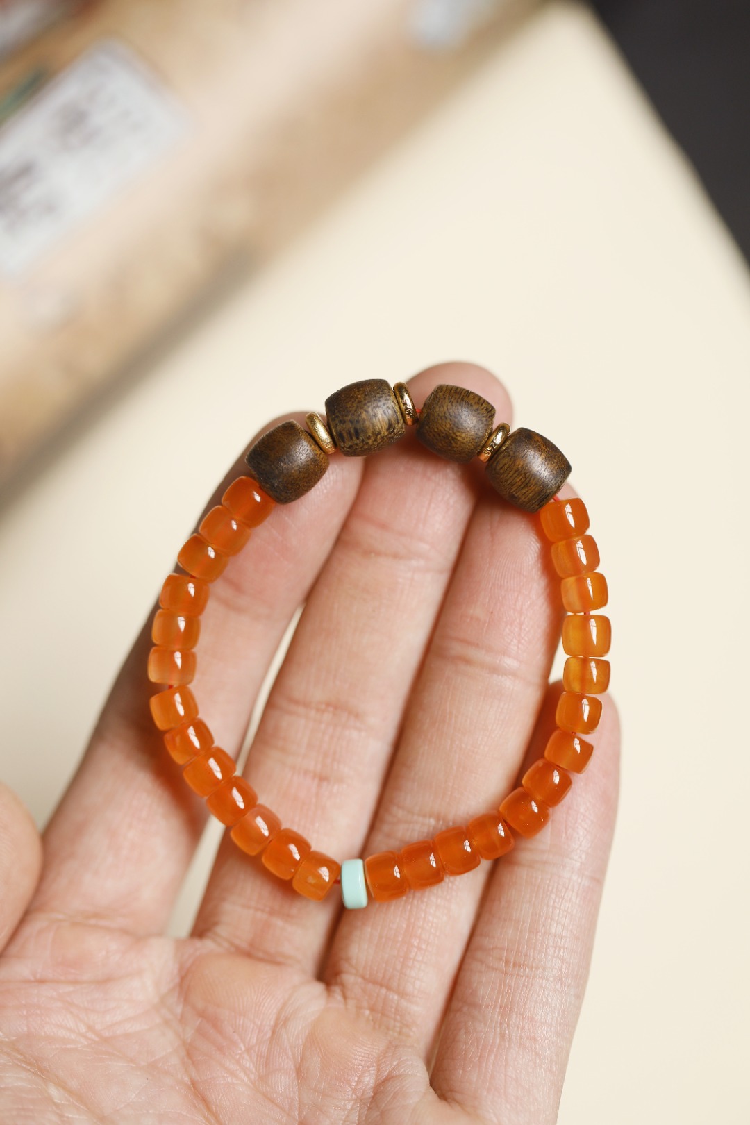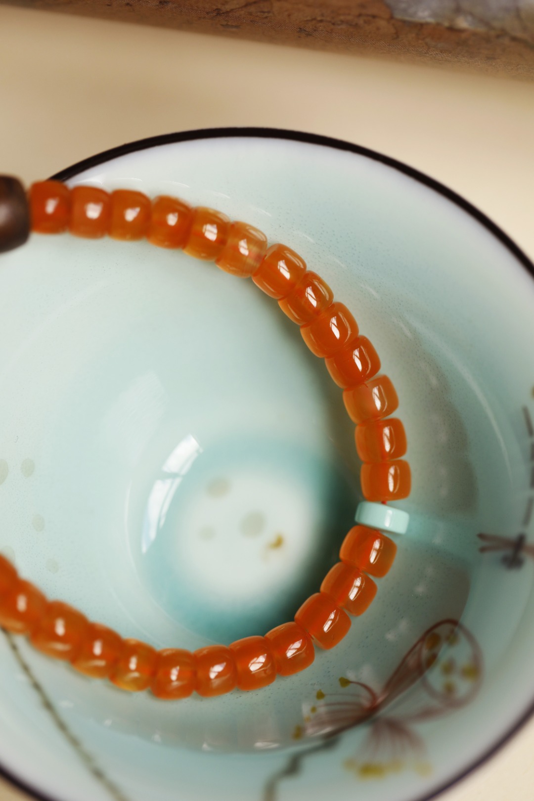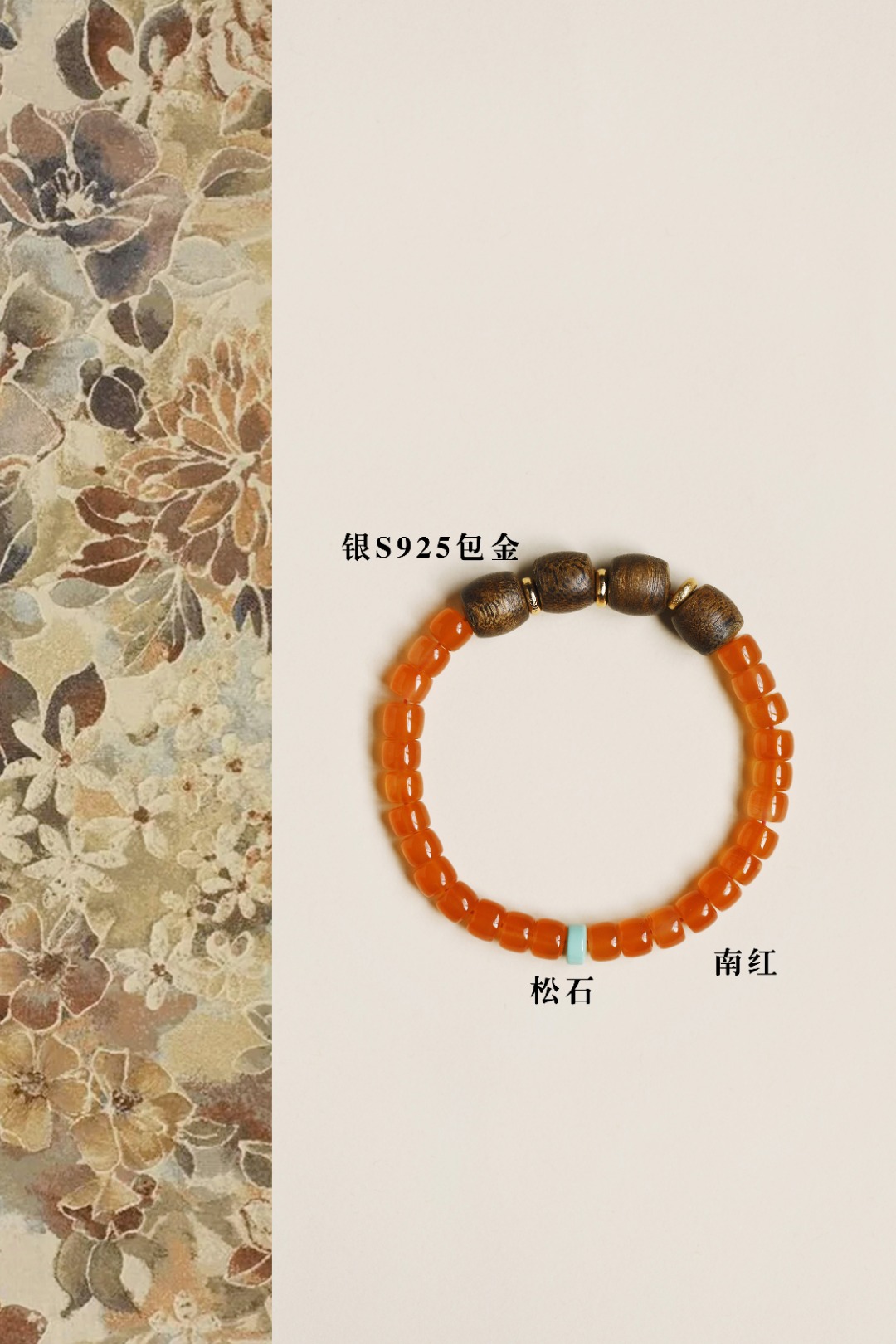 绿棋楠 南红【落欢】单圈手链 9x9mm 4颗