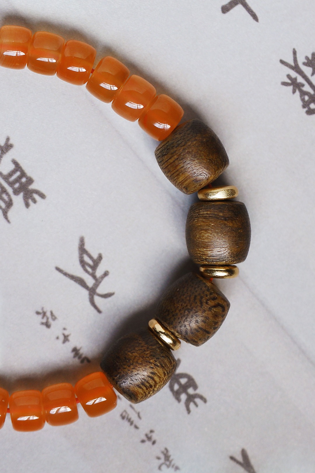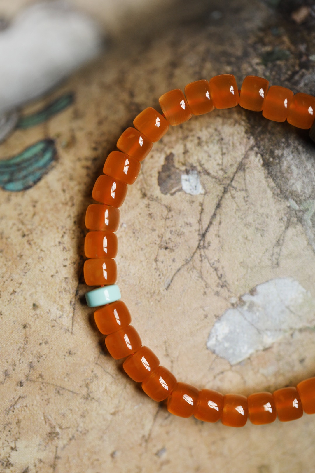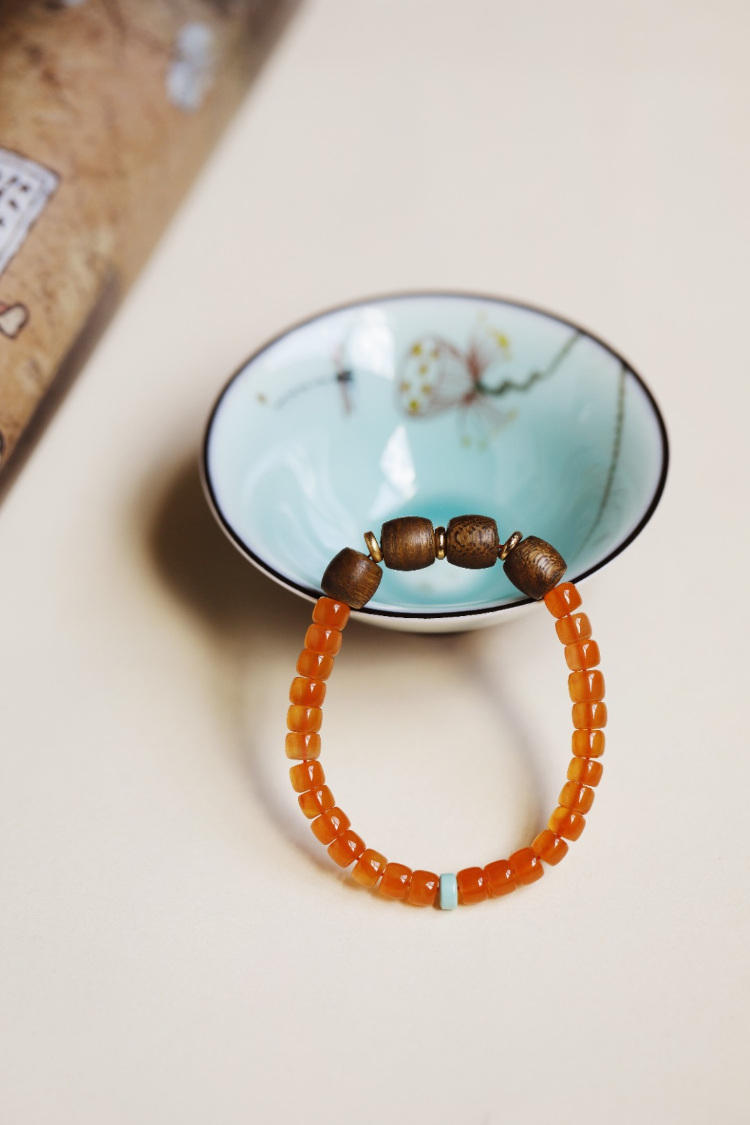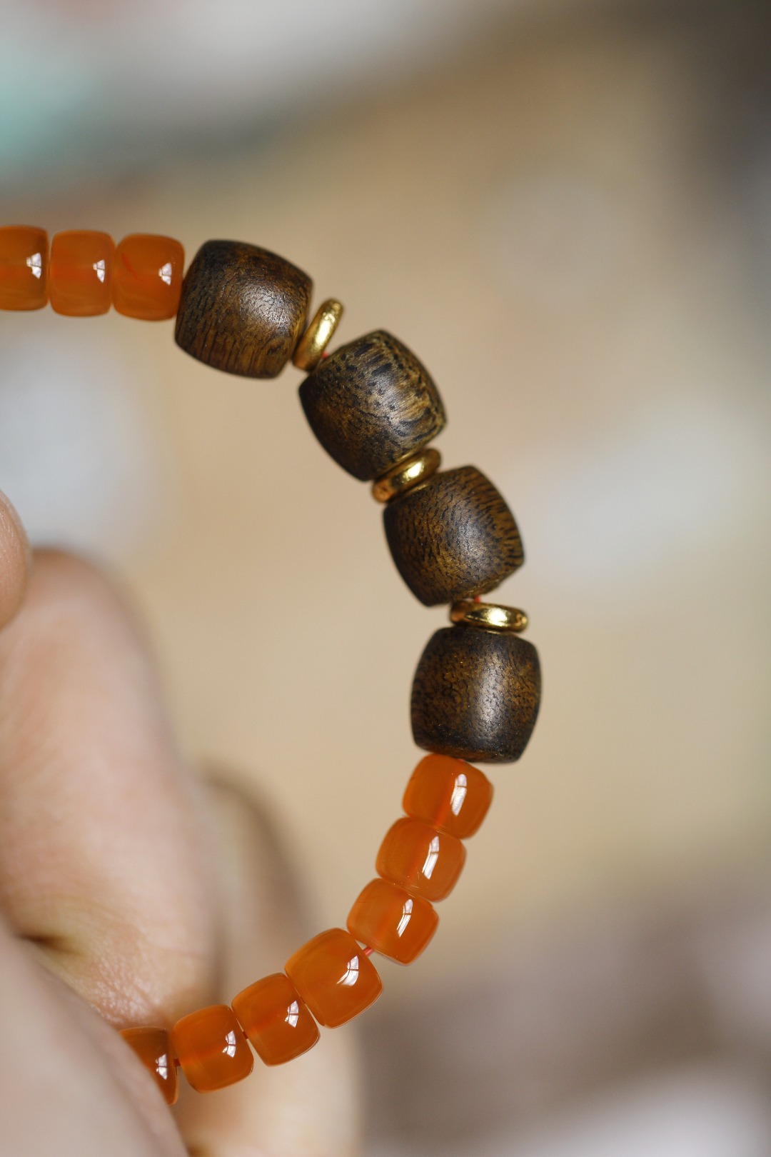 绿棋楠 南红【落欢】单圈手链 9x9mm 4颗