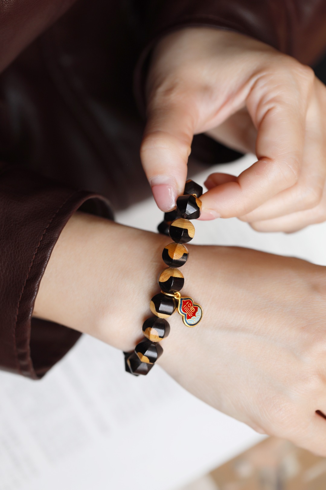 紫光檀嵌黄杨木 原创 【锦溶】12mm 18颗