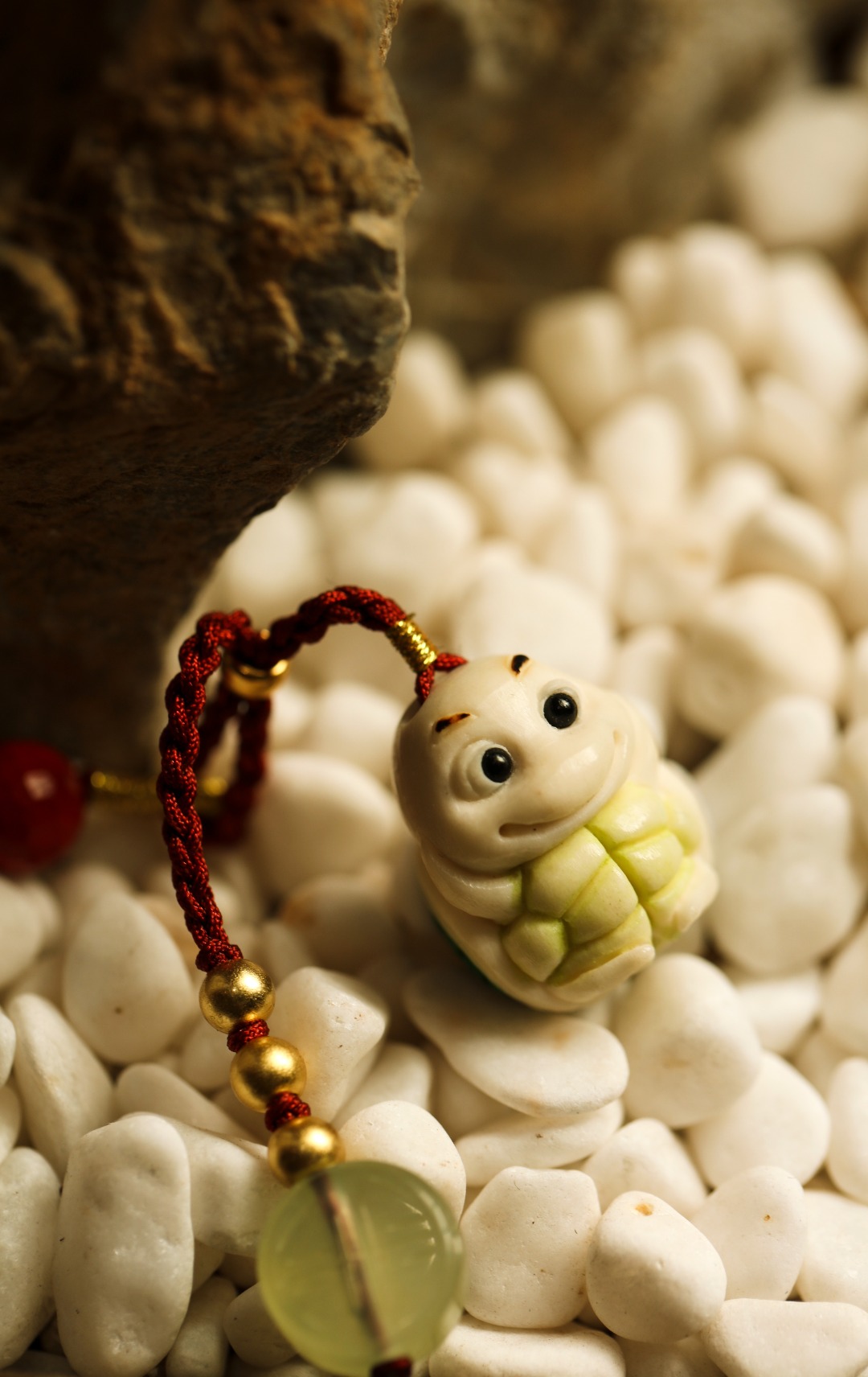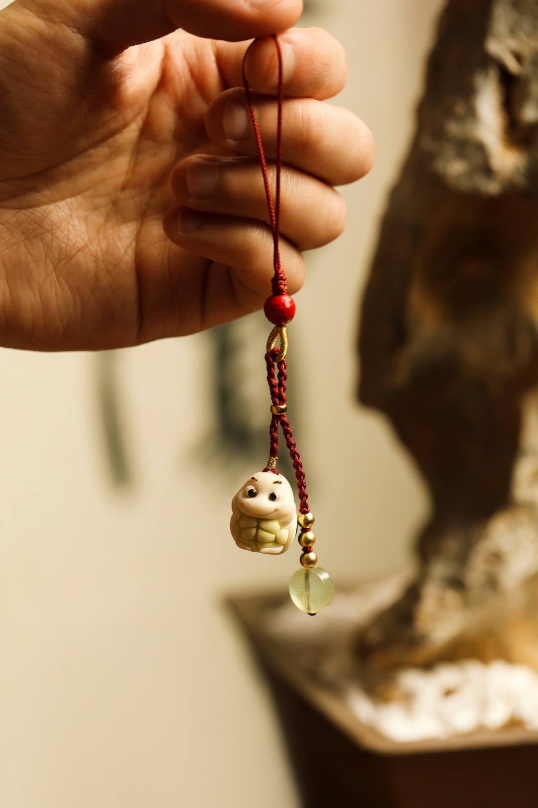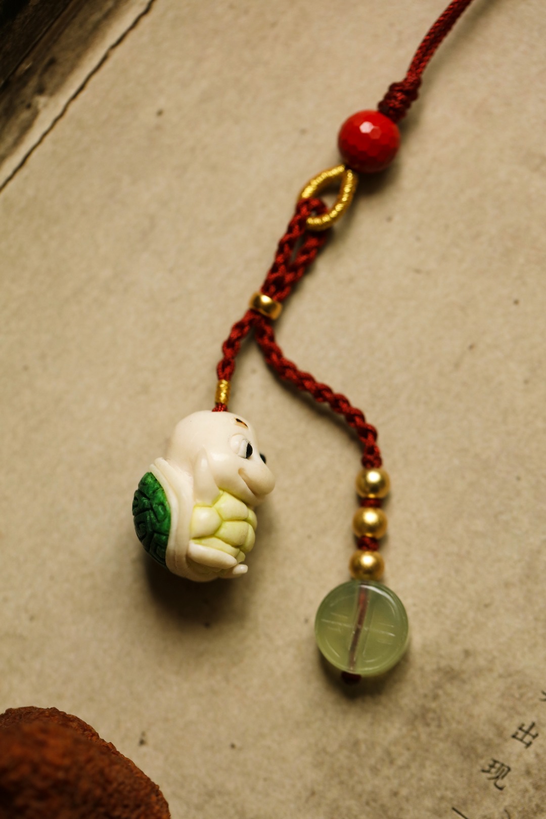 手工雕成,天然植物着色,多遍去留俏色 还原本真,不掉色。整体俏皮可爱,百搭挂件,意长寿招财纳福。