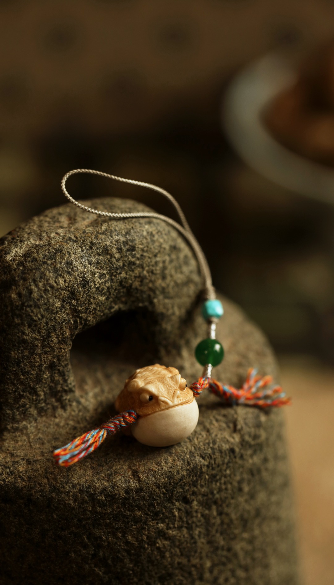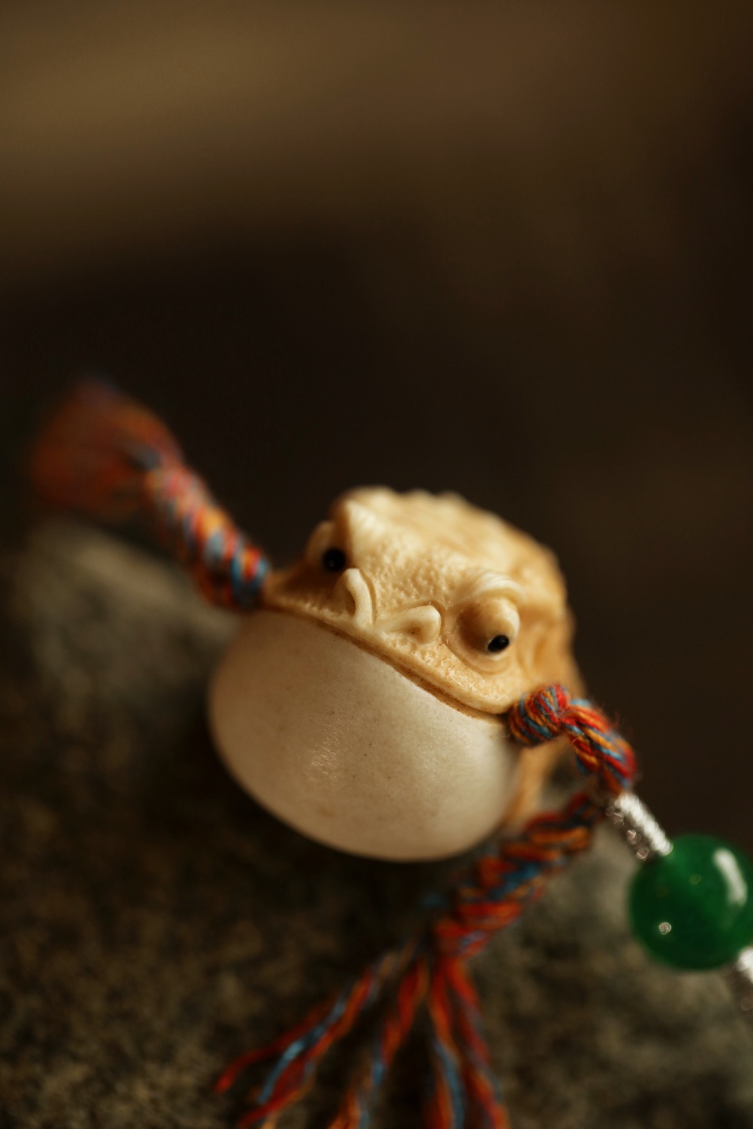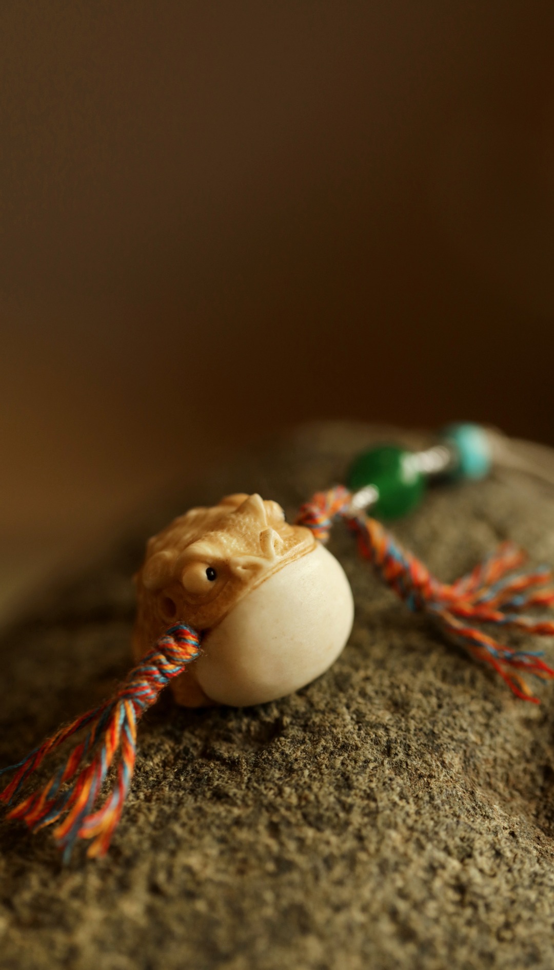 手工雕成,天然植物着色,多遍去留俏色 还原本真,永不掉色。金蟾寓意招财聚宝、镇宅辟邪之吉祥意。