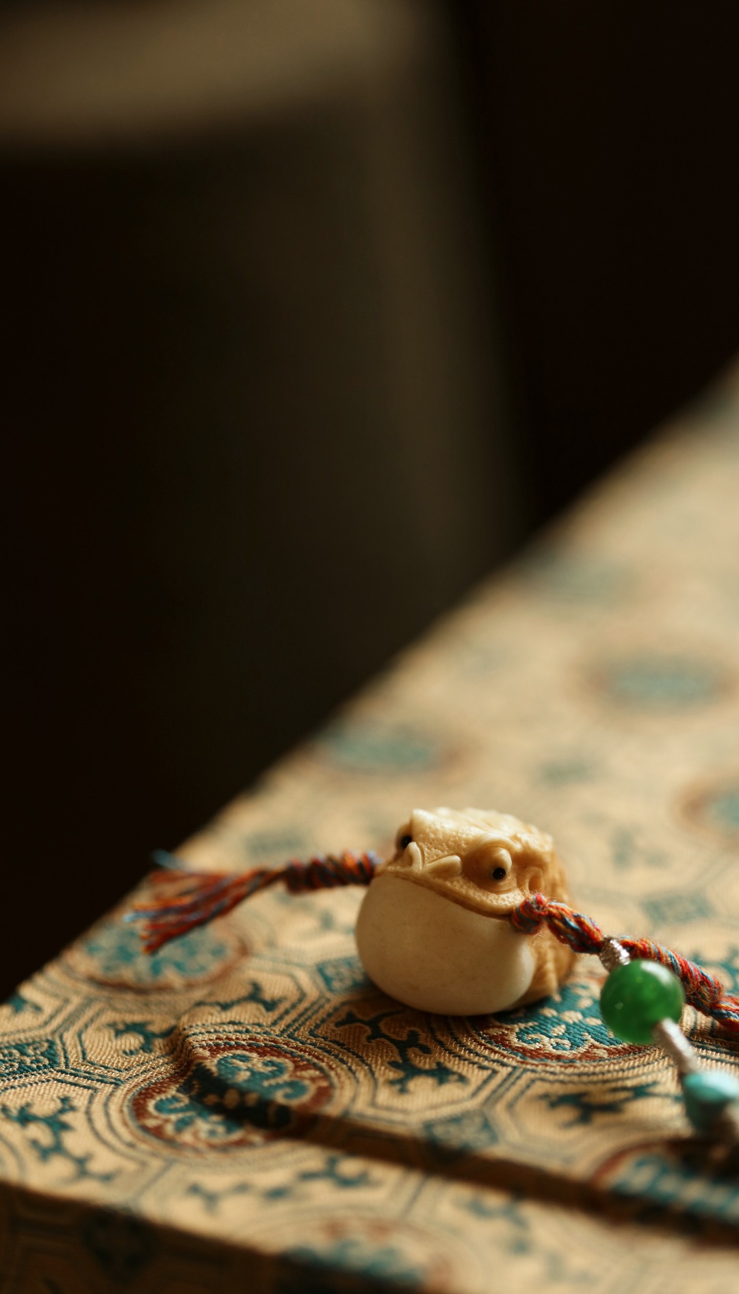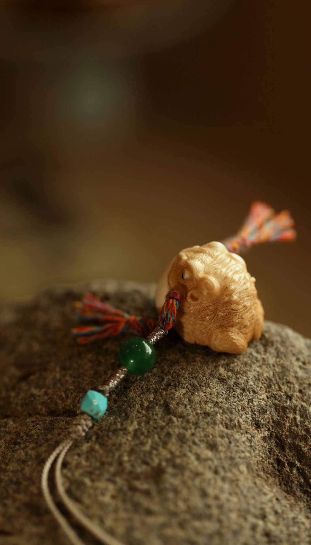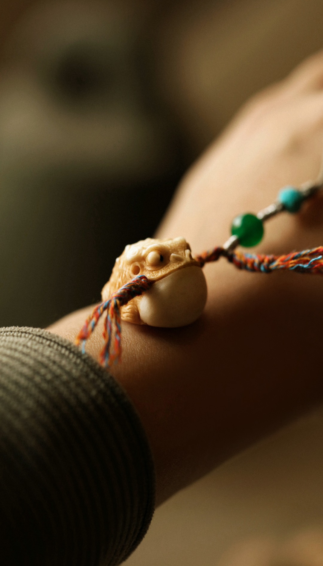 手工雕成,天然植物着色,多遍去留俏色 还原本真,永不掉色。金蟾寓意招财聚宝、镇宅辟邪之吉祥意。