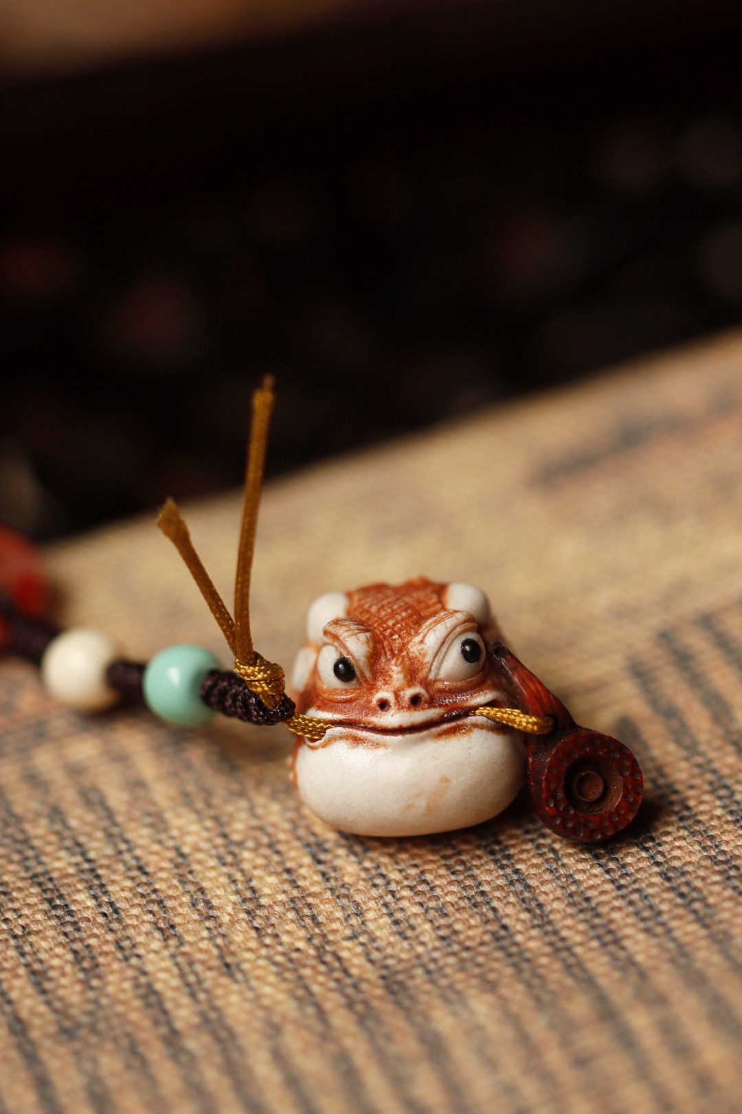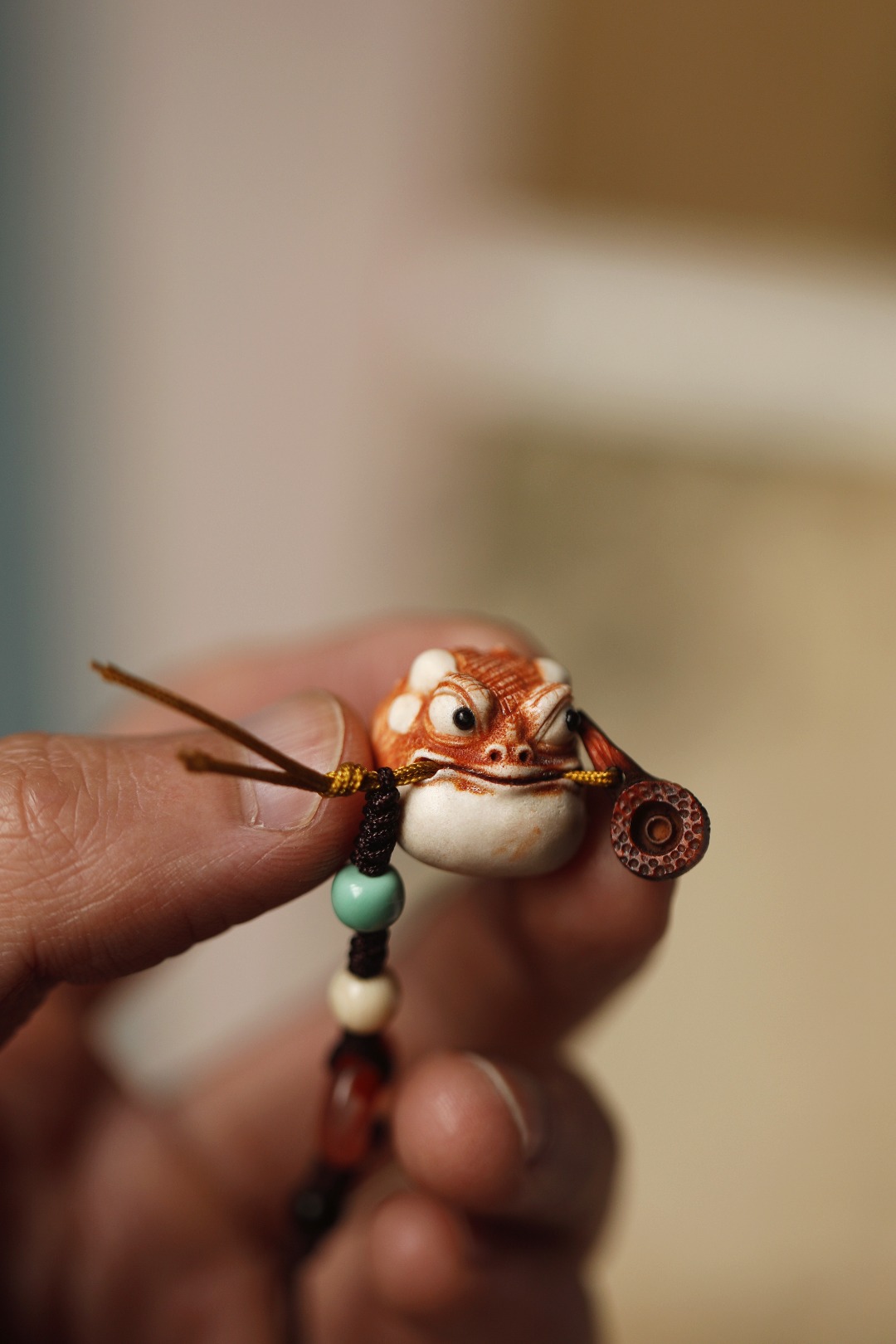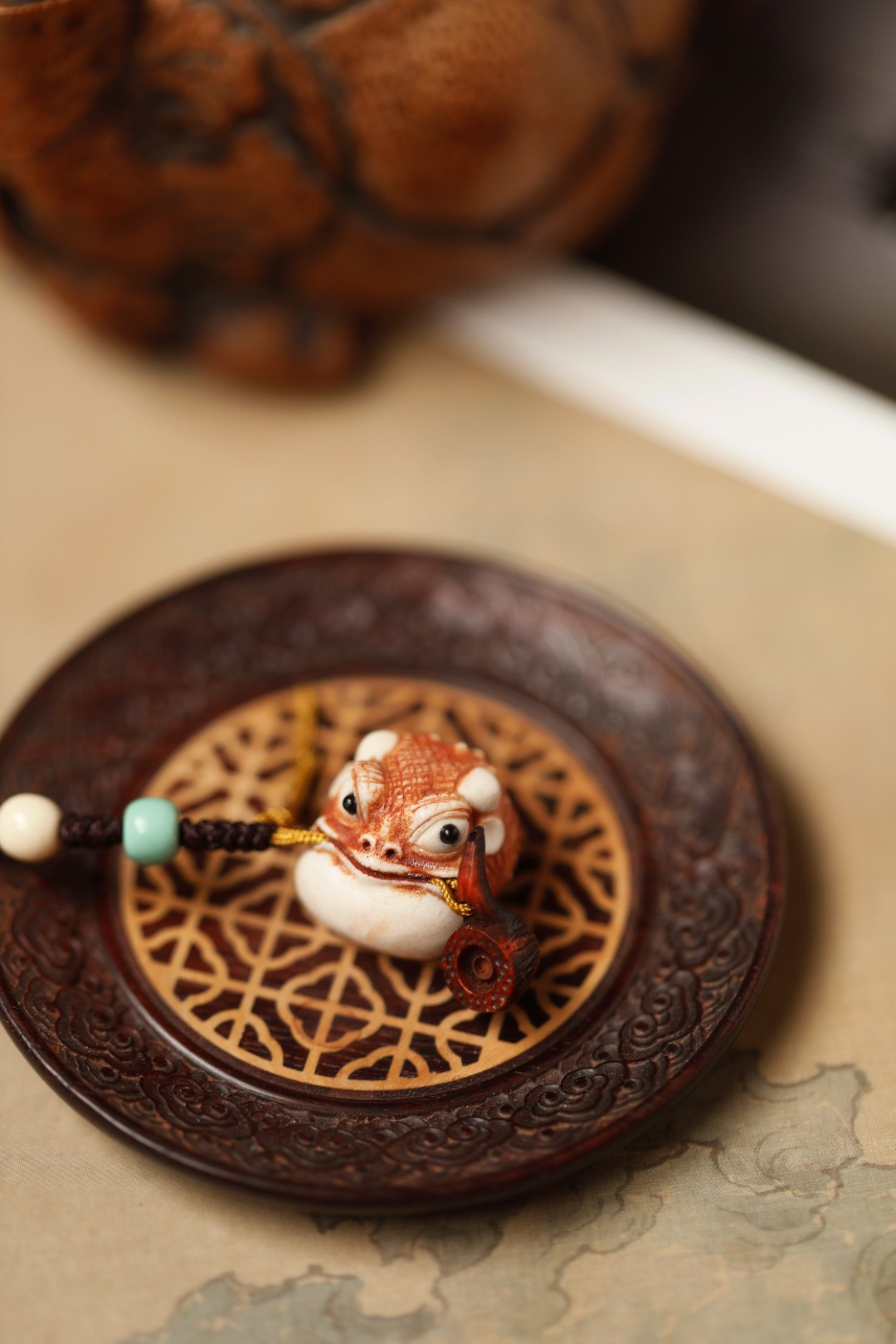 金蟾寓意聚财,嘴叼烟斗,