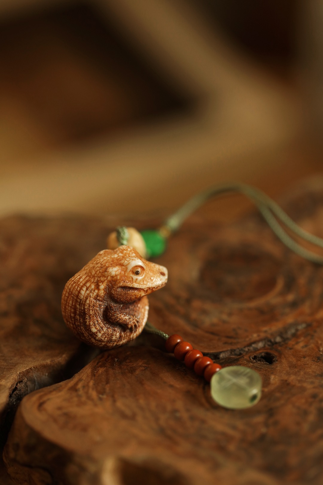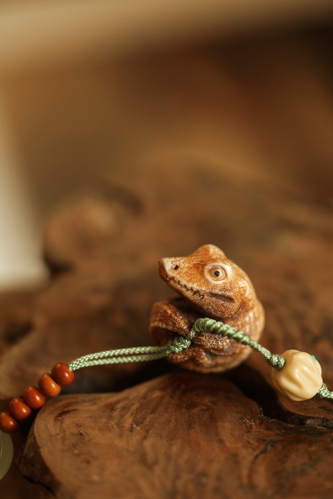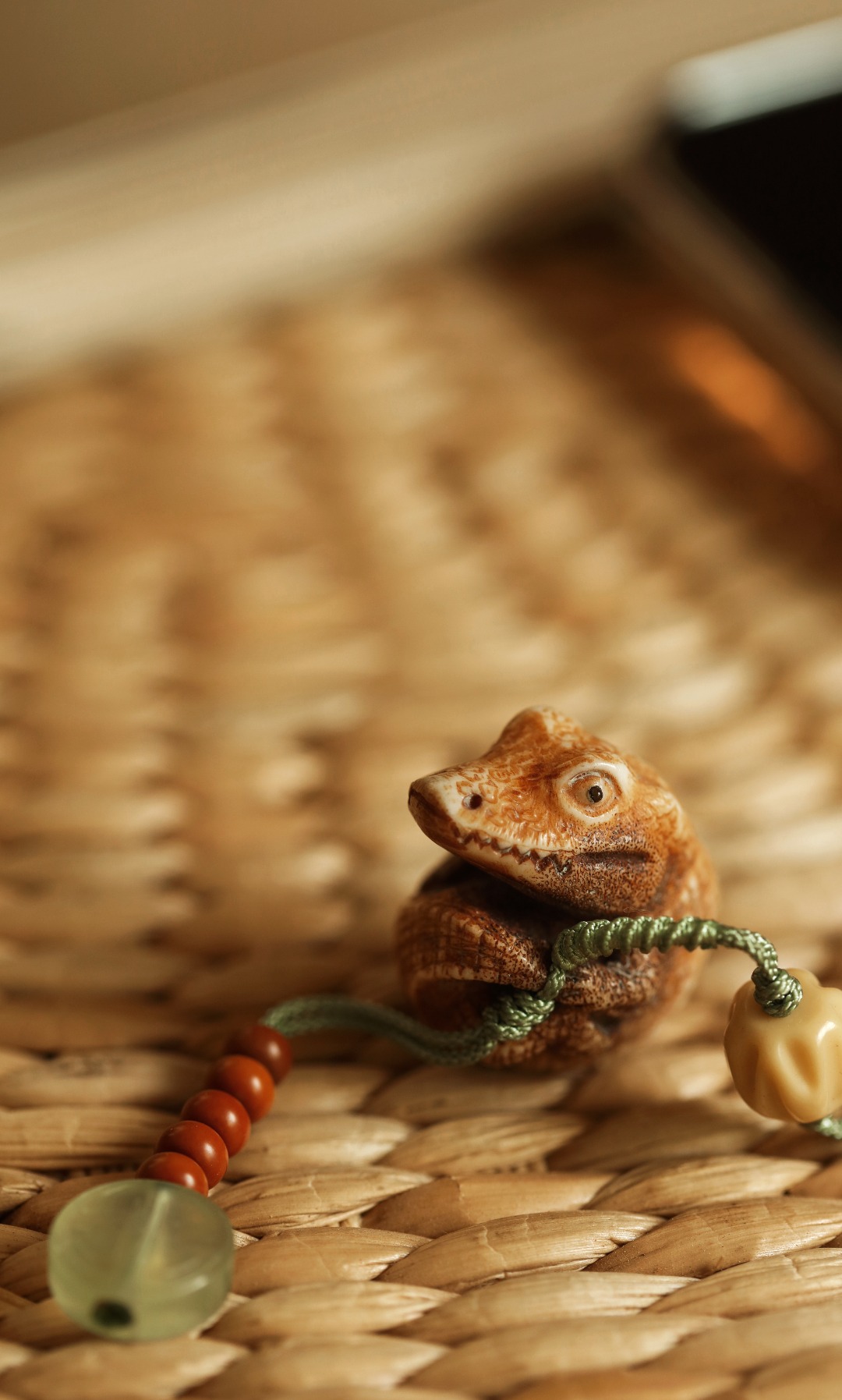 手工雕成,天然植物着色,多遍去留俏色 还原本真,适作包挂、钥匙扣, 吸亿(蜥蜴)寓吸收四方来财!