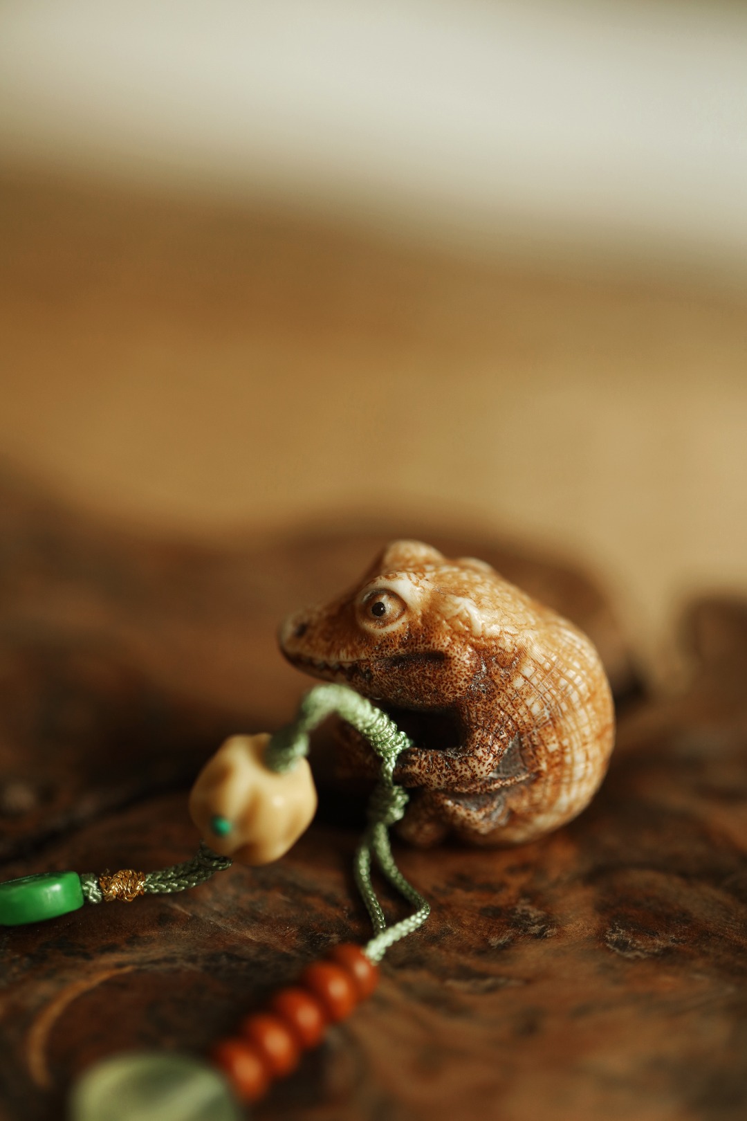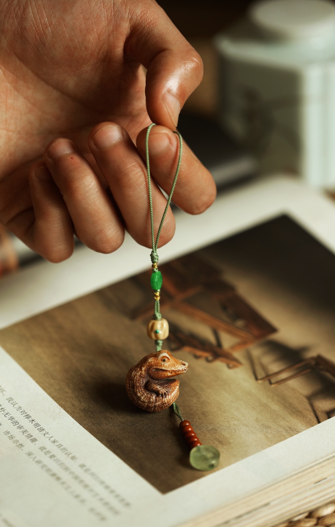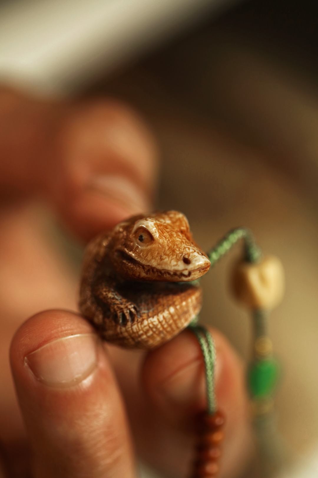 手工雕成,天然植物着色,多遍去留俏色 还原本真,适作包挂、钥匙扣, 吸亿(蜥蜴)寓吸收四方来财!