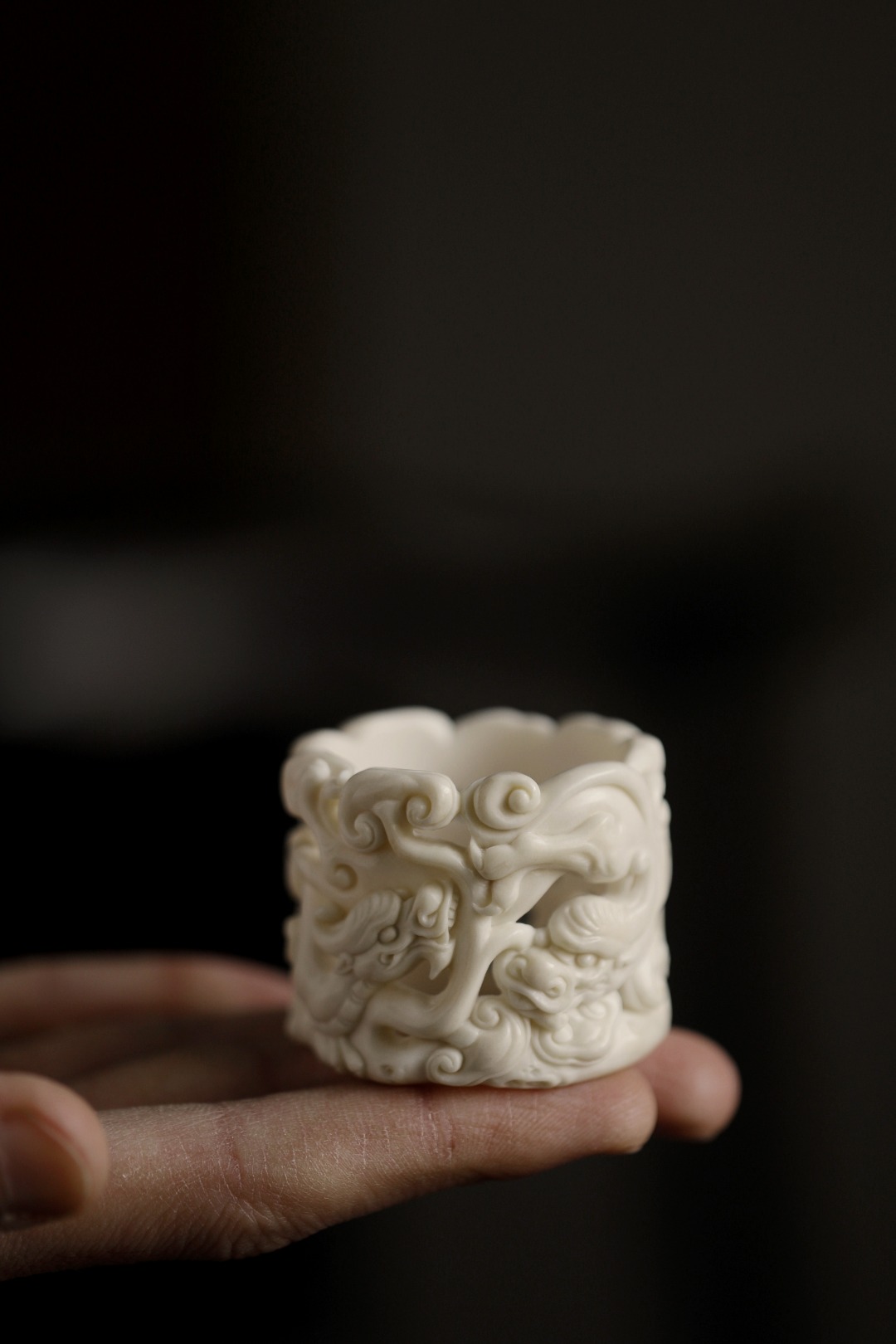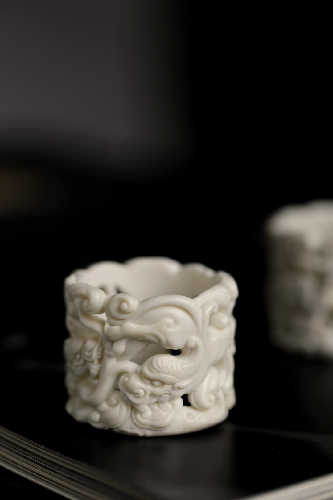 螭龙琢刻立体灵动,栩栩如生;