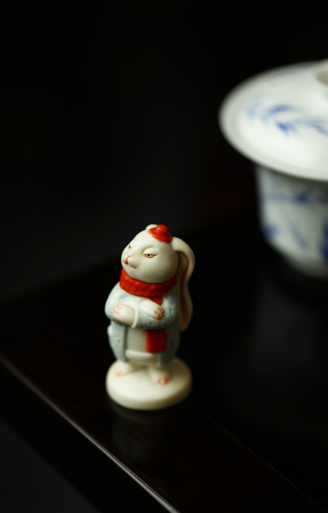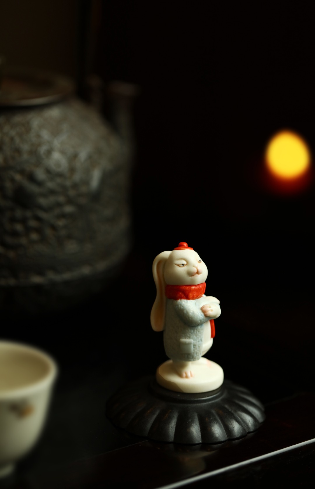 鹿角原材圆雕,古法染色,神情十足,屹立遥望,一对长耳朵,寓意富贵长寿、前途似景。