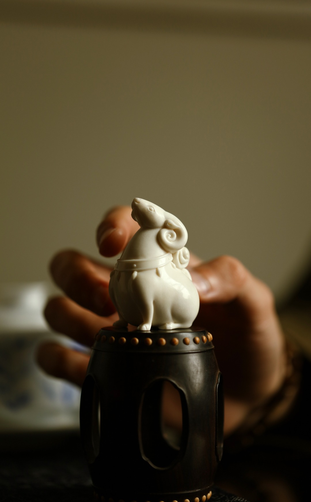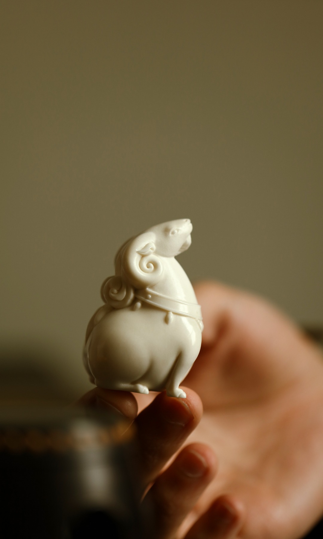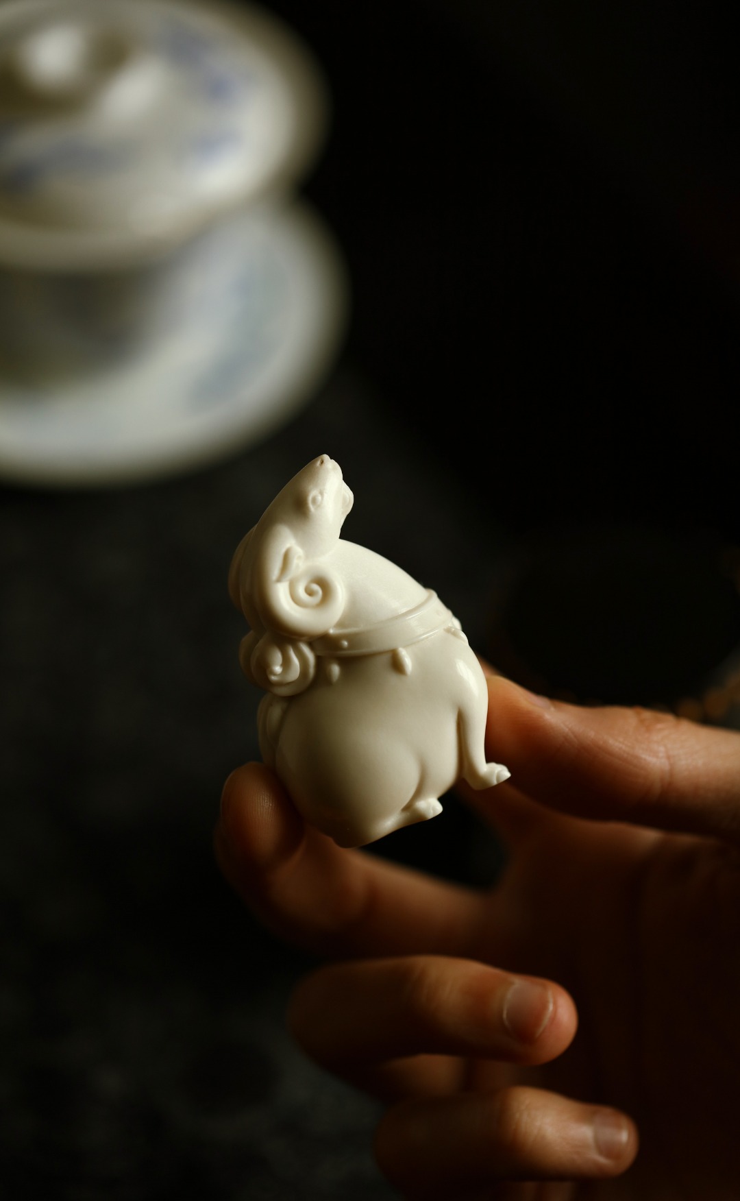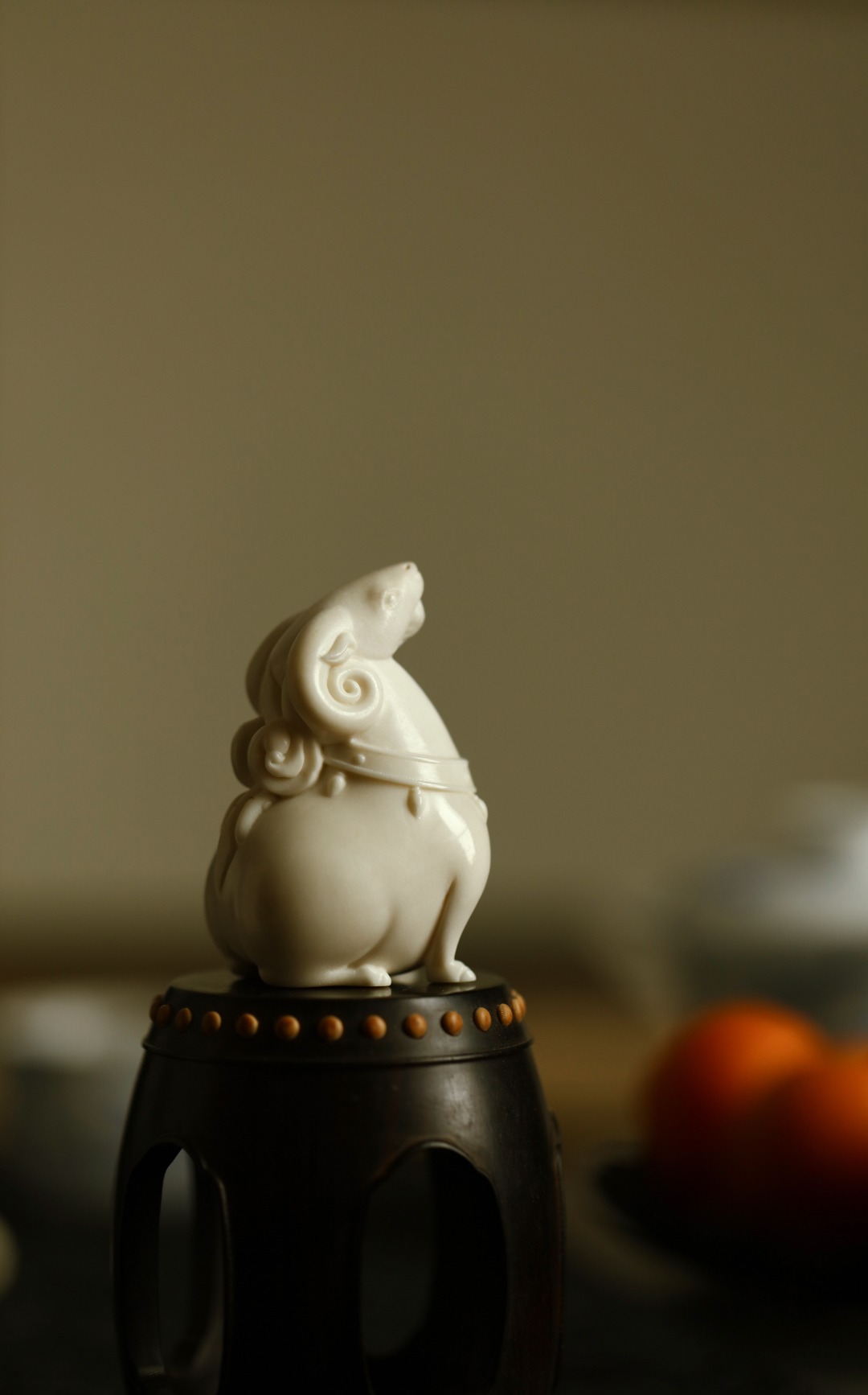 择料洁白如玉,案头陈设把玩,羊谐音“祥”“阳”有三阳开泰、喜气洋洋、吉祥和美之意。