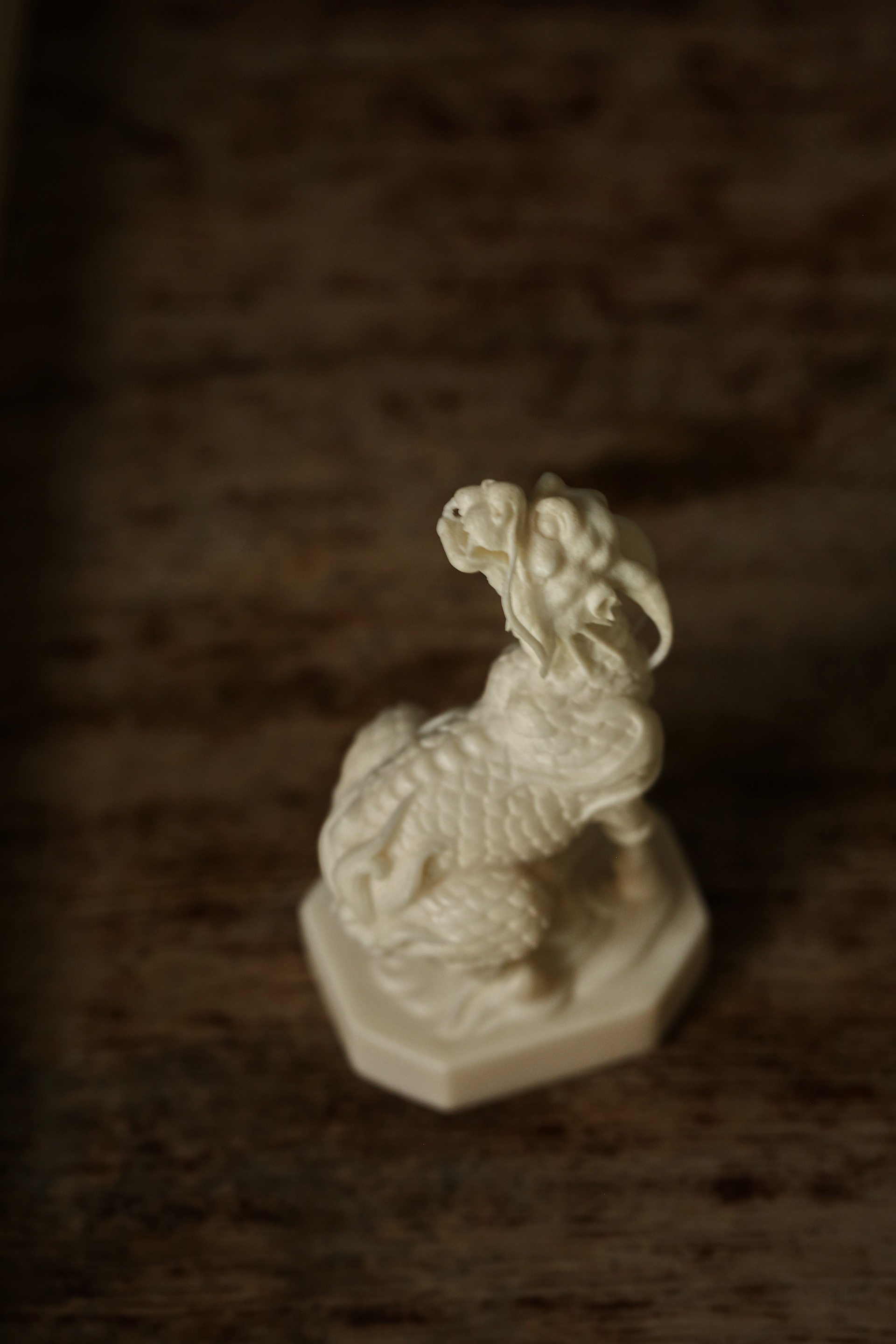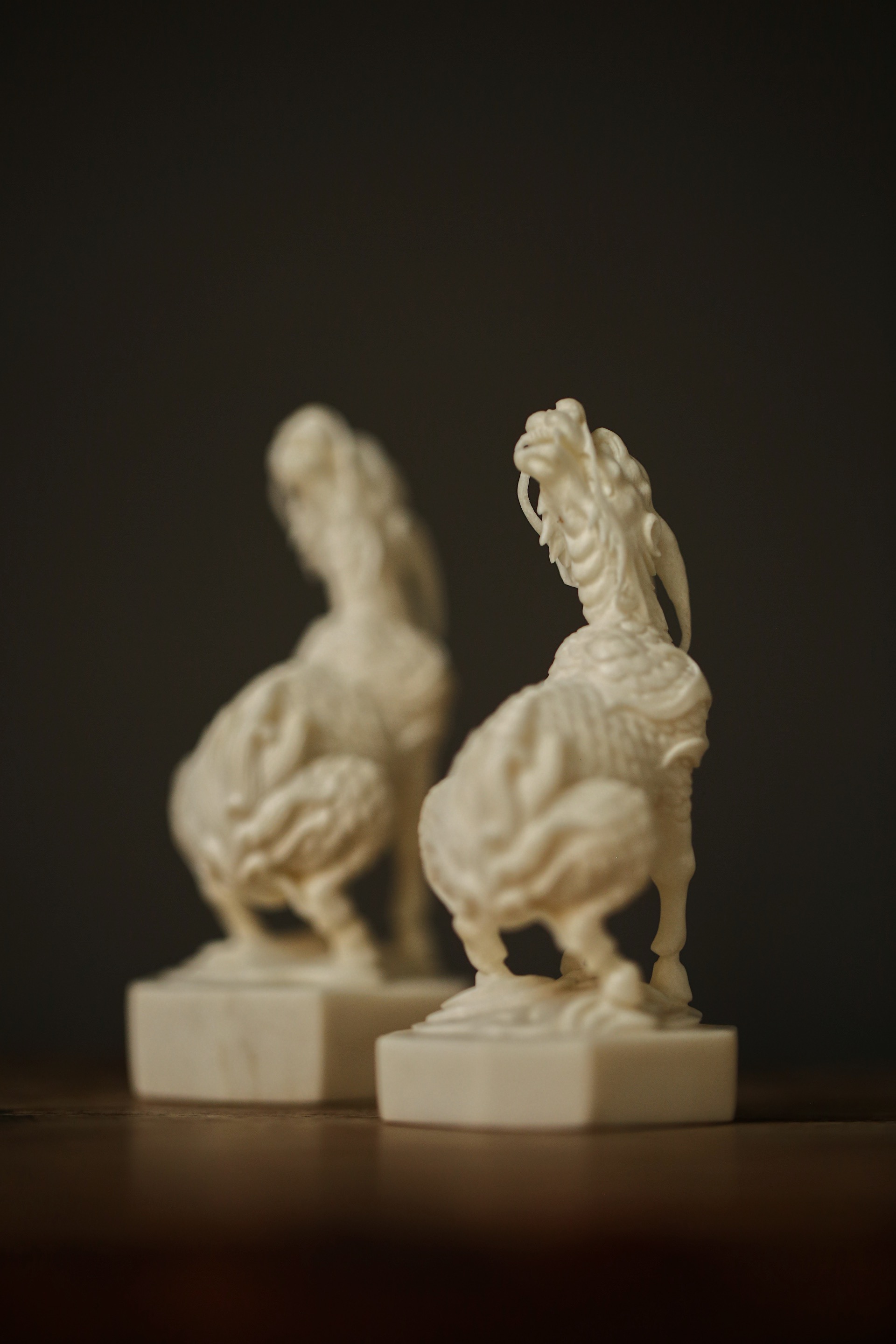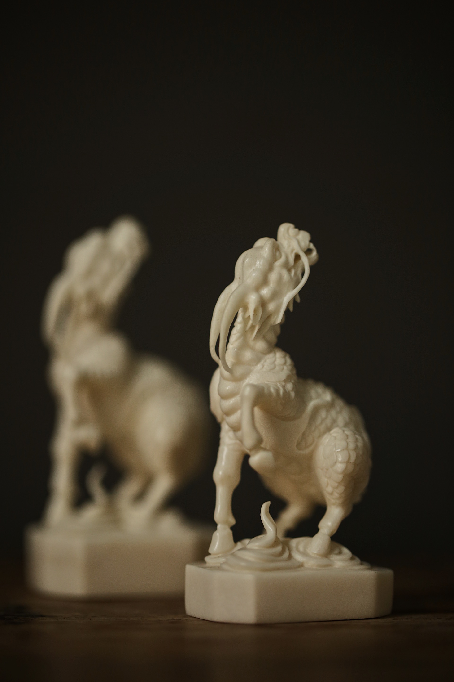 择取白润材质,雕刻饱满流畅,身姿灵动。