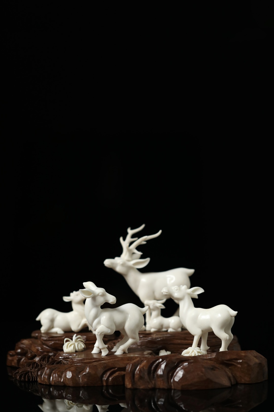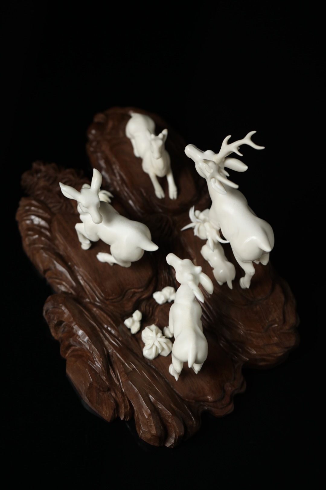 手工雕成,以鹿缀景,静中有动,栩栩如生,