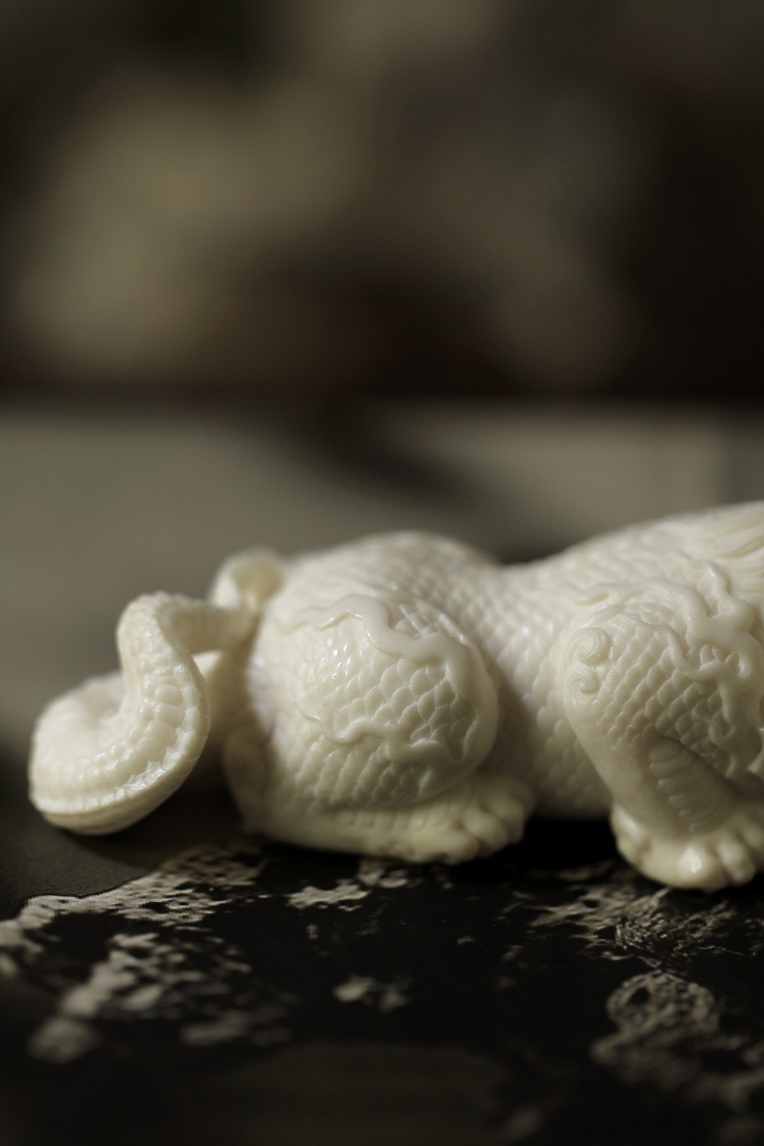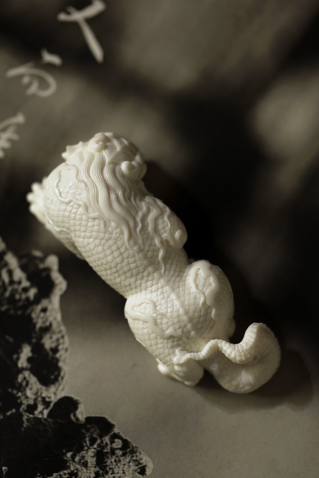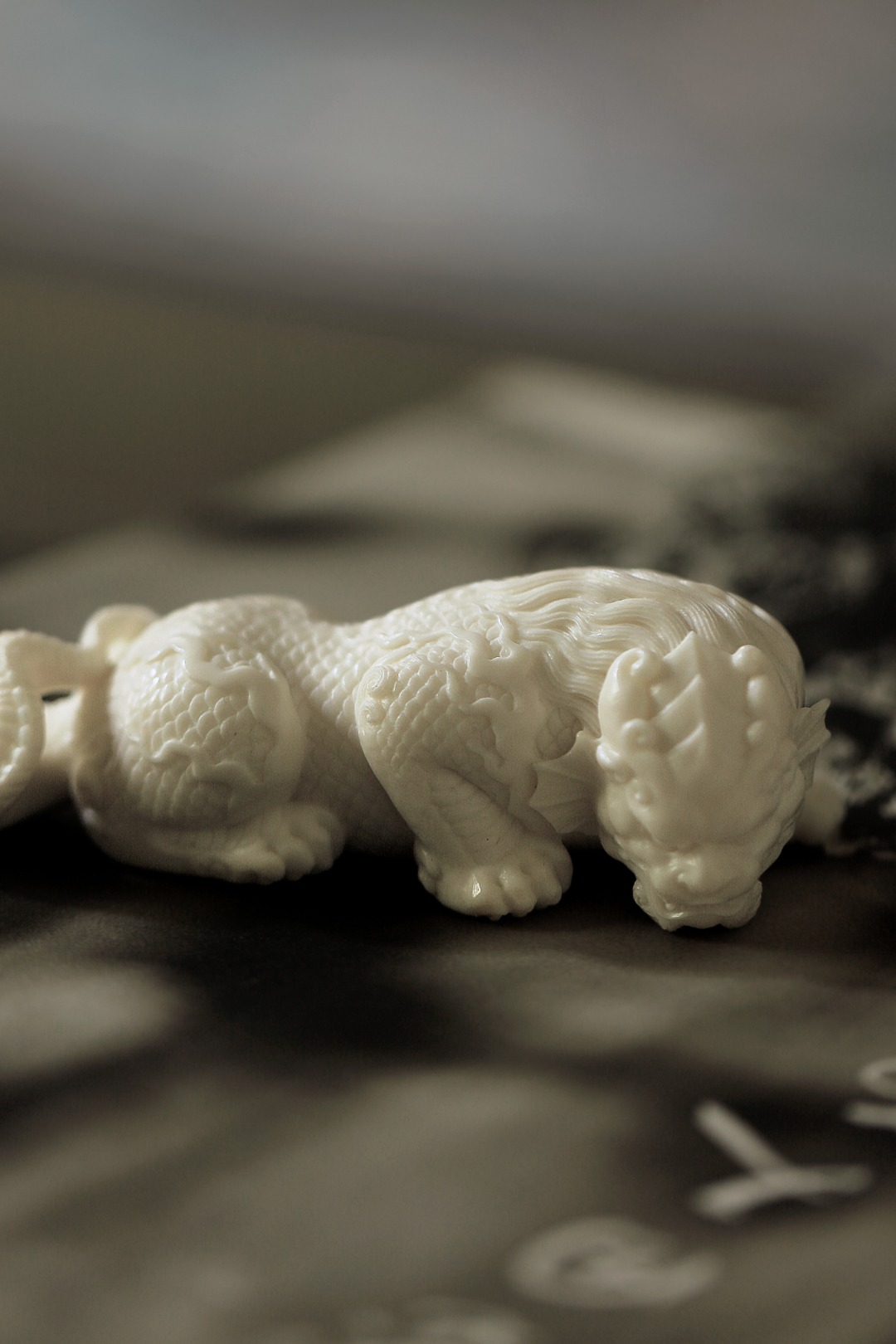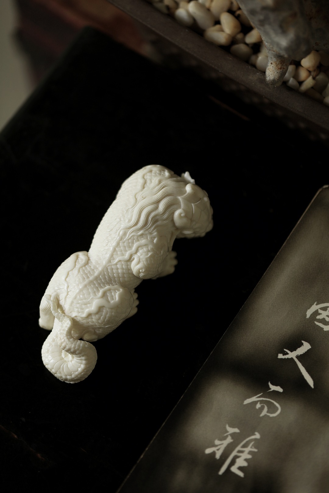 质地细腻润泽,手工雕刻,鳞甲铮张,足爪强劲,皆透灵动气韵,置之于案,意为风调雨顺、吸水来财。