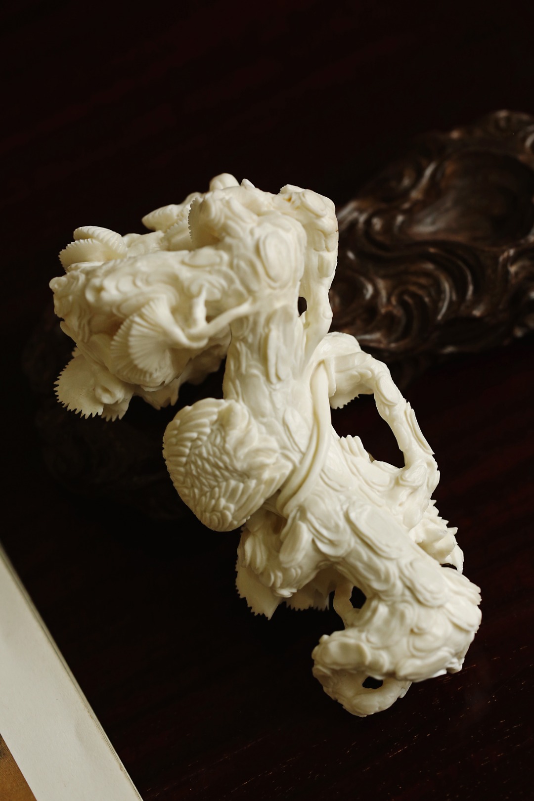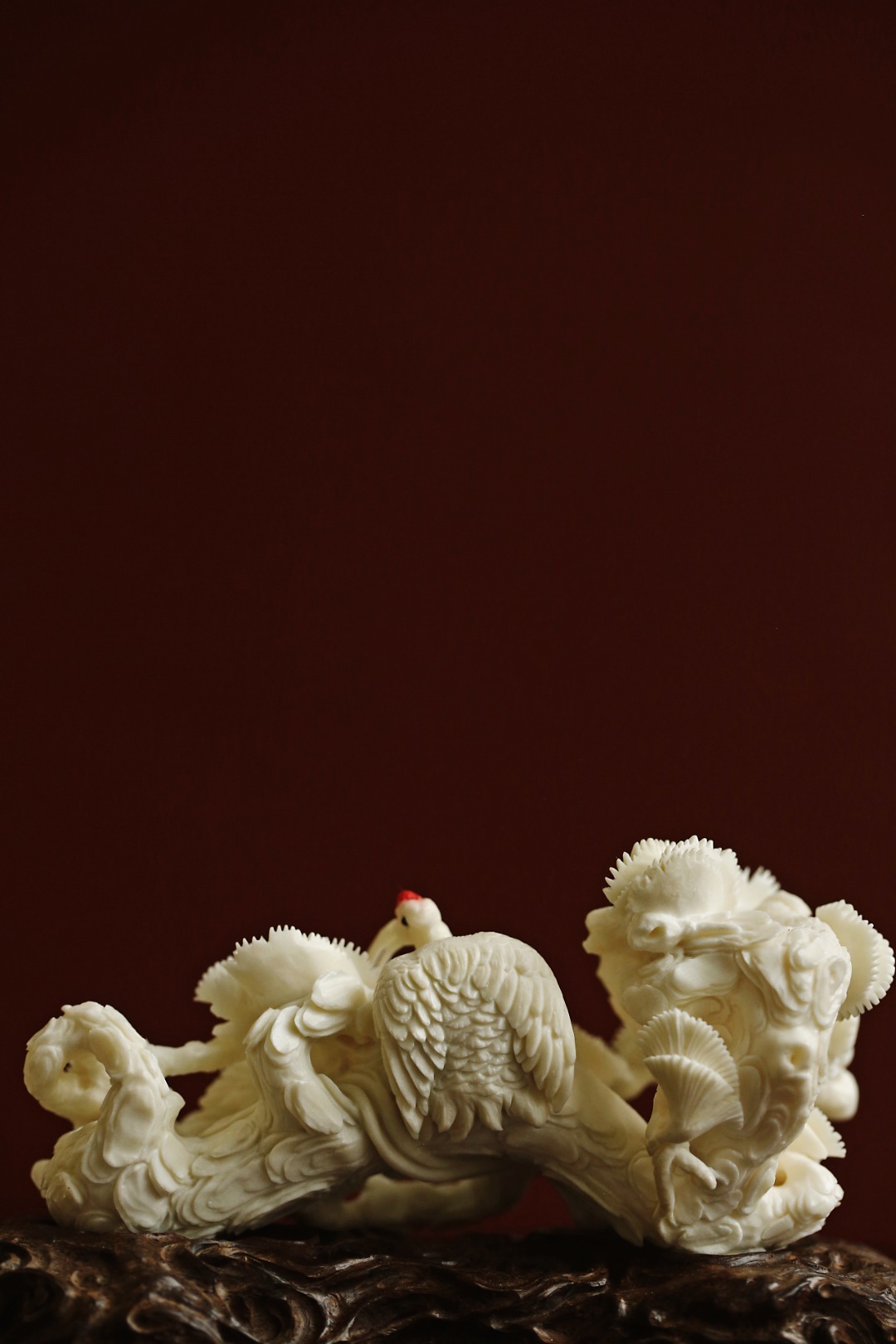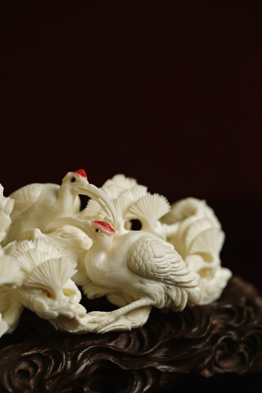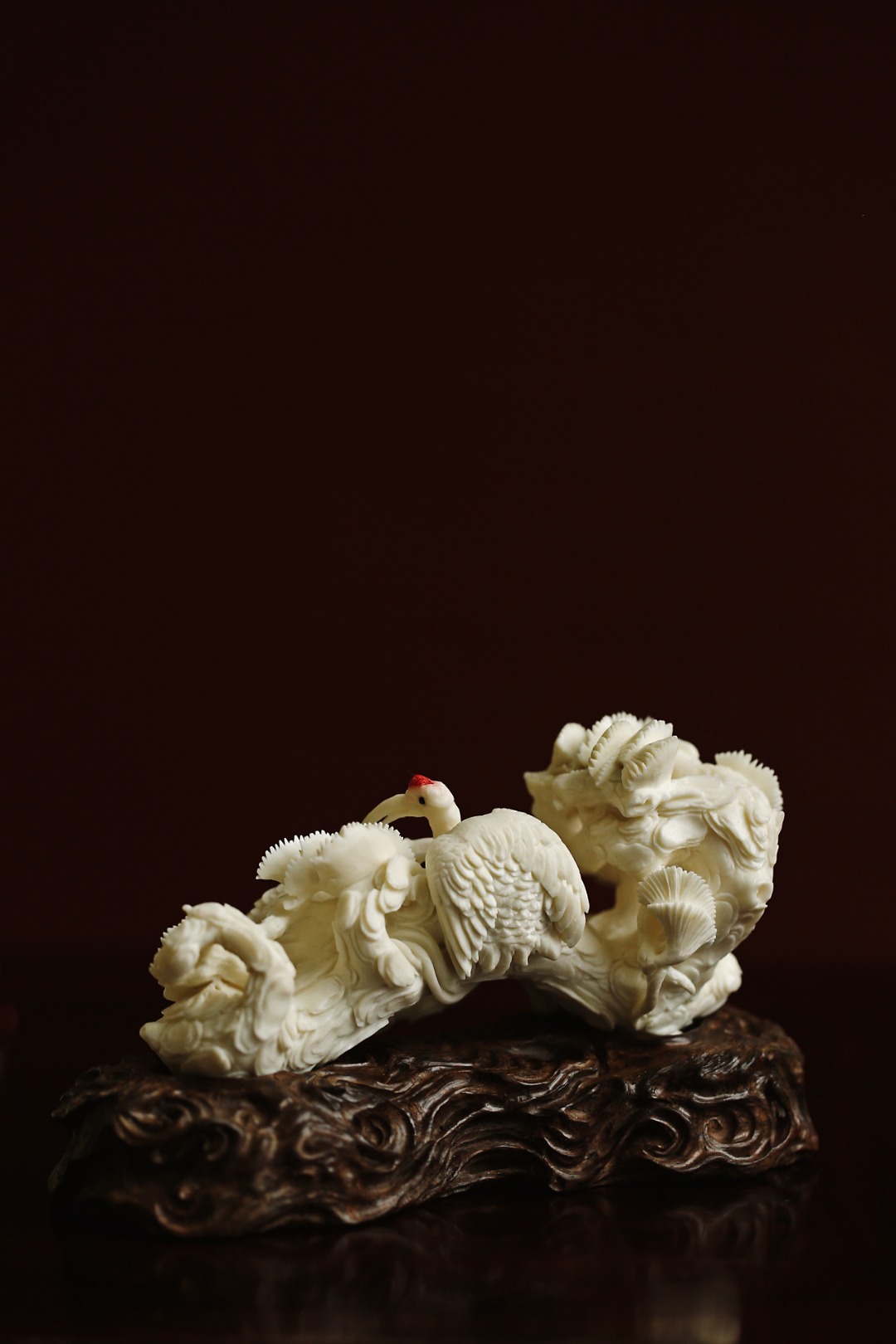 仙鹤伏于松干,构思巧妙,寓意吉祥。