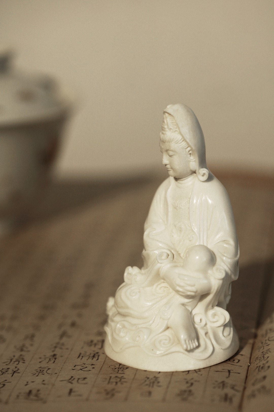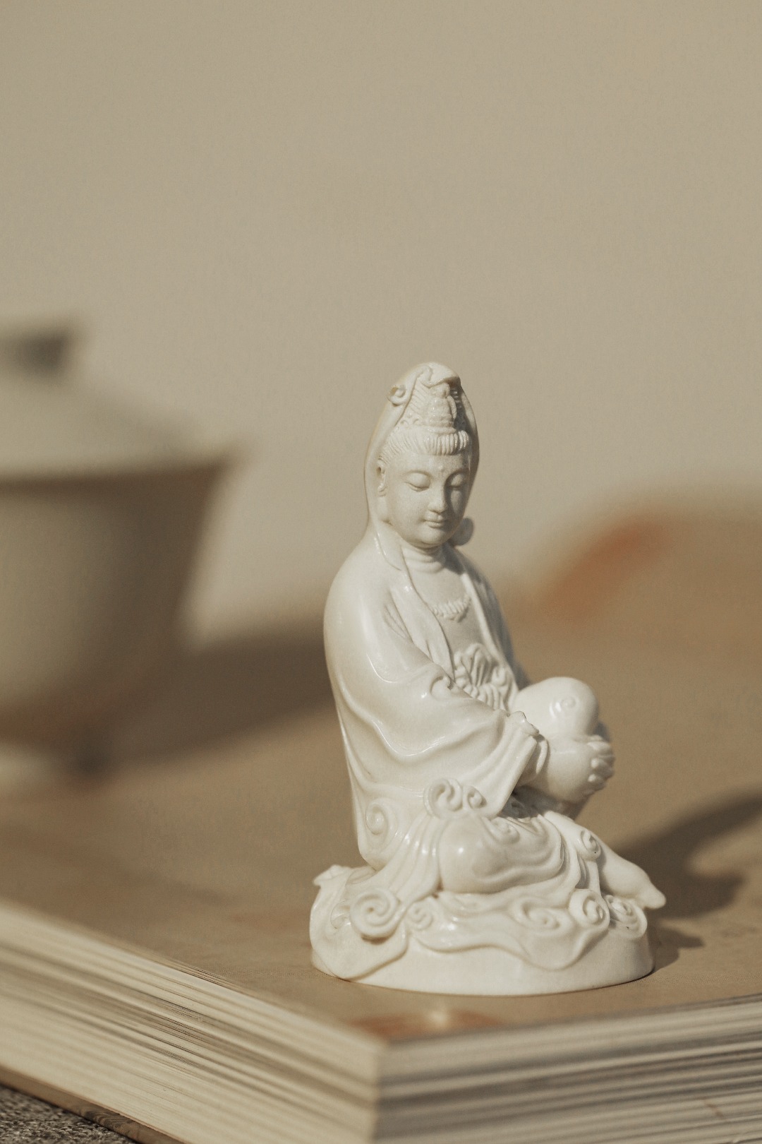 取材洁白凝润,菩萨静坐形神静穆,雕刻细致入微,线条优美流畅,雅居陈设,殊胜吉祥。