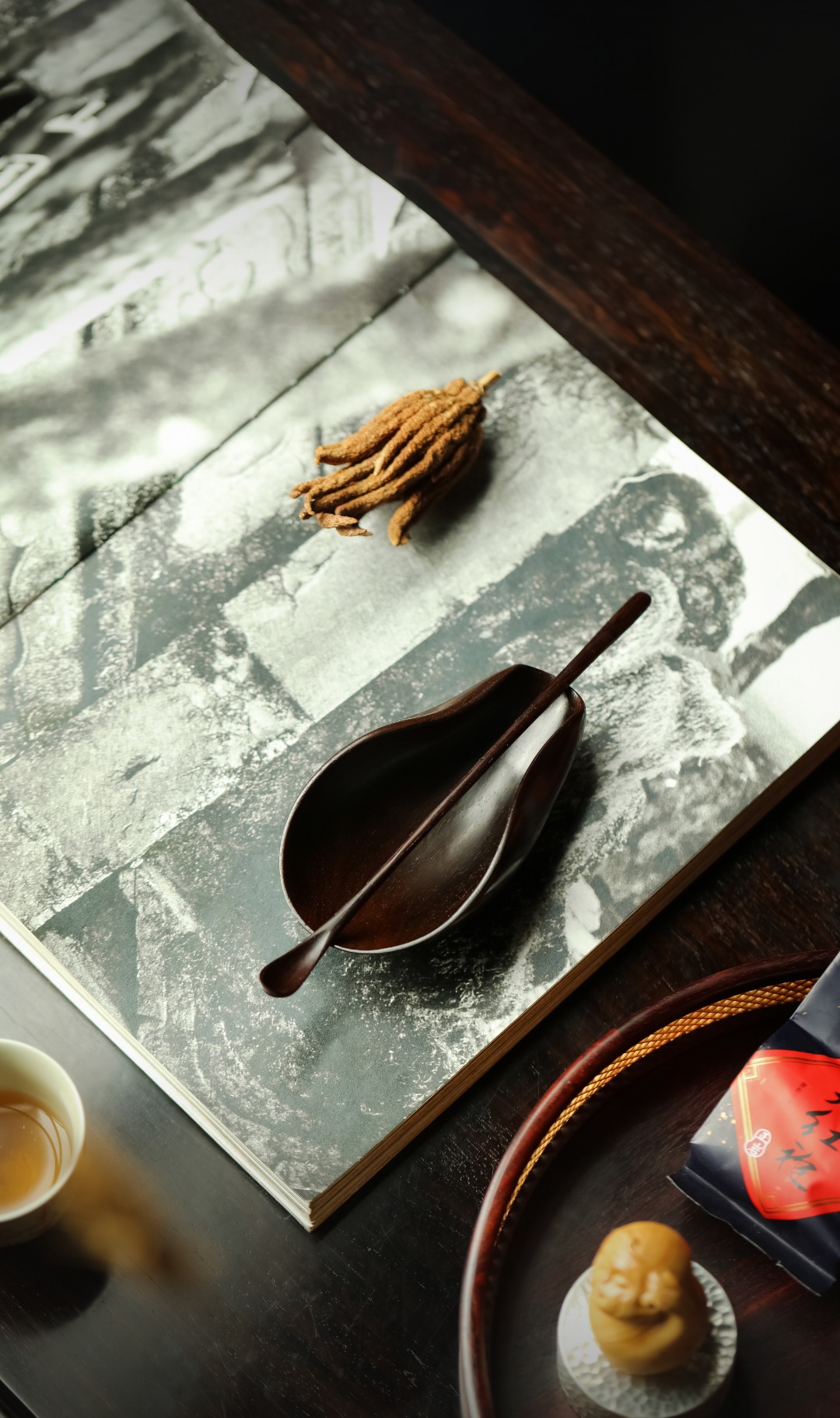 辅以茶事,与茶色相映相宜。
