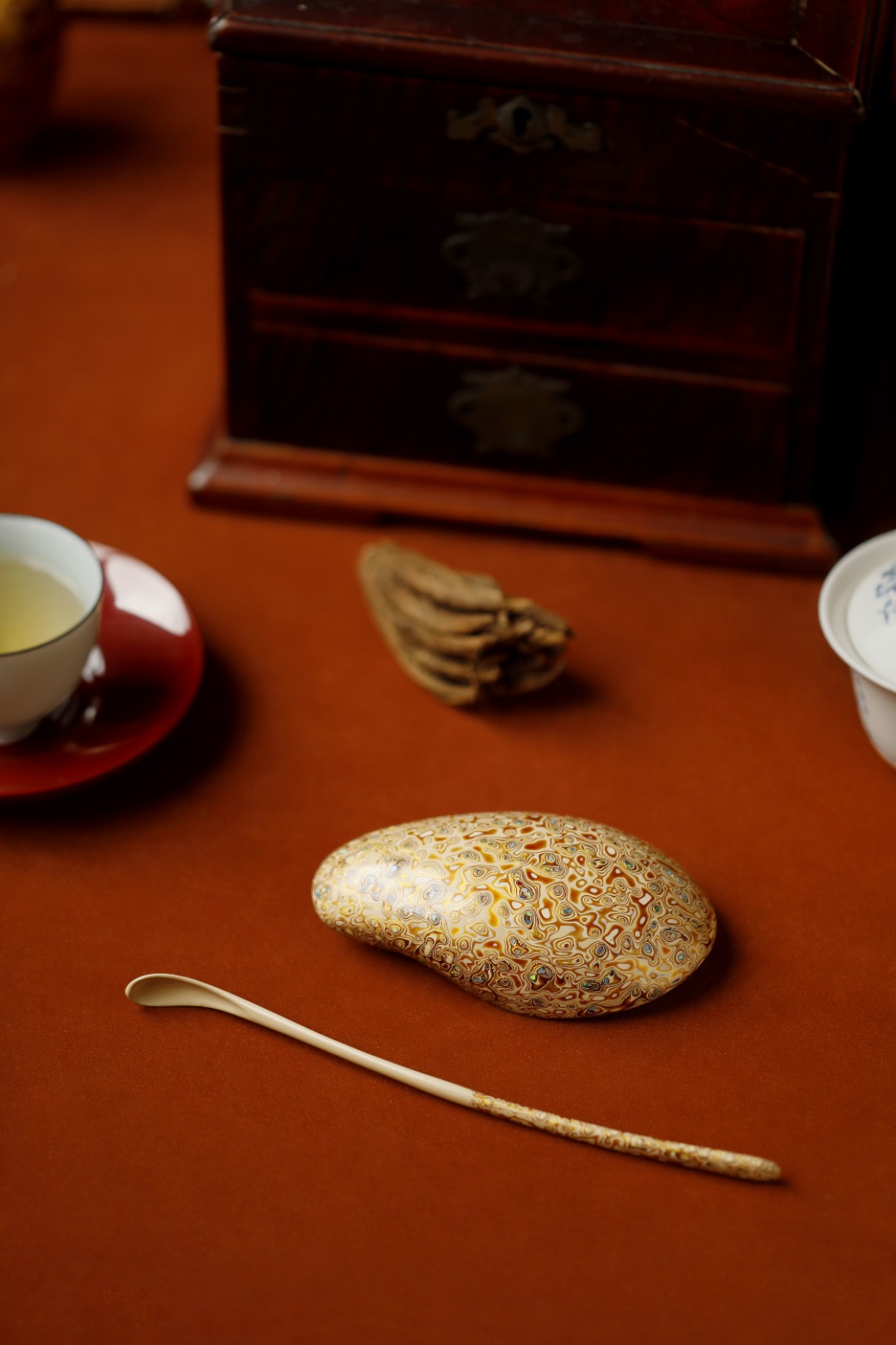 大漆X螺钿【淡密黄】 茶则 茶则:12.8*5.7*2.8cm