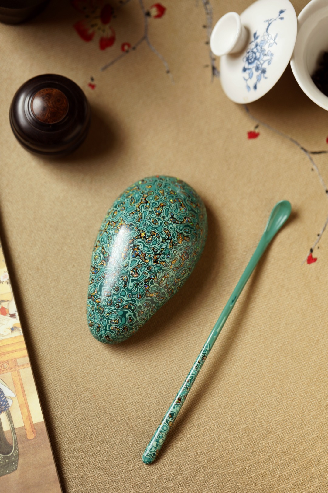 大漆【竹叶绿】茶则 茶则:11.4*6.4*3.5cm 茶勺:18cm
