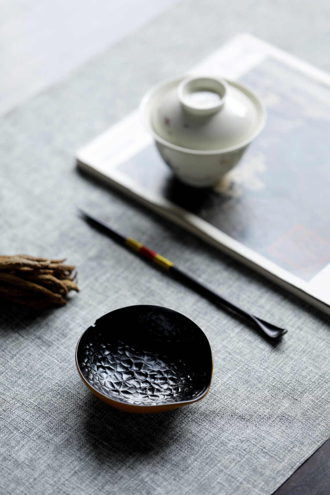 大漆【见安·黄】茶则 9.5*9*2.5cm  茶勺长19.8cm