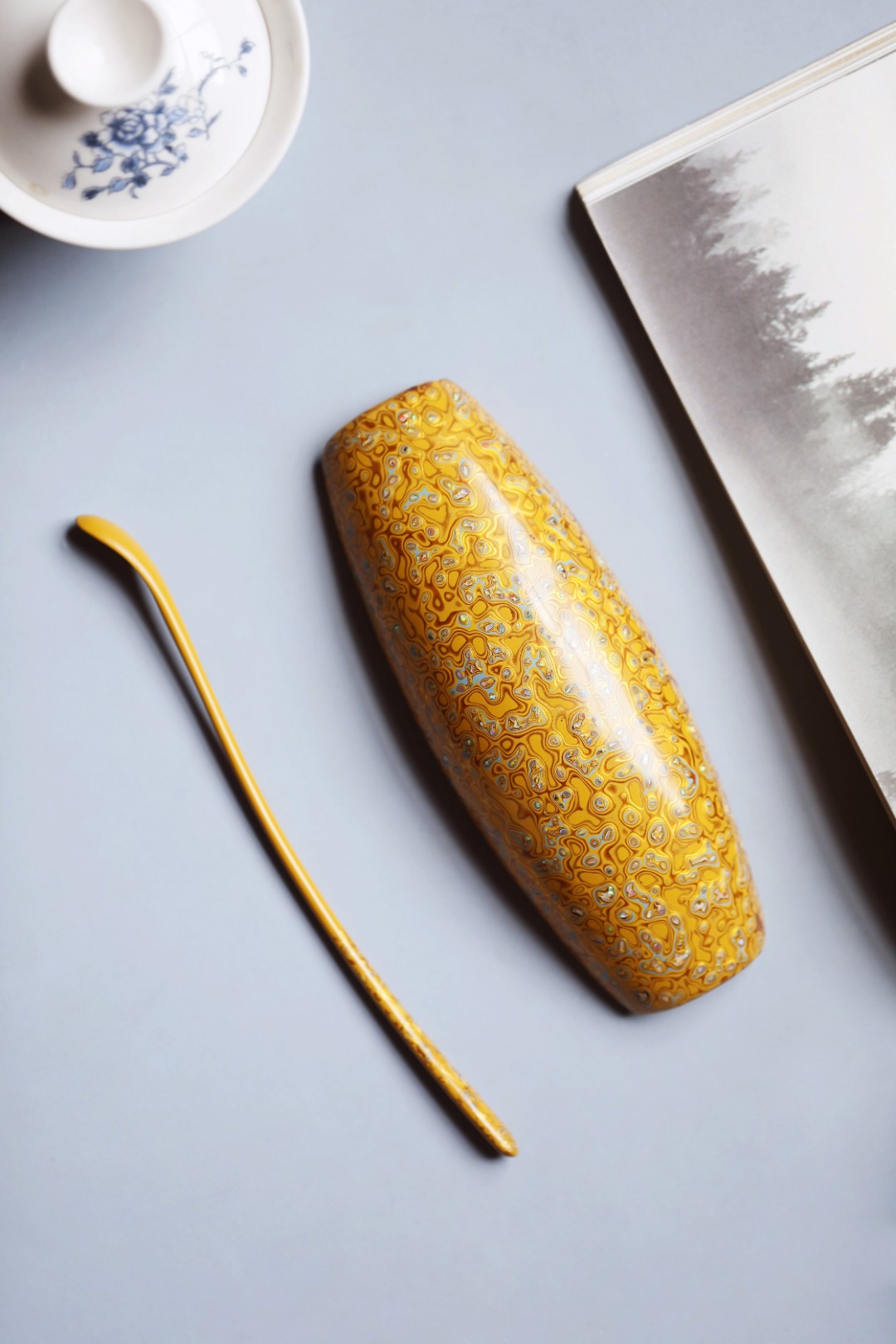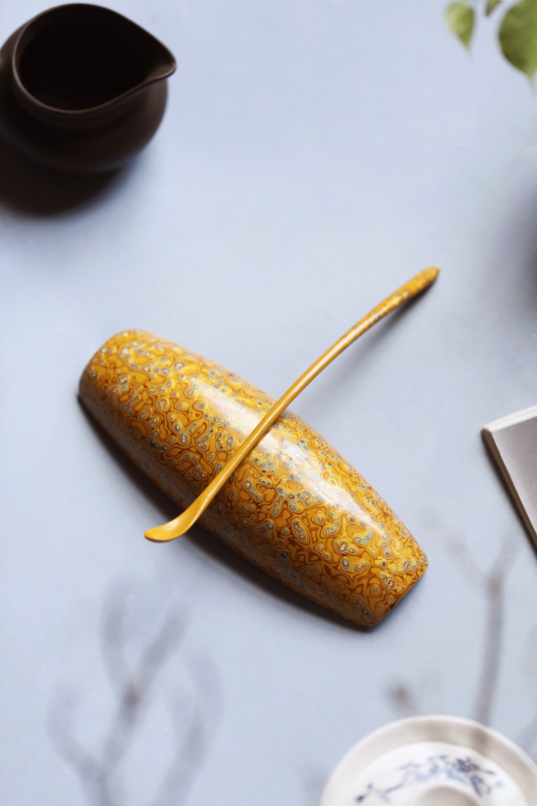 大漆X螺钿 【金橙】 茶则 茶则:16*5.9*2.8cm 茶勺:长18cm