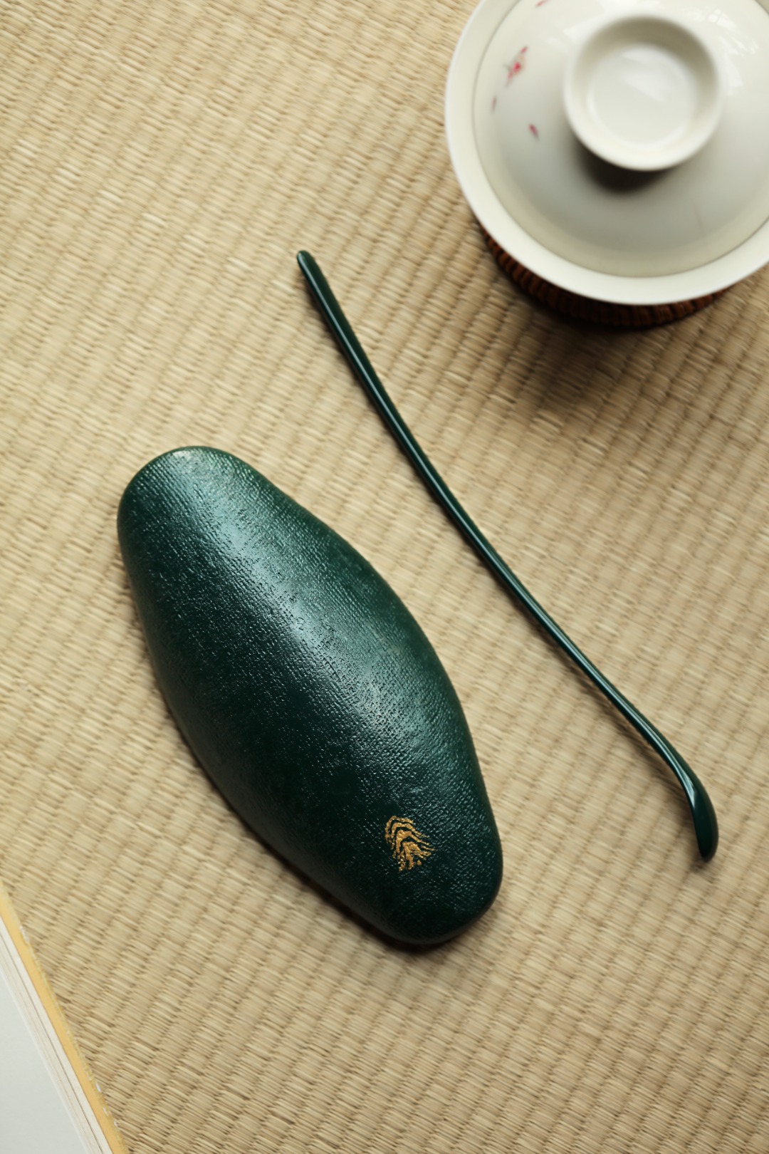 大漆x蛋壳【翡翠绿】 茶则 ​14.2*6.5*2cm