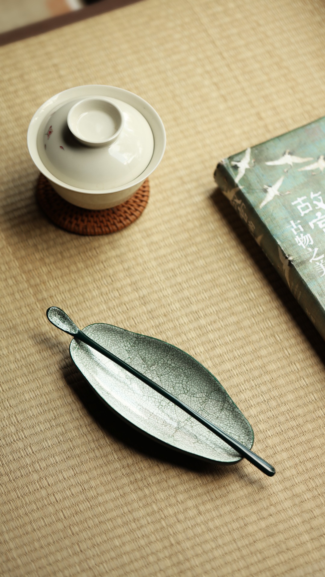 大漆x蛋壳【翡翠绿】 茶则 ​14.2*6.5*2cm 茶勺长18.8cm