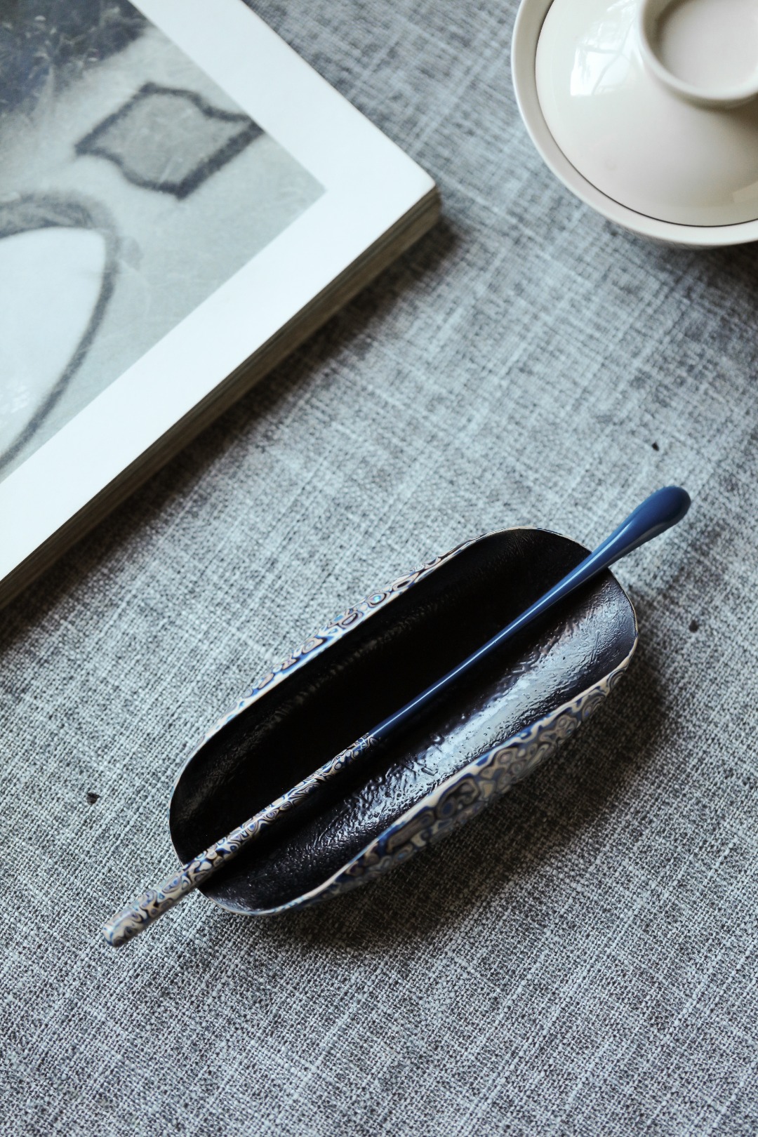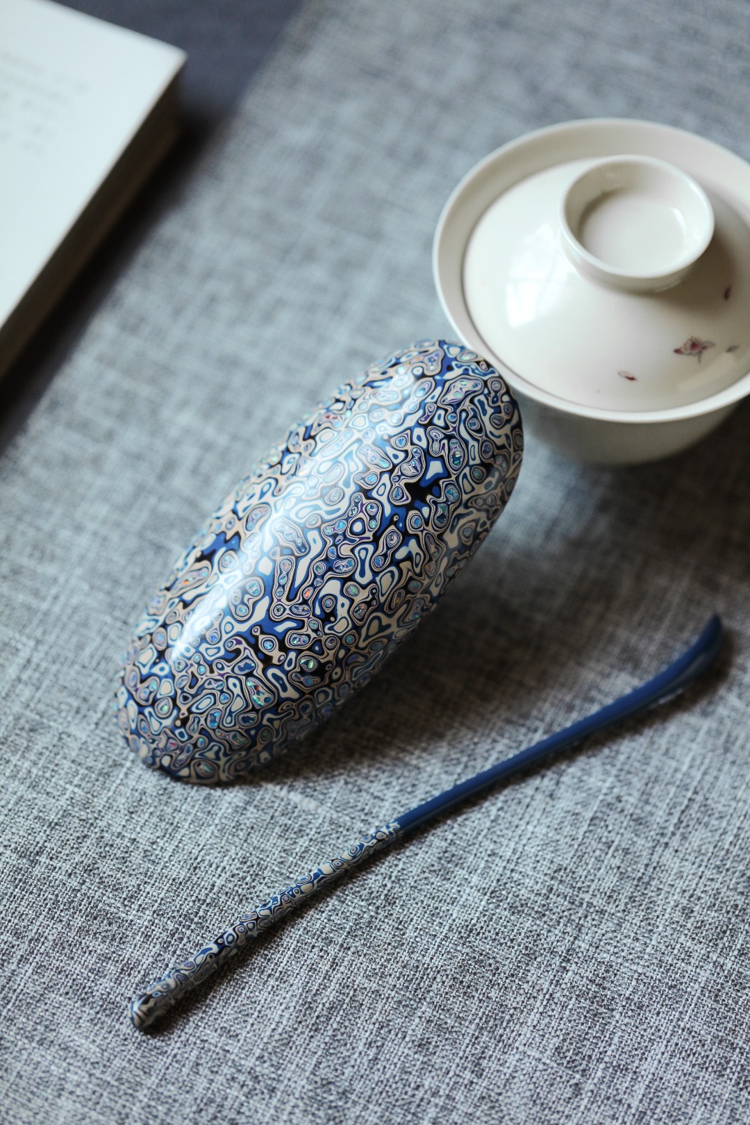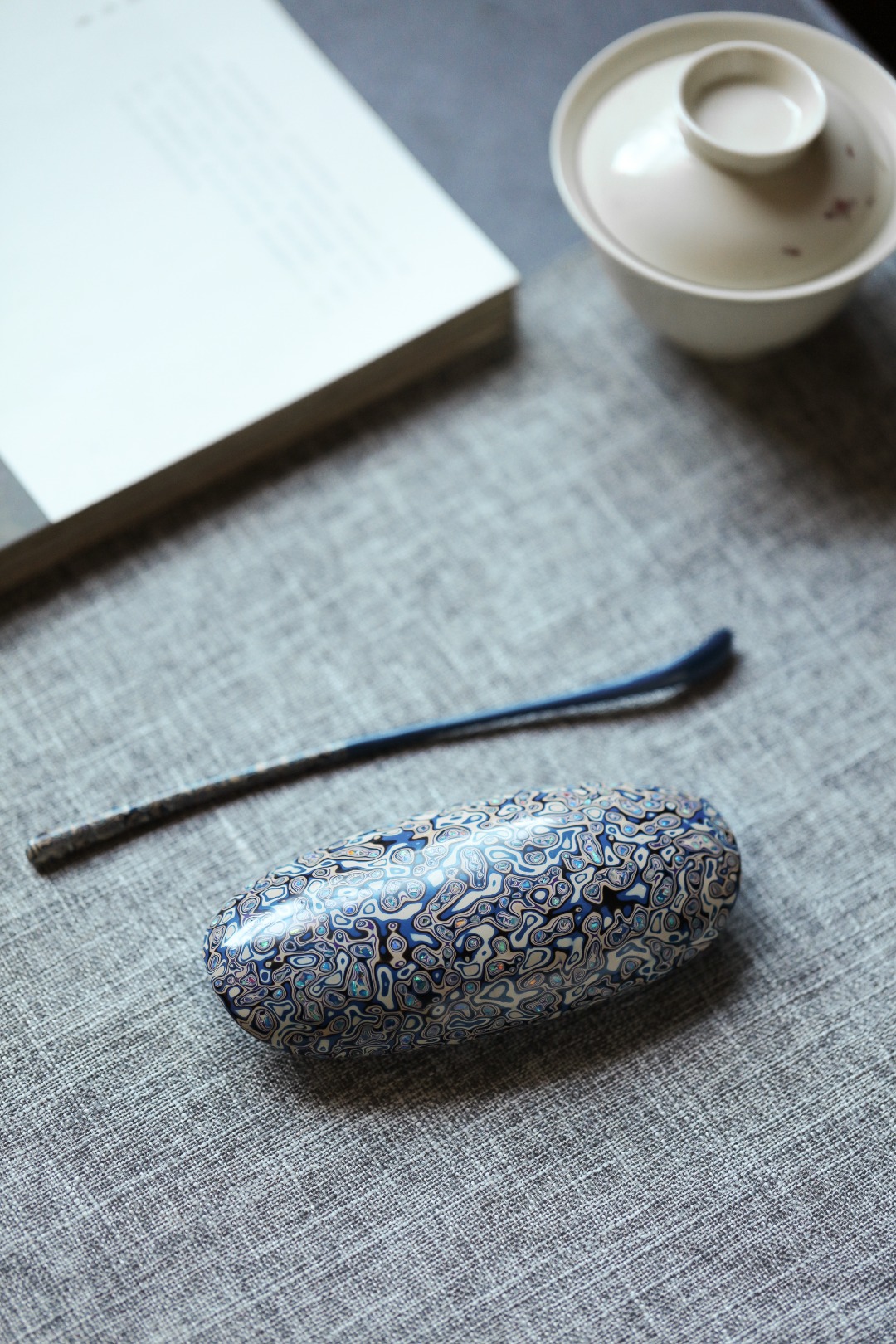 大漆X螺钿【群青蓝】 茶则 茶则:12.8*5.7*2.8cm 茶勺:长18cm