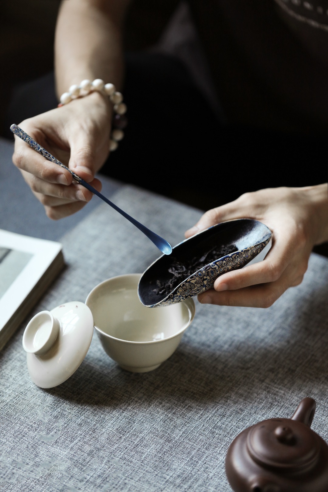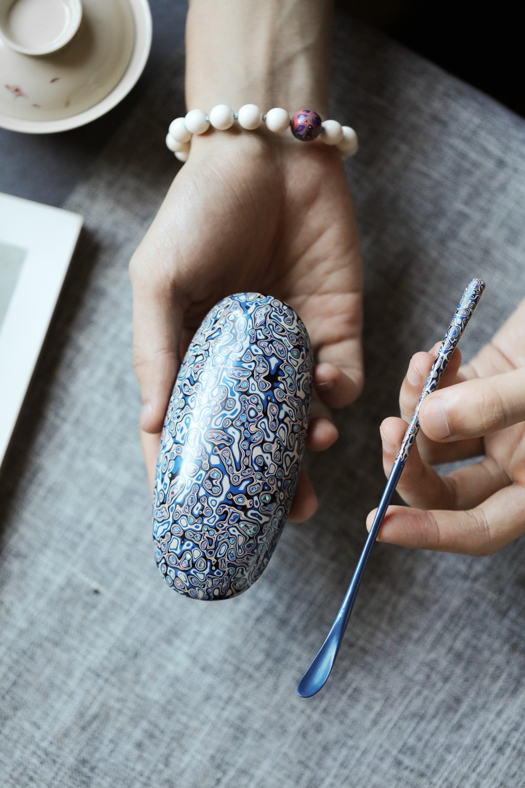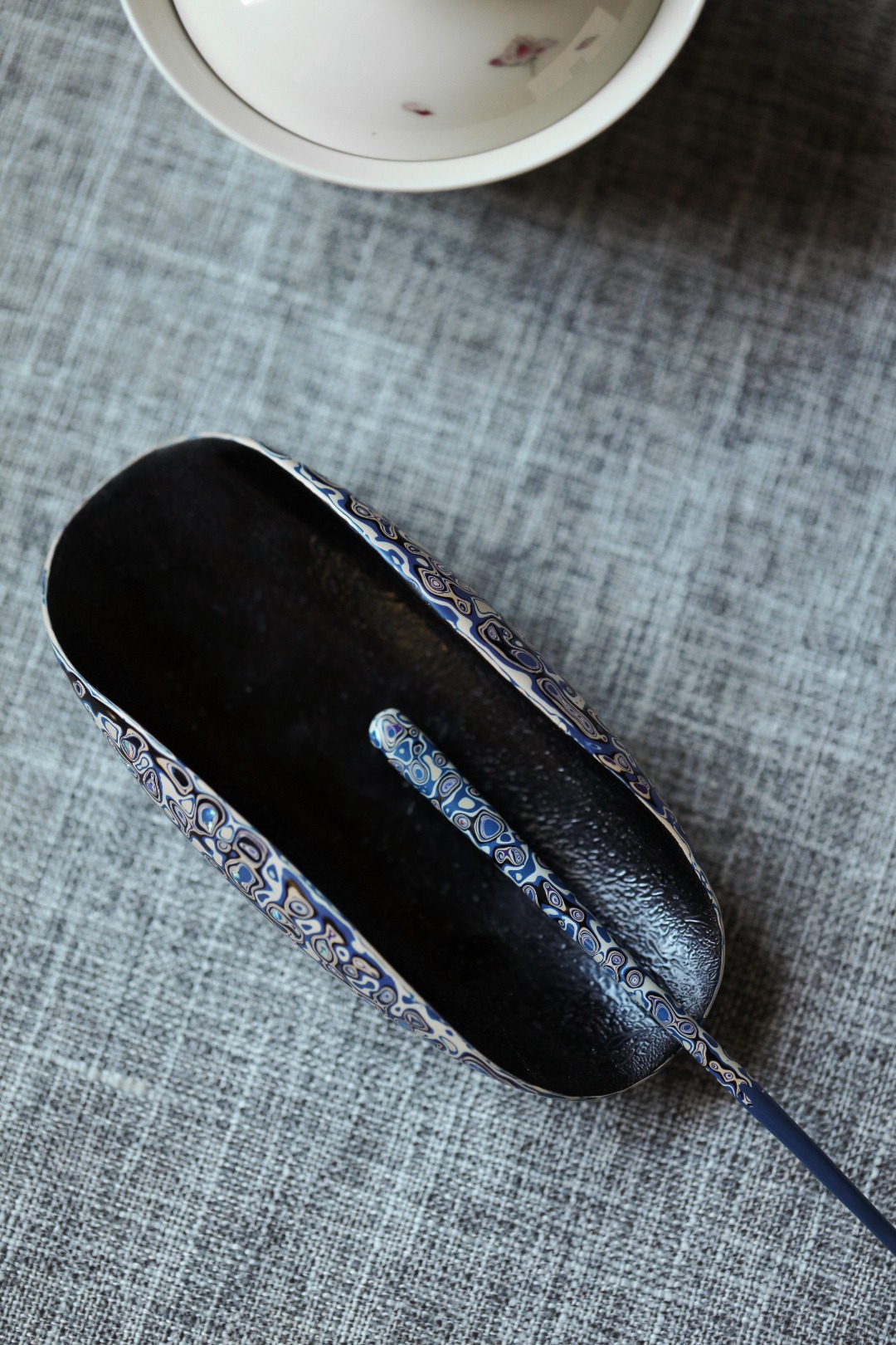 大漆X螺钿【群青蓝】 茶则 茶则:12.8*5.7*2.8cm 茶勺:长18cm