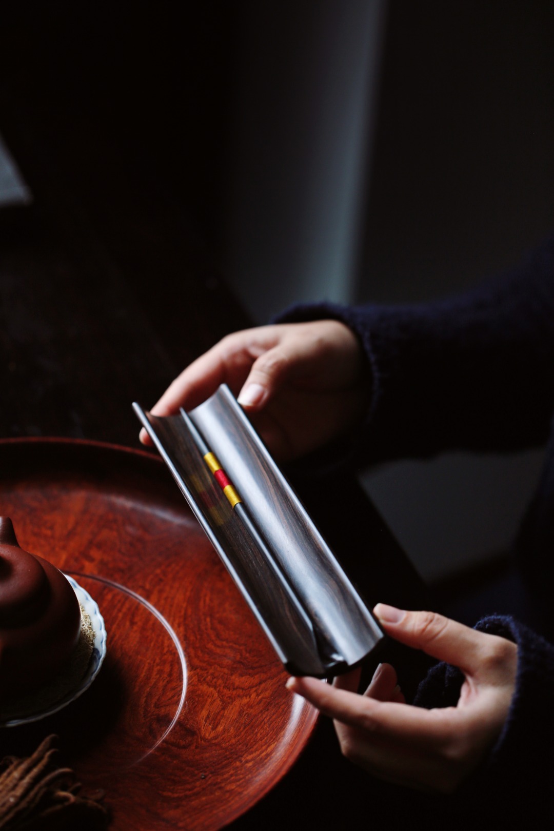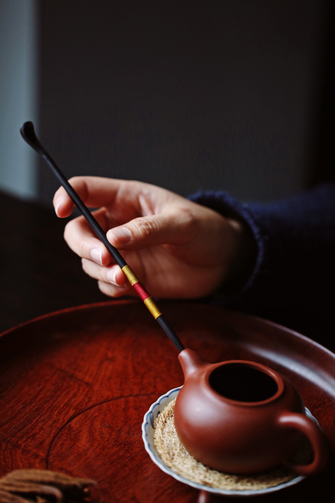 茶勺尾部彩线缠绕,雅致美观。