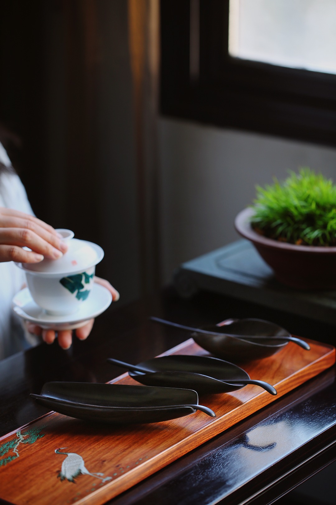 置于茶席一侧,沉静不喧嚣。