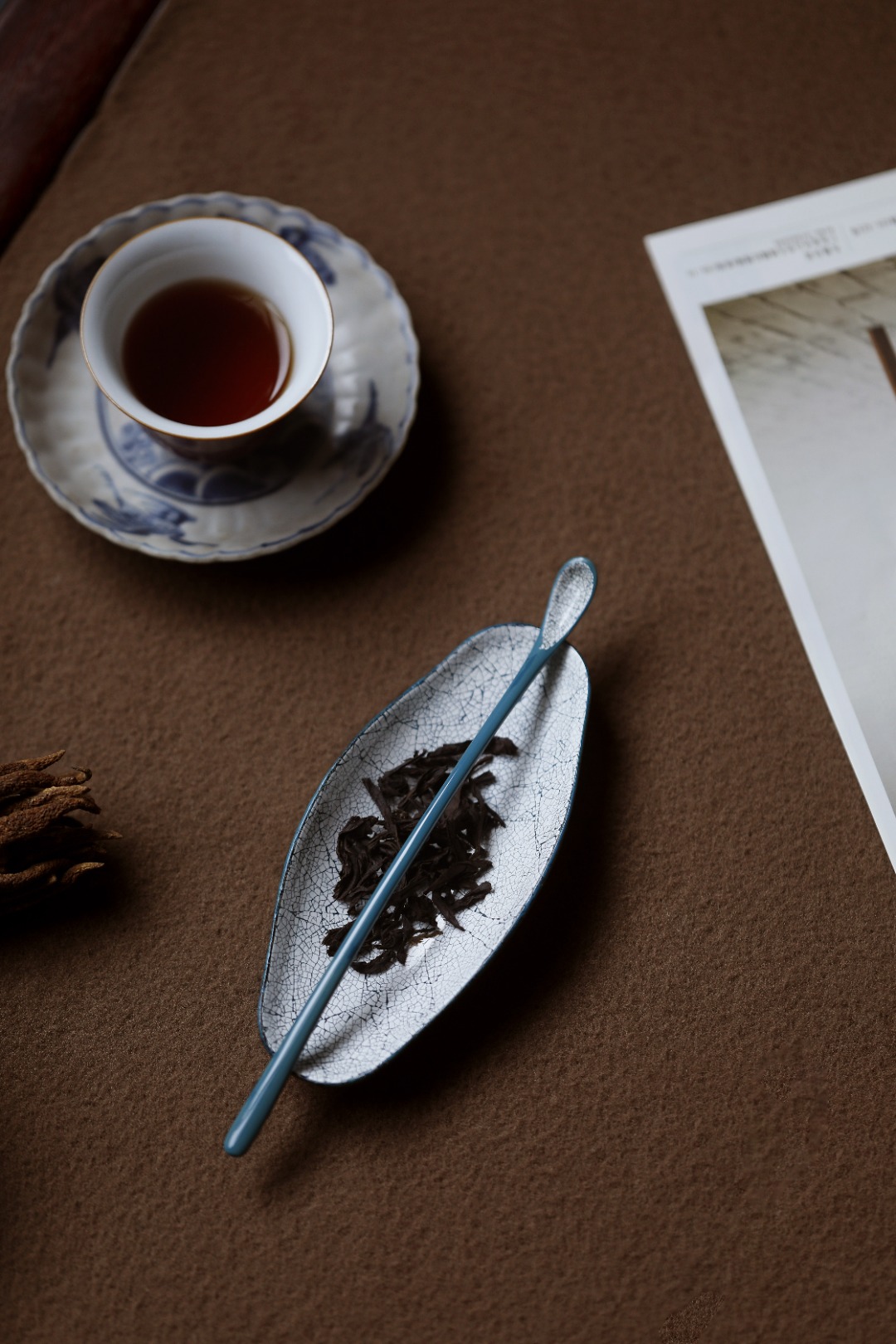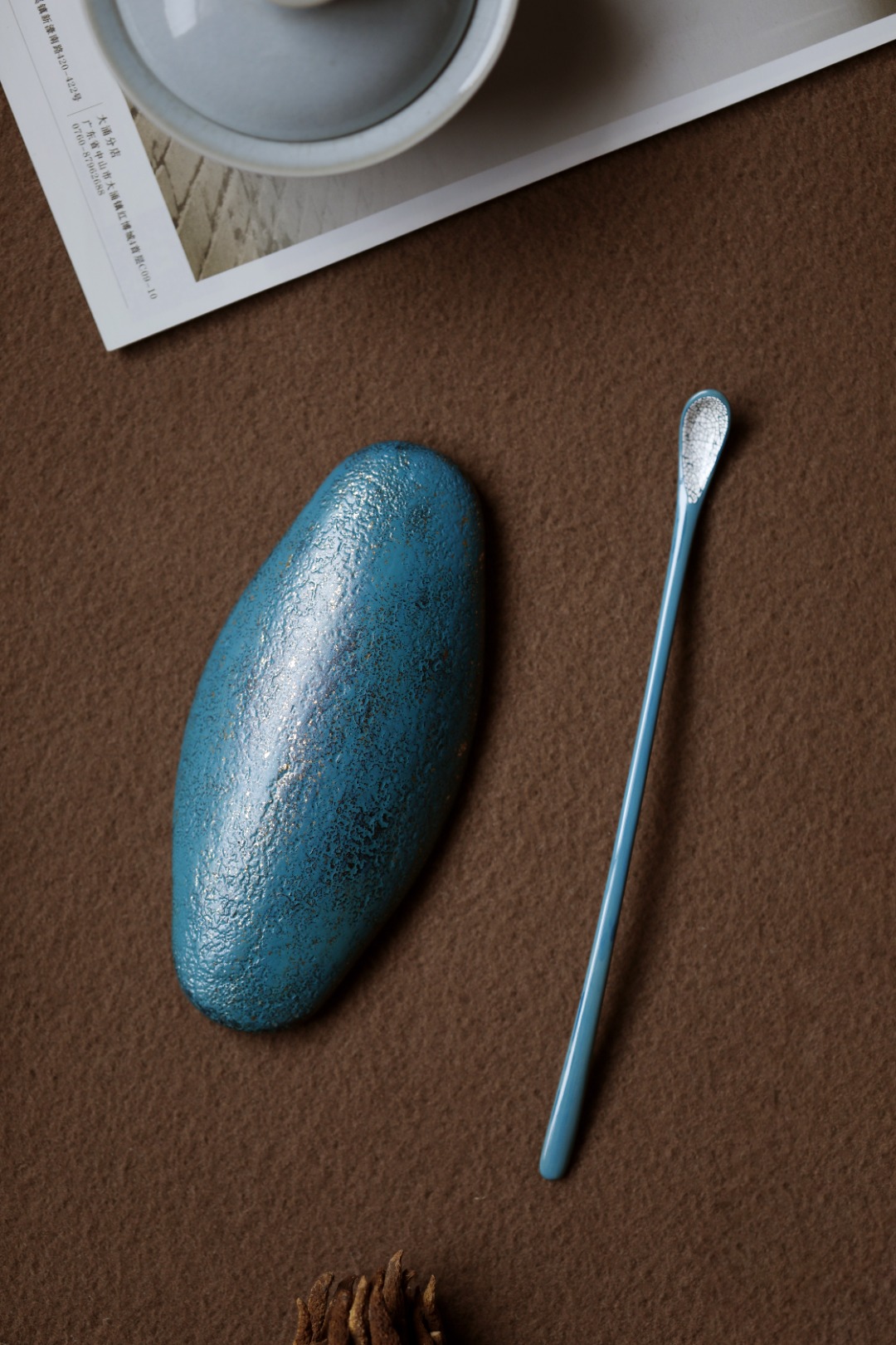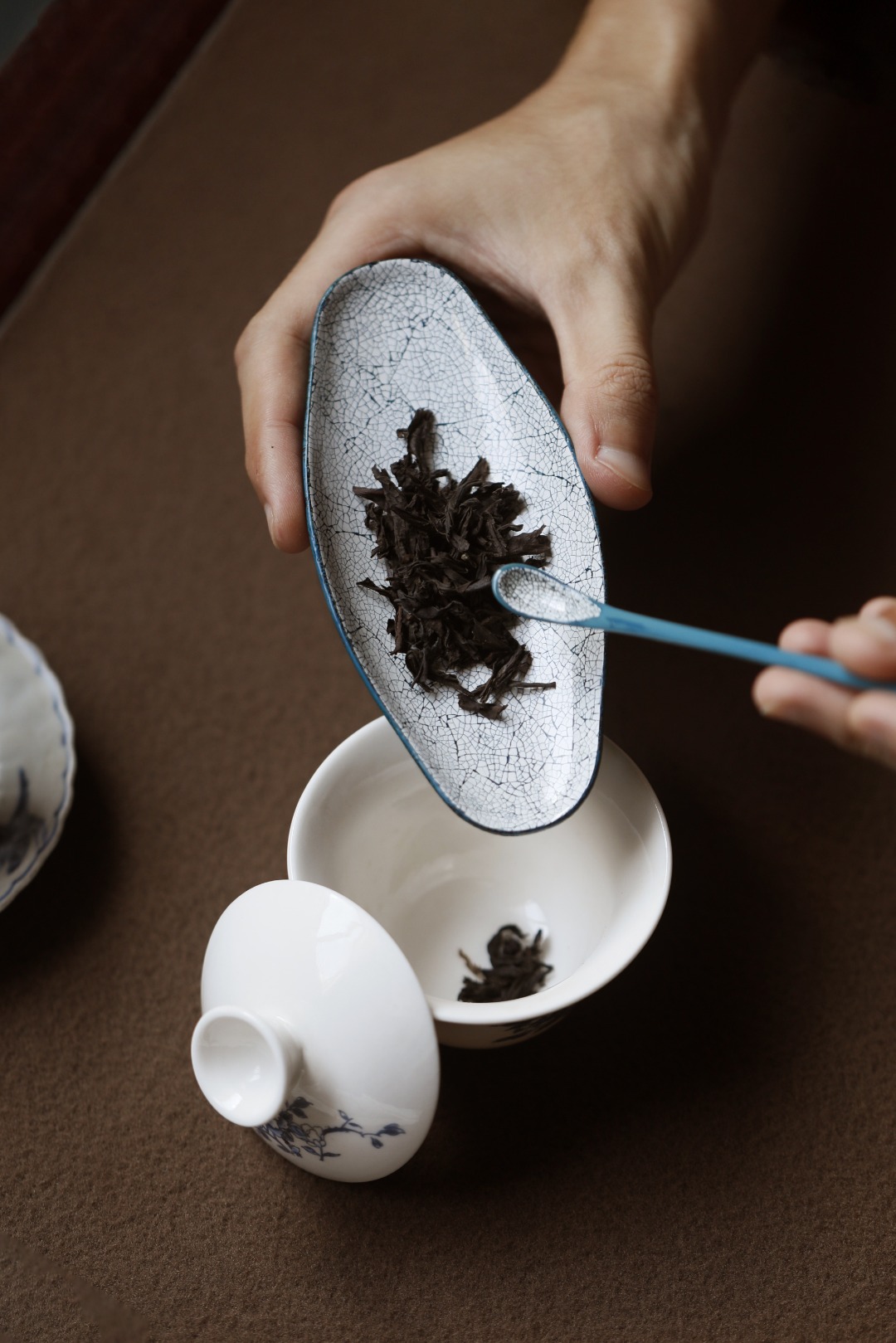 若冰裂开片,辅以茶事,与茶色相映相宜。