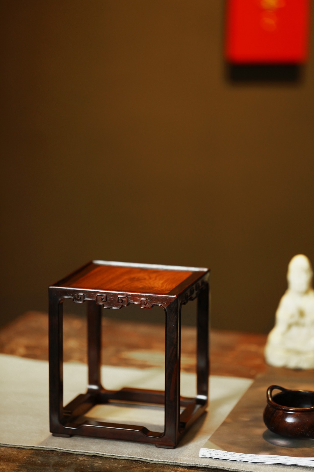 酸枝x缅花 | 如意纹底座 13.5*13.5*15.8cm
