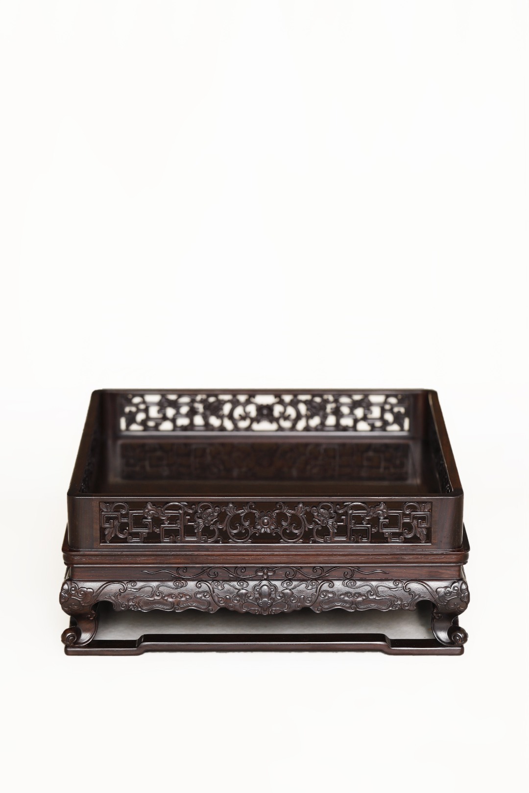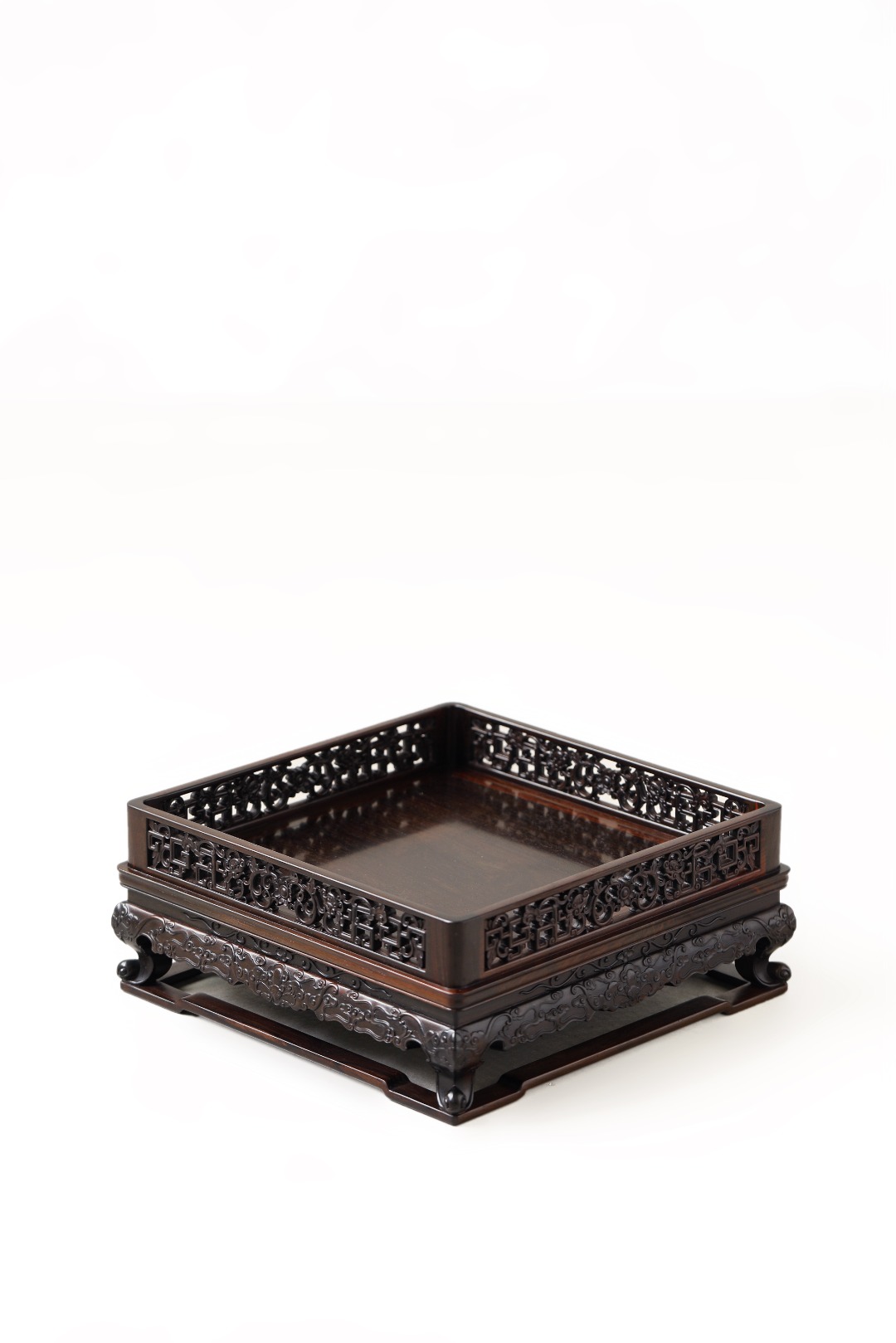 酸枝『镂空雕拐子如意纹』都承盘 28*28*11.7cm 重1435g