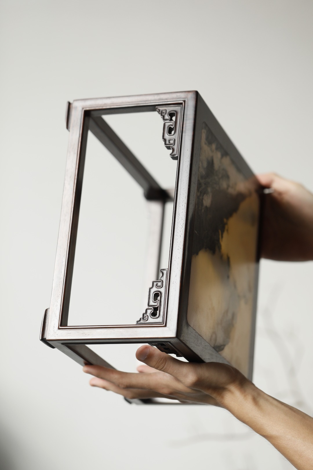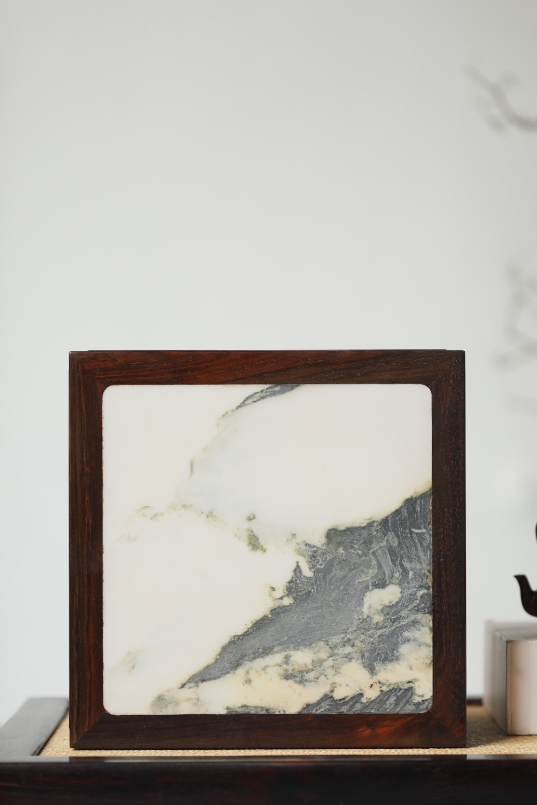 屏镶云石一方,山水并具,山云奇幻,