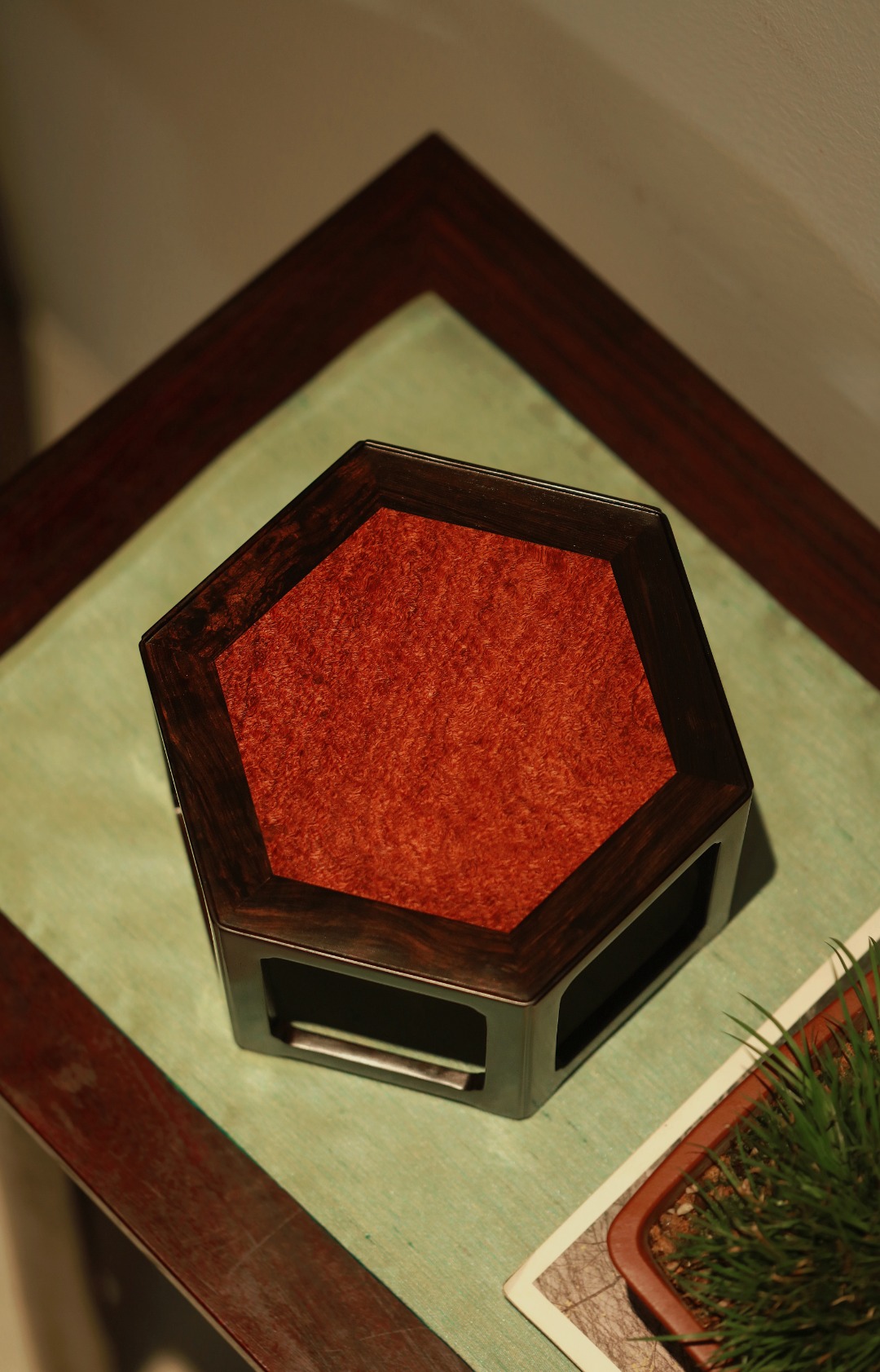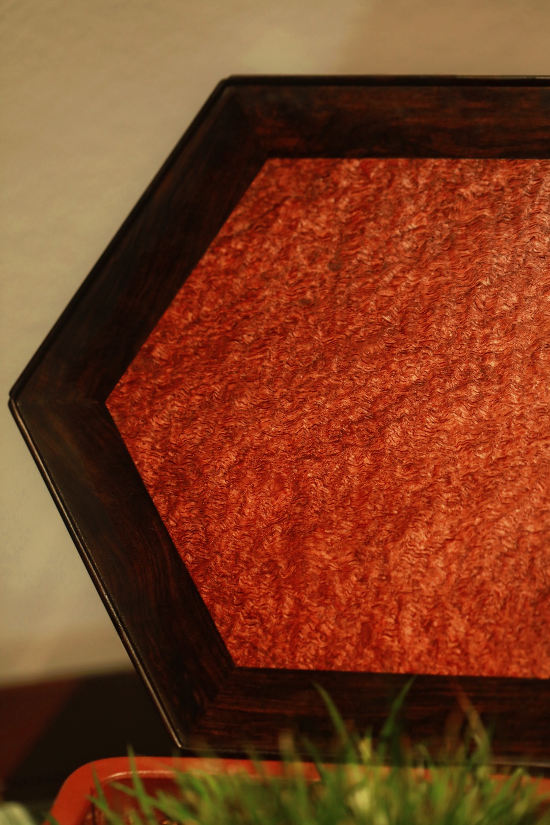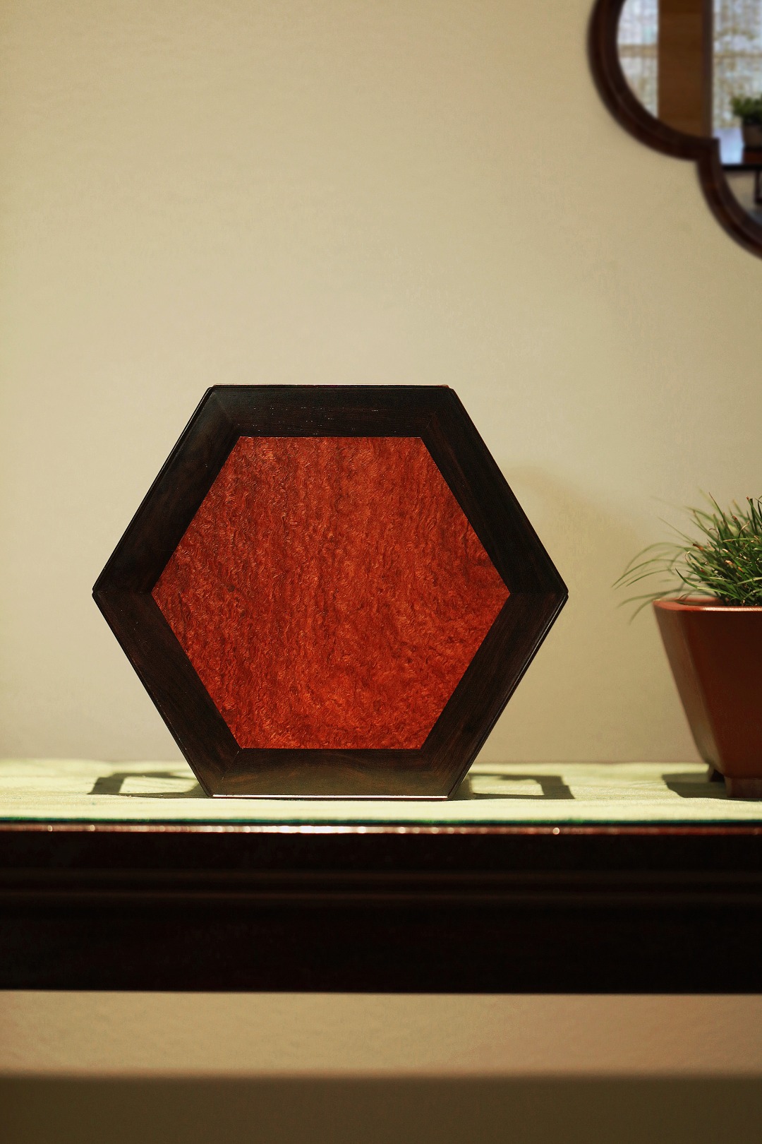 几面撞色镶嵌缅花板,端庄古朴;