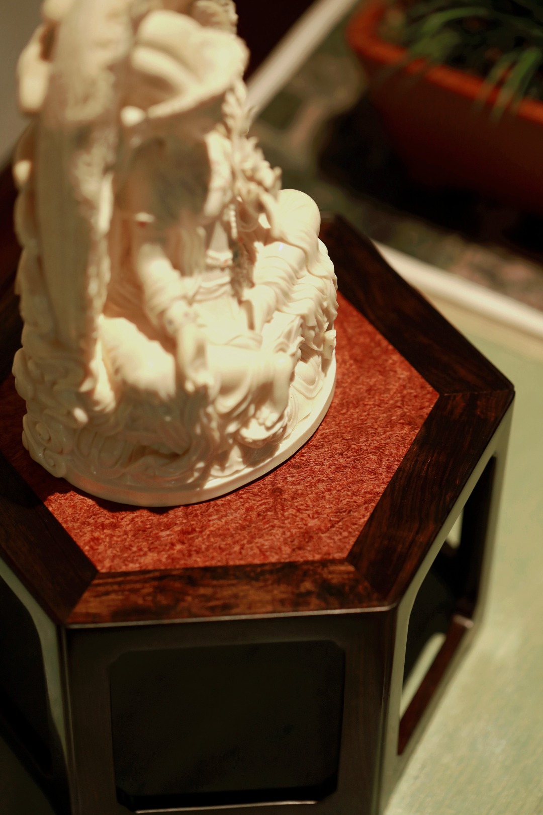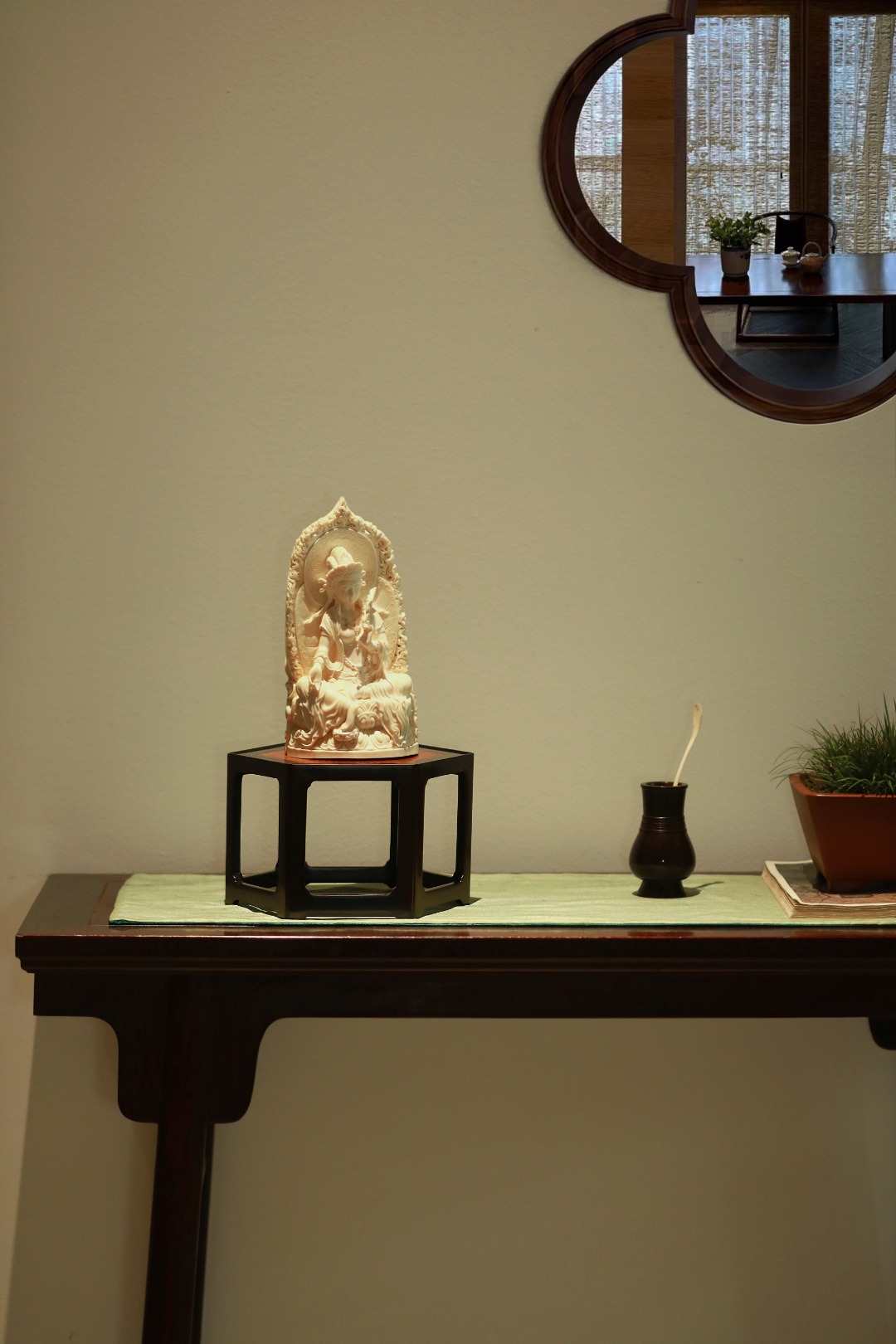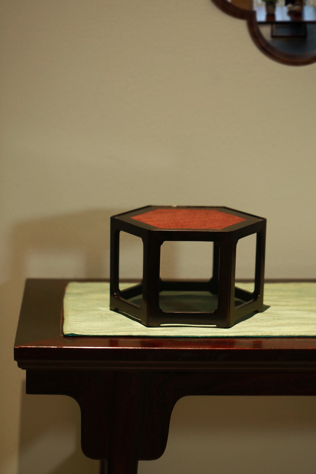 几面撞色镶嵌缅花板,端庄古朴;
