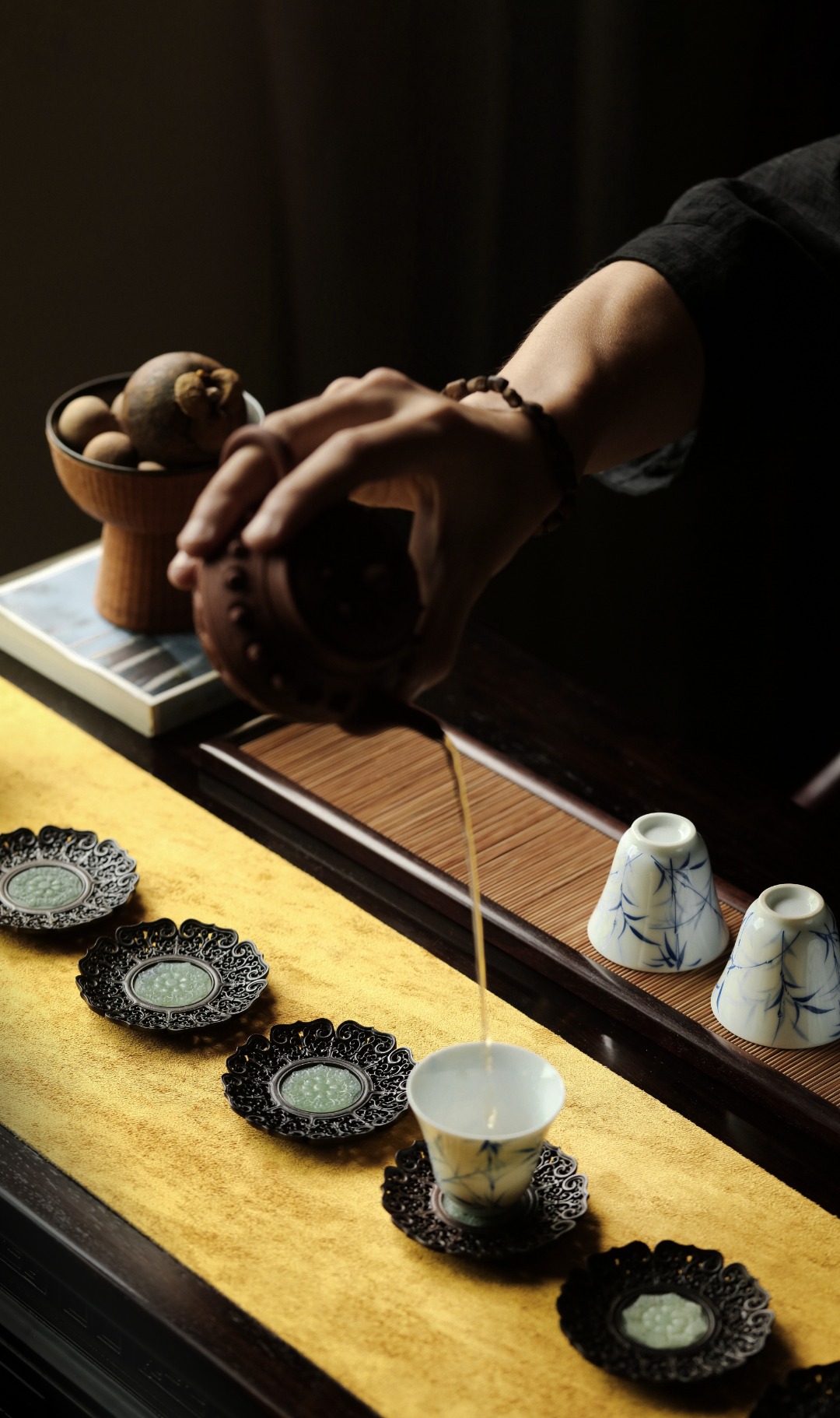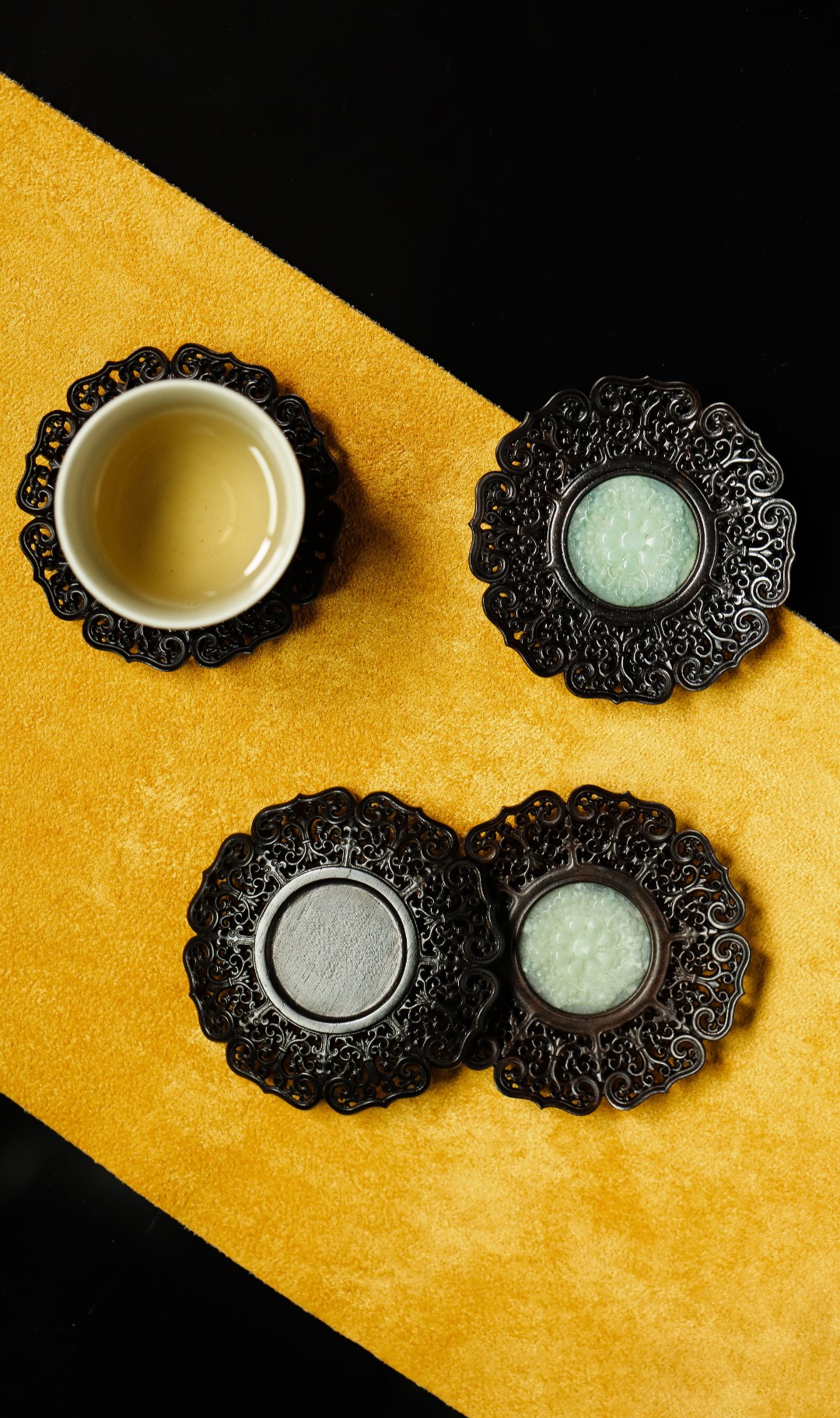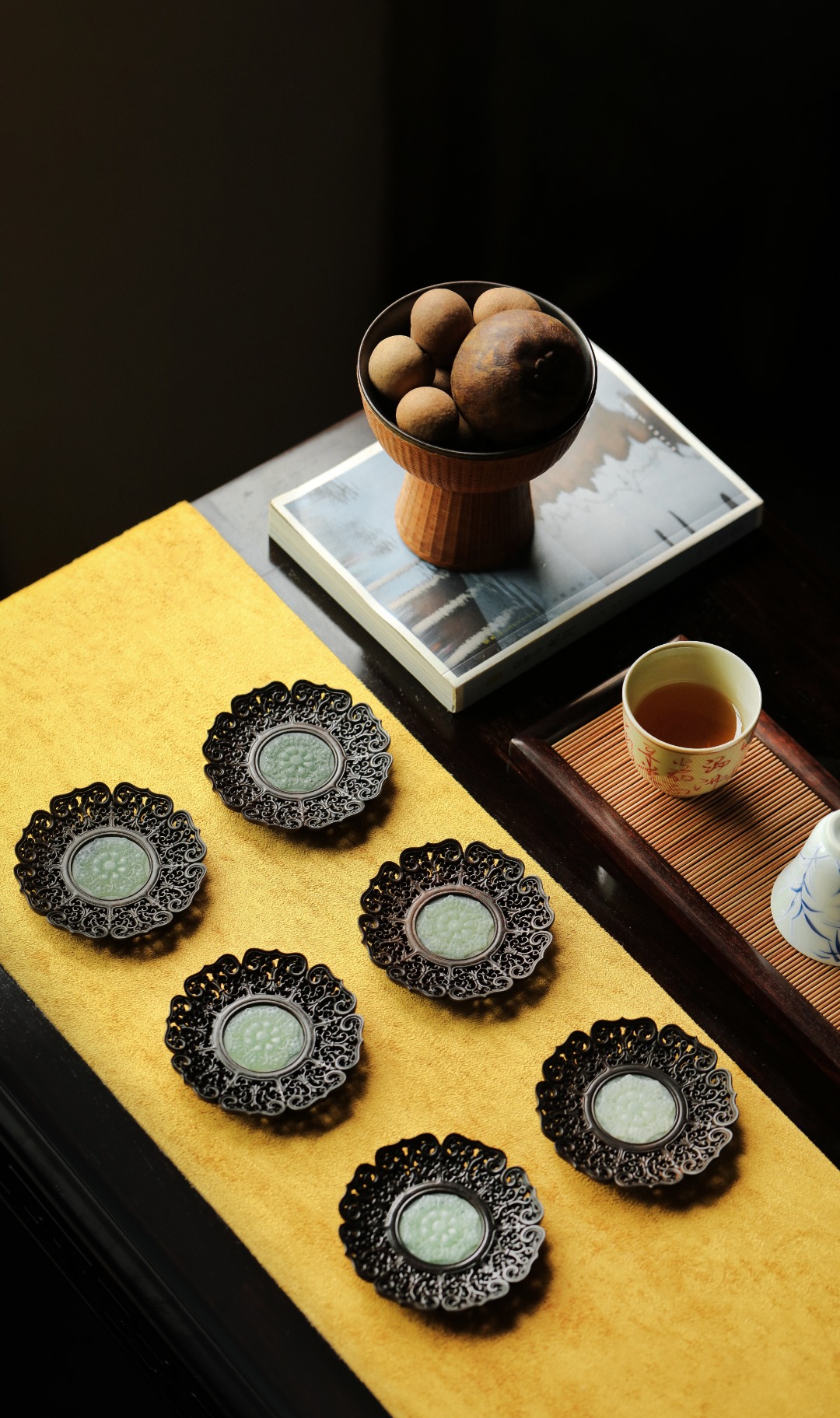 缠枝莲绽放茶席之中,极富宫廷韵味,