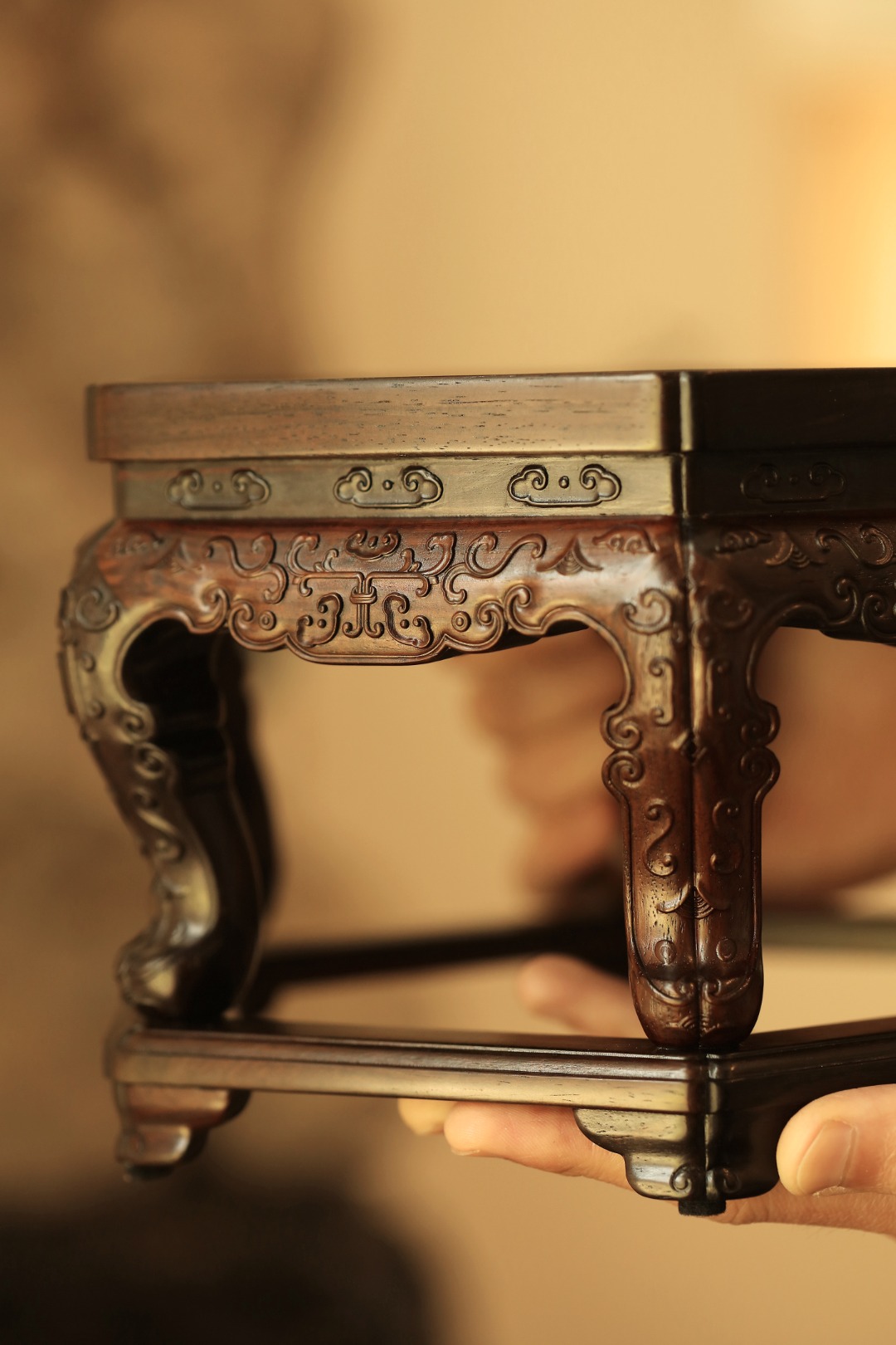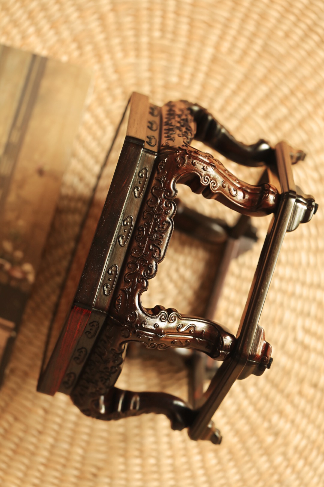 酸枝x缅花【卷草·如意纹】香几 25*22*14.8cm 重1120g
