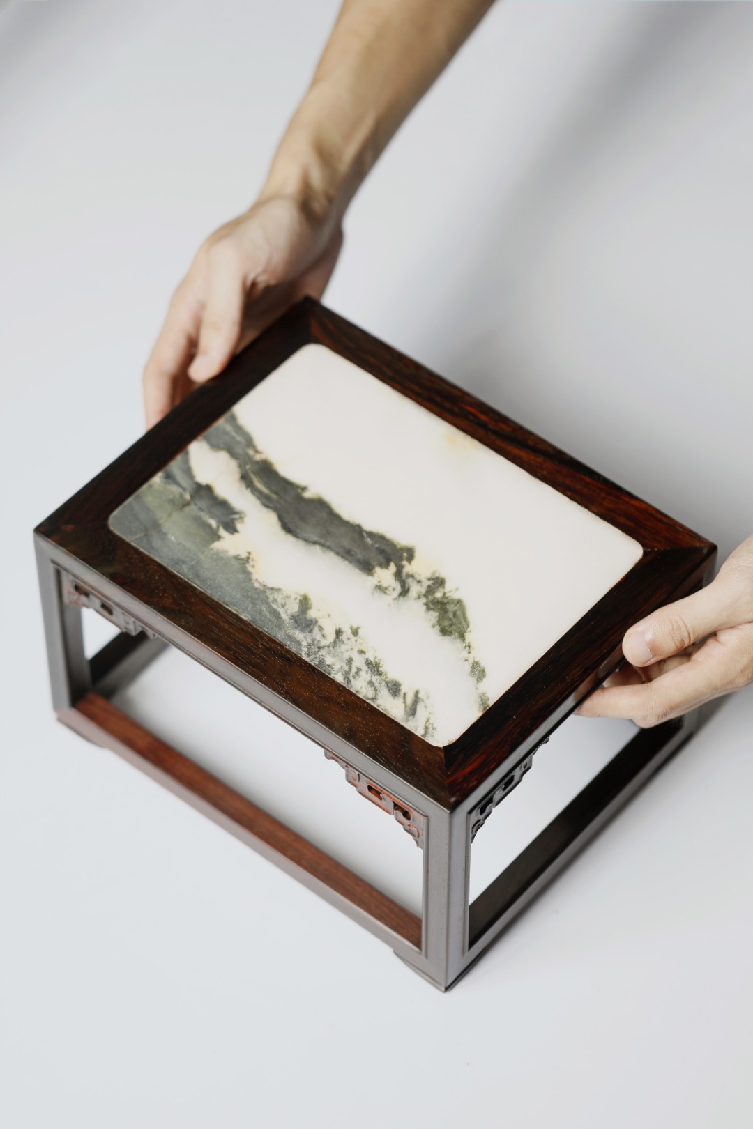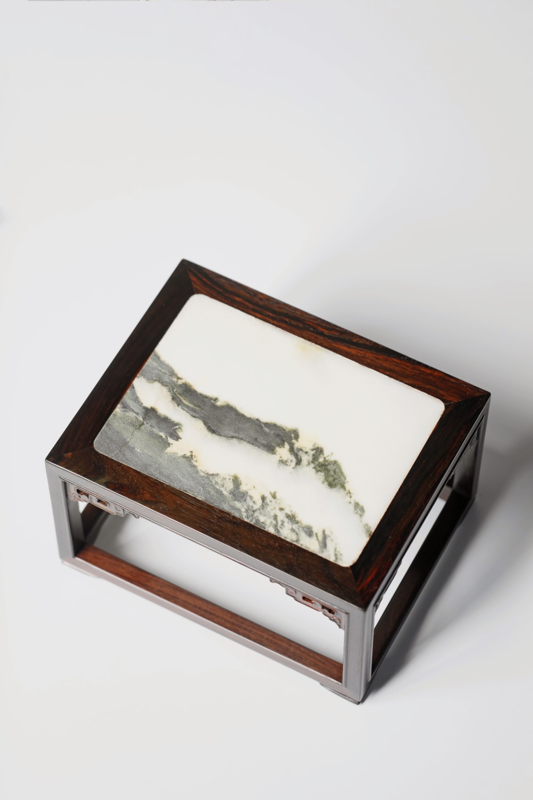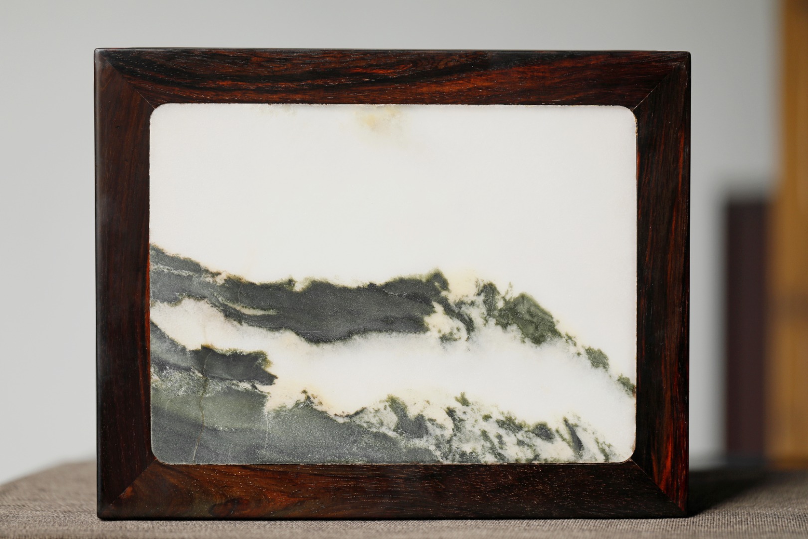 屏镶云石一方,山水并具,山云奇幻,