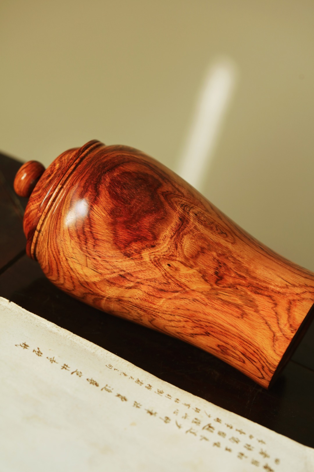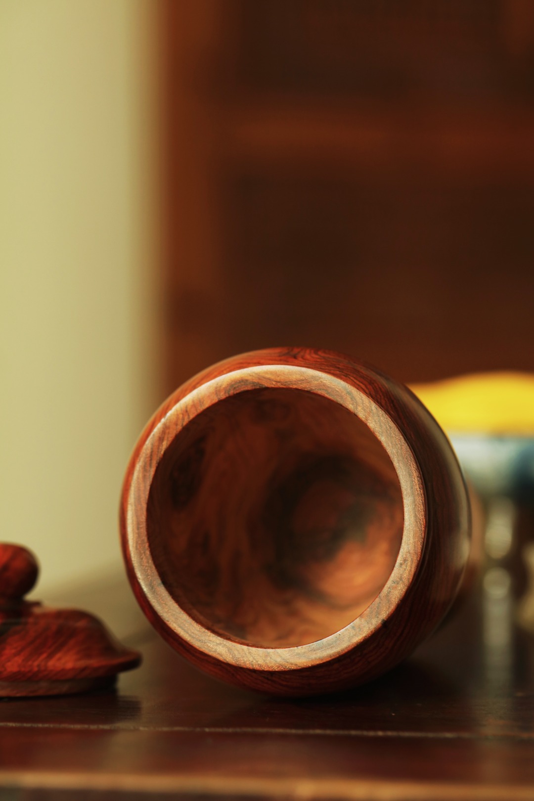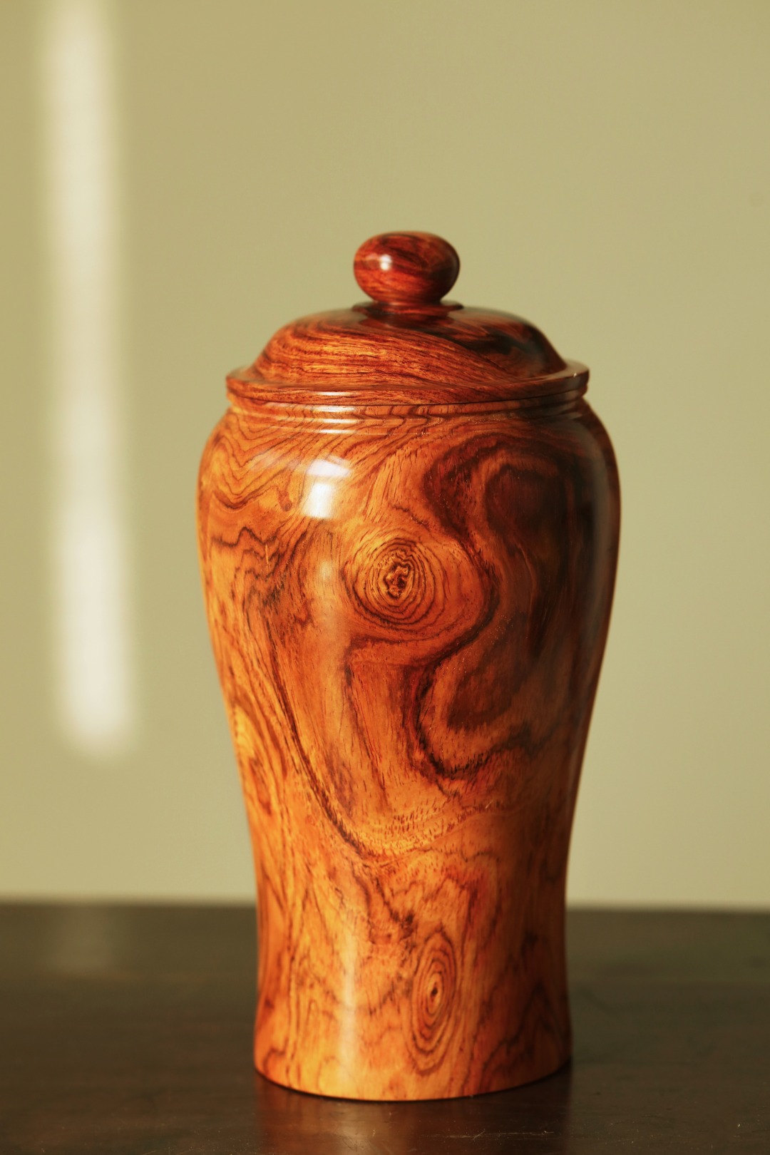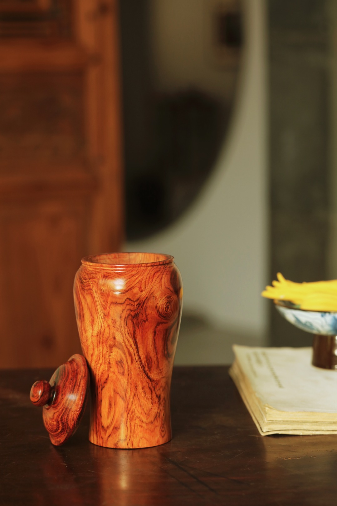 油梨老料一木车制,器形简约;温润无争,纹集水波山水、鬼脸纹。气韵闲远,置茶席案头,雅致;揭盖降香浓郁,赏藏皆宜。