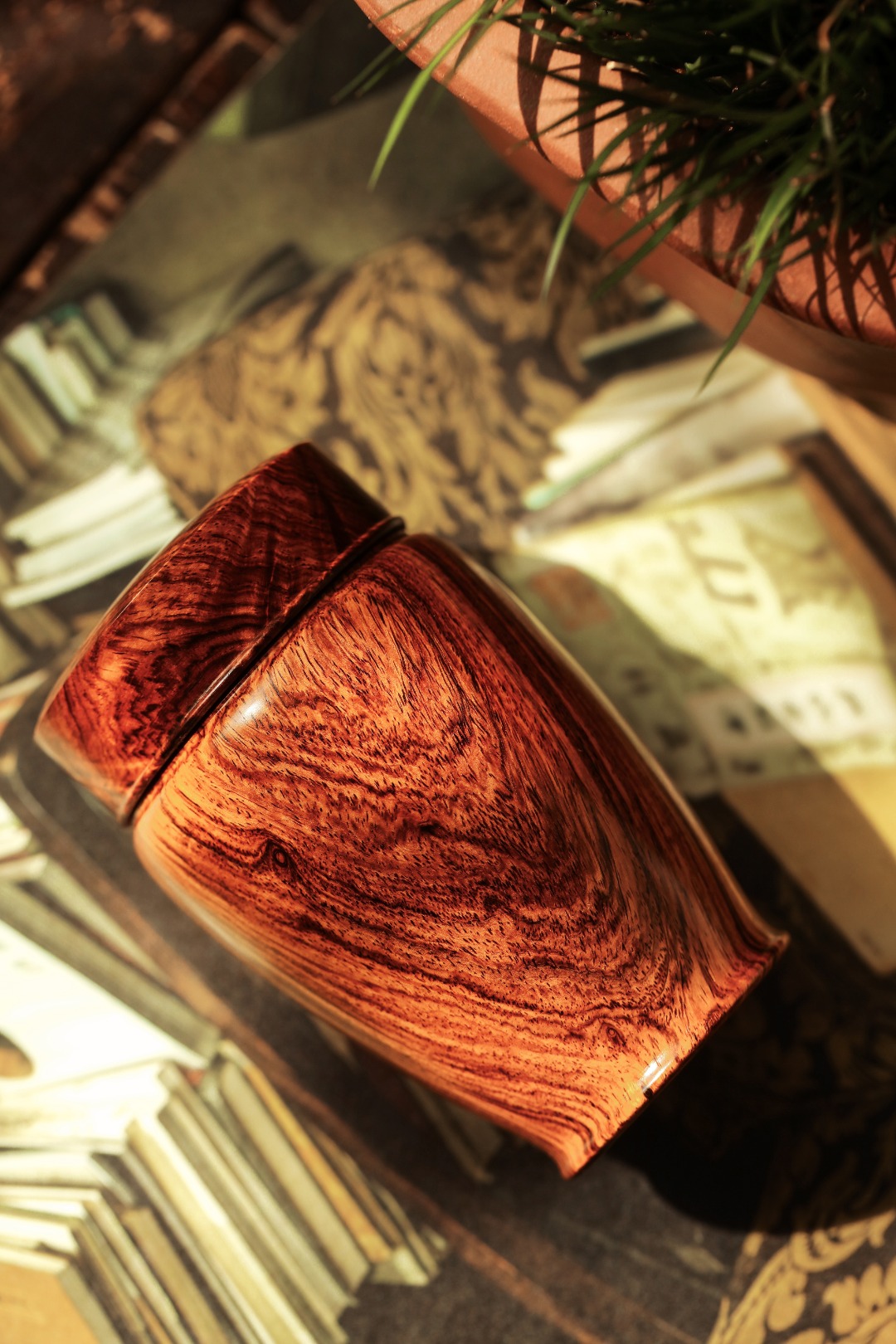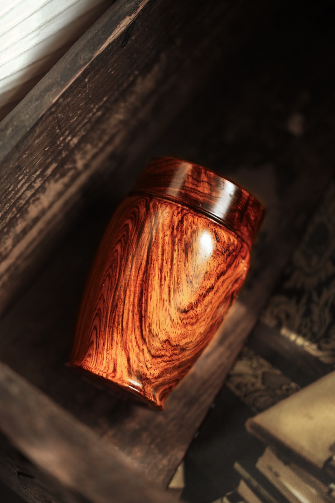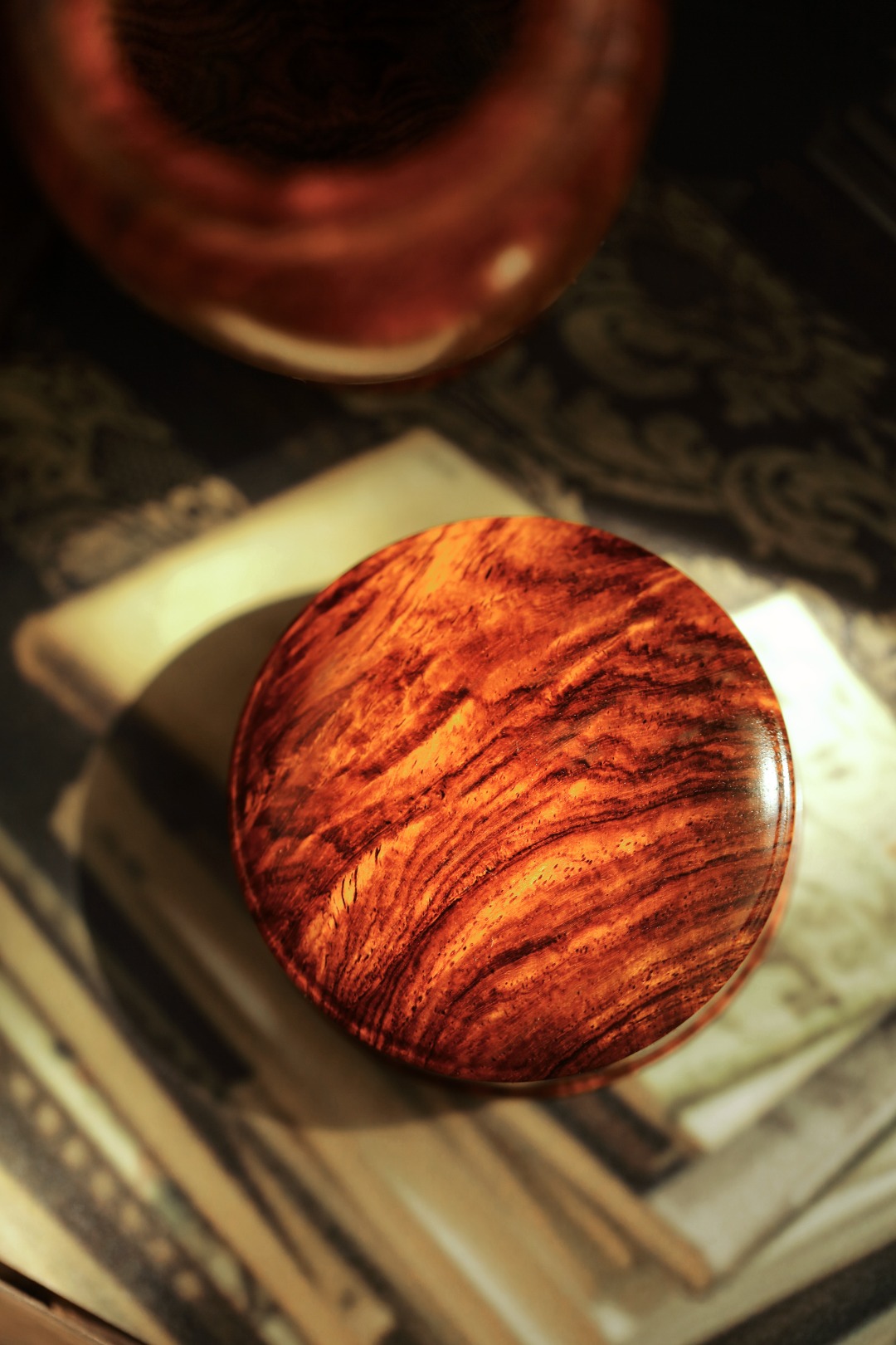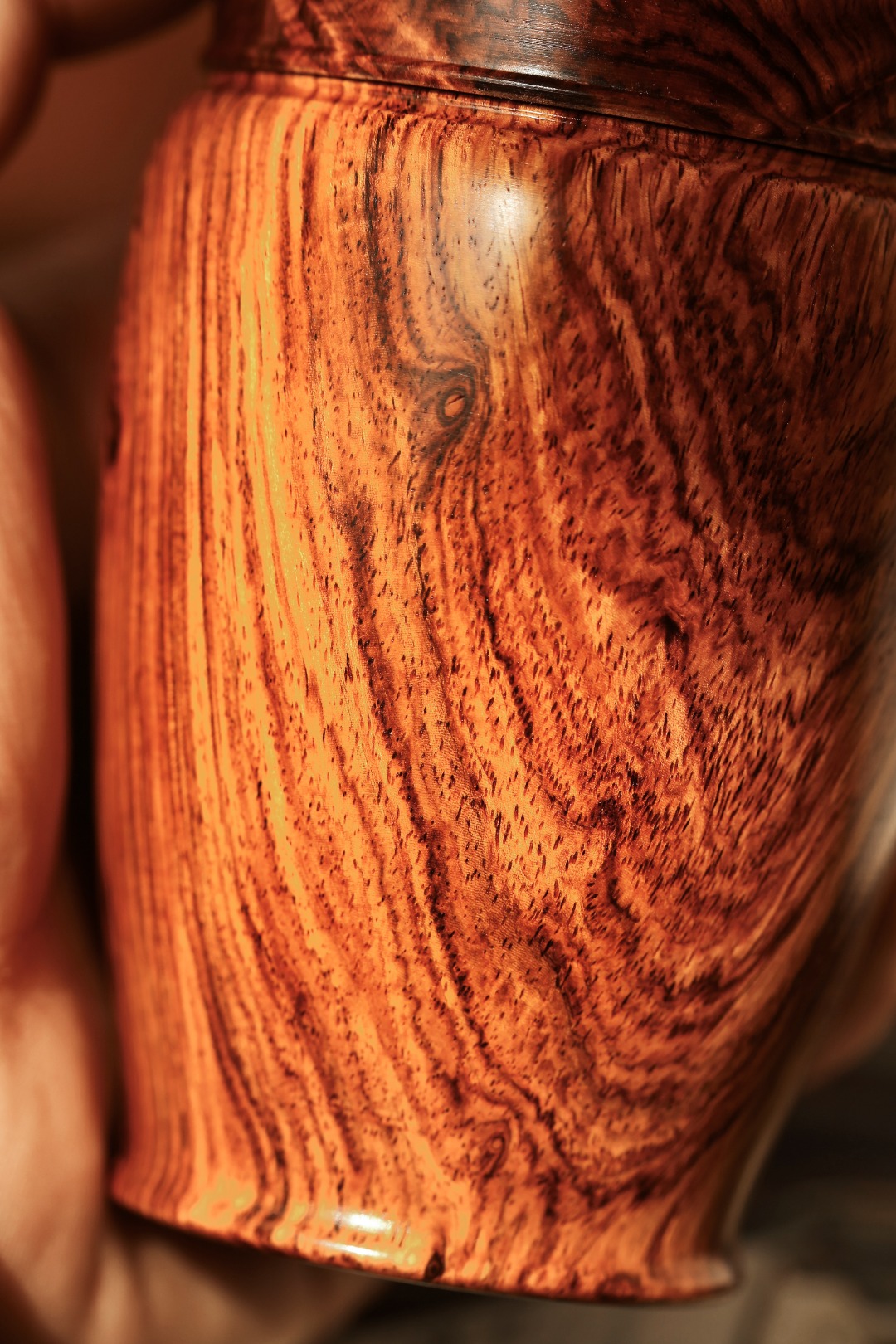 海黄油梨老料,质地油润,周身纹理如行云流水,每一道纹路都是大自然鬼斧神工的杰作,触手生温,揭盖降香浓郁。