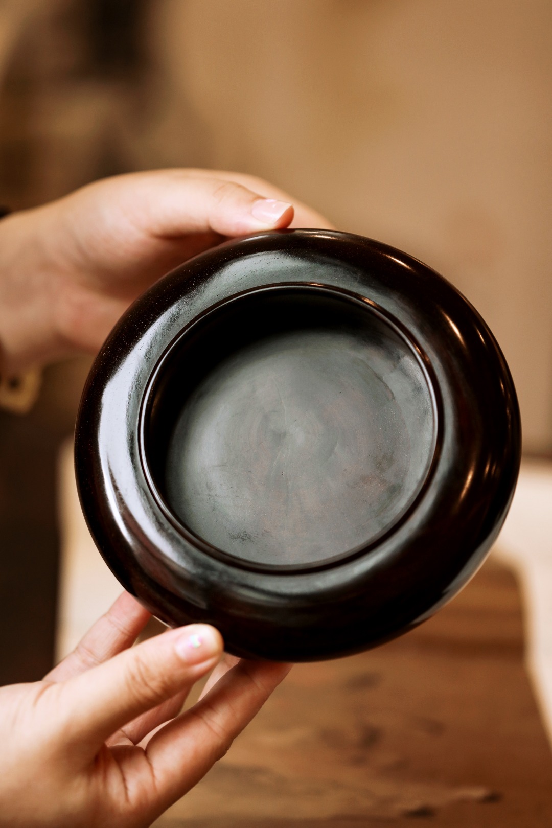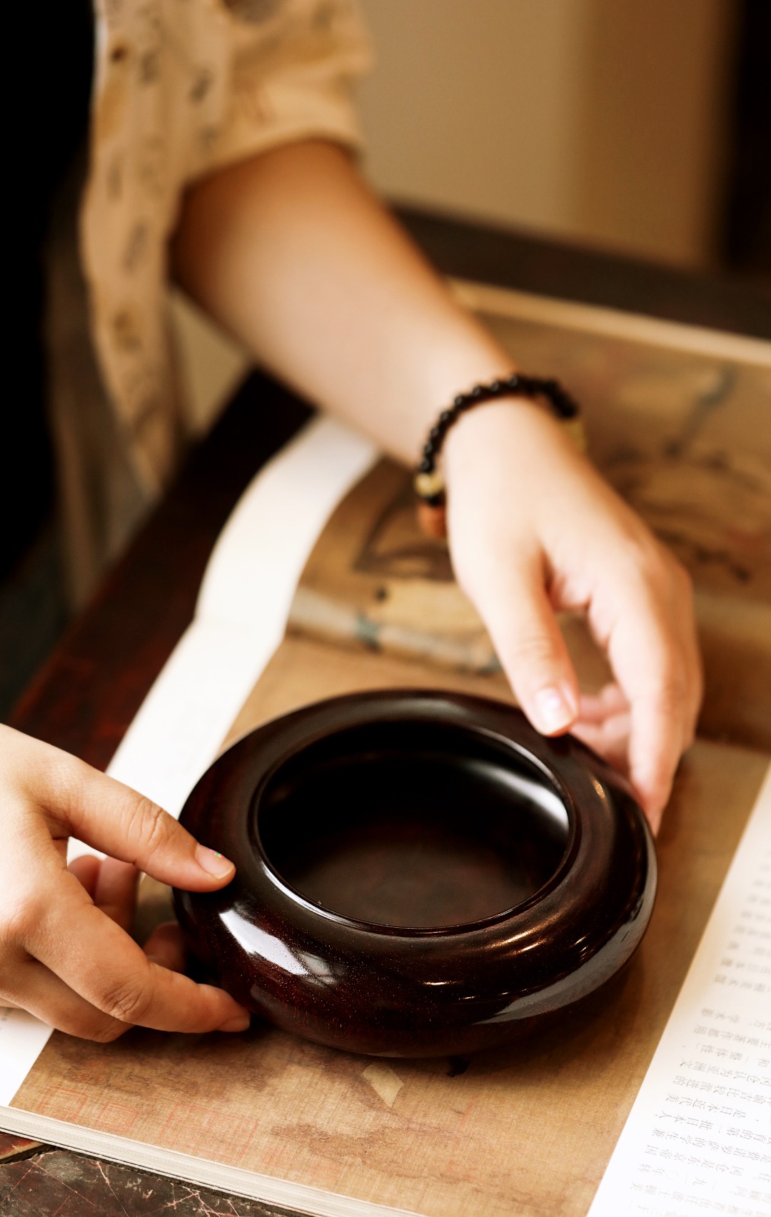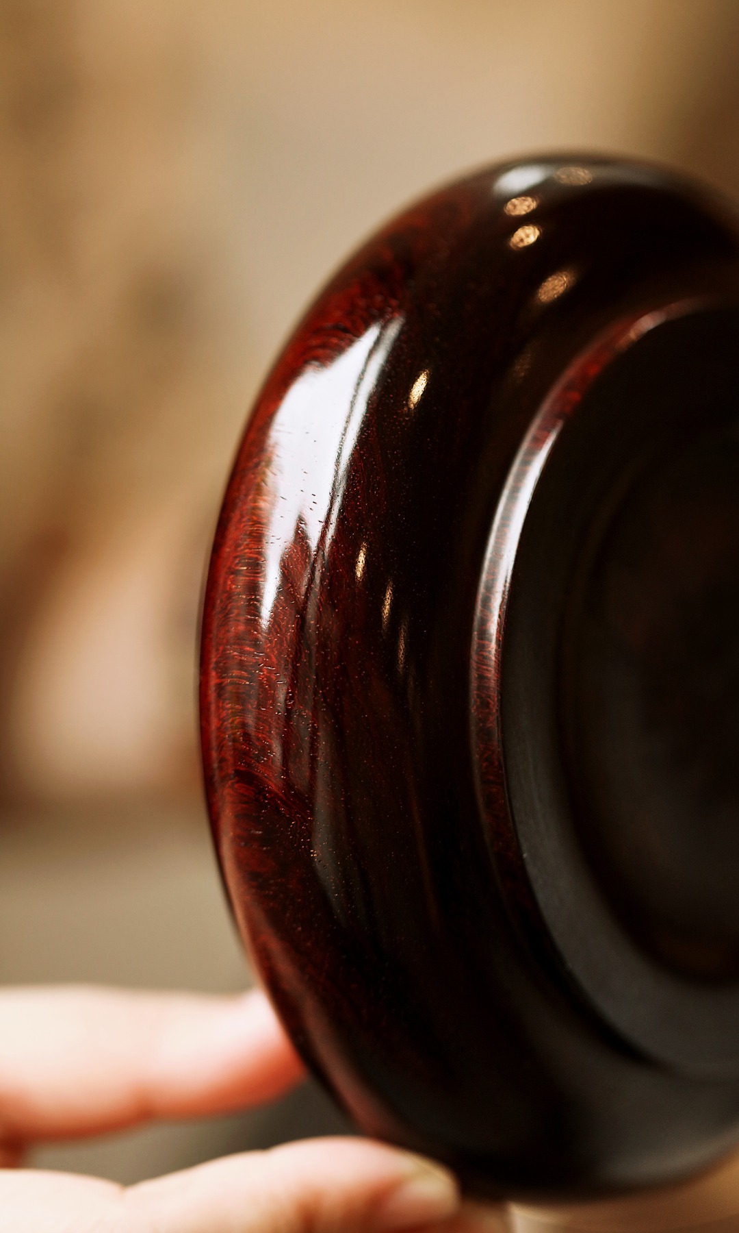 小叶紫檀整木挖制,光泽温润醇古,多金星,置案静而不喧。案几收纳章石、亦可收纳瓜果点心,一物多用。