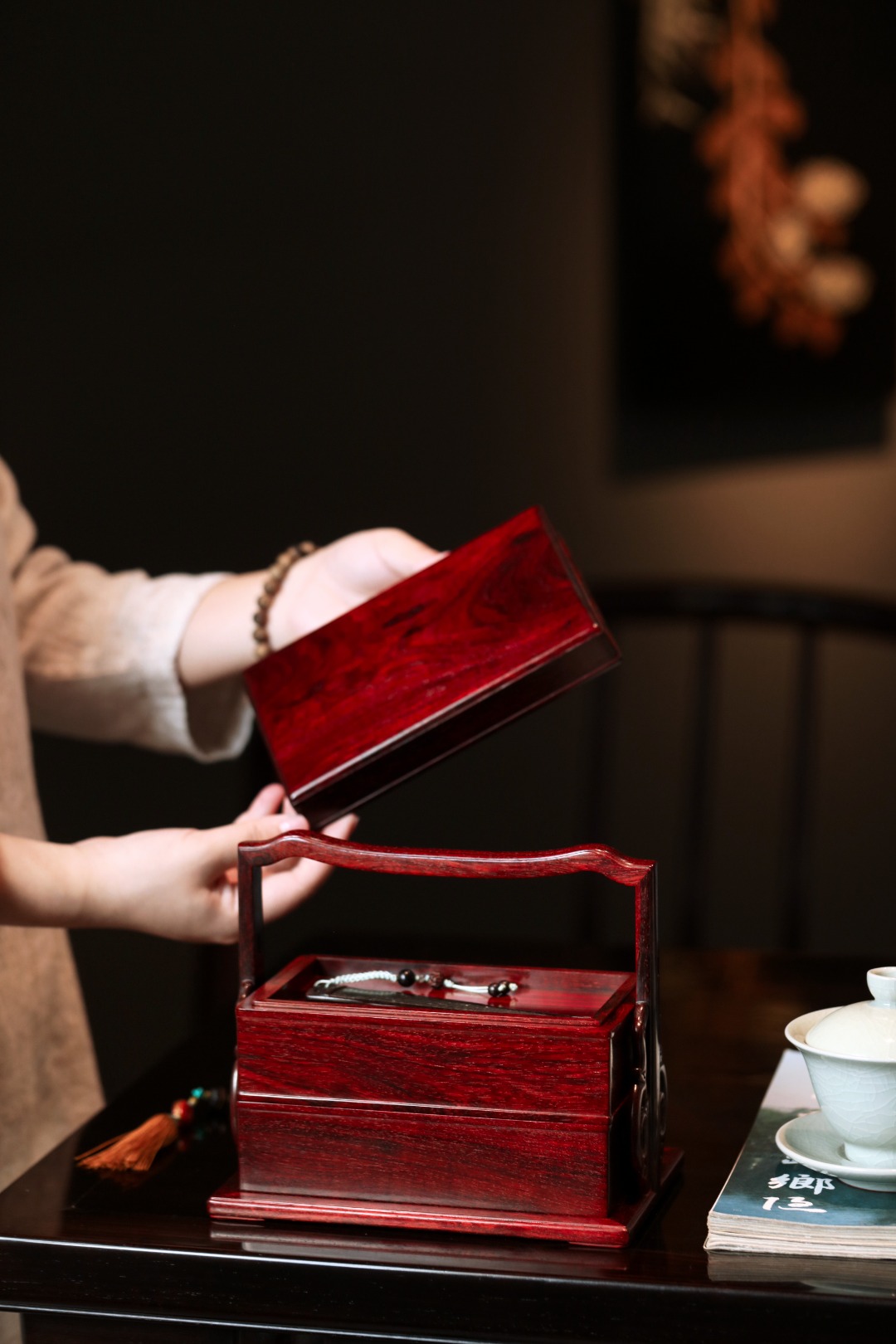 紫檀料质细腻润泽,榫卯严谨工艺细致,