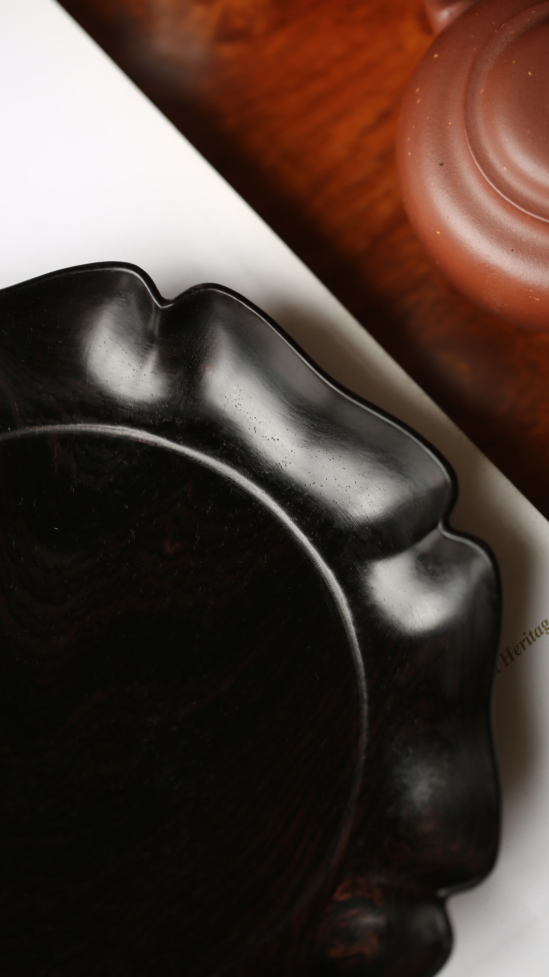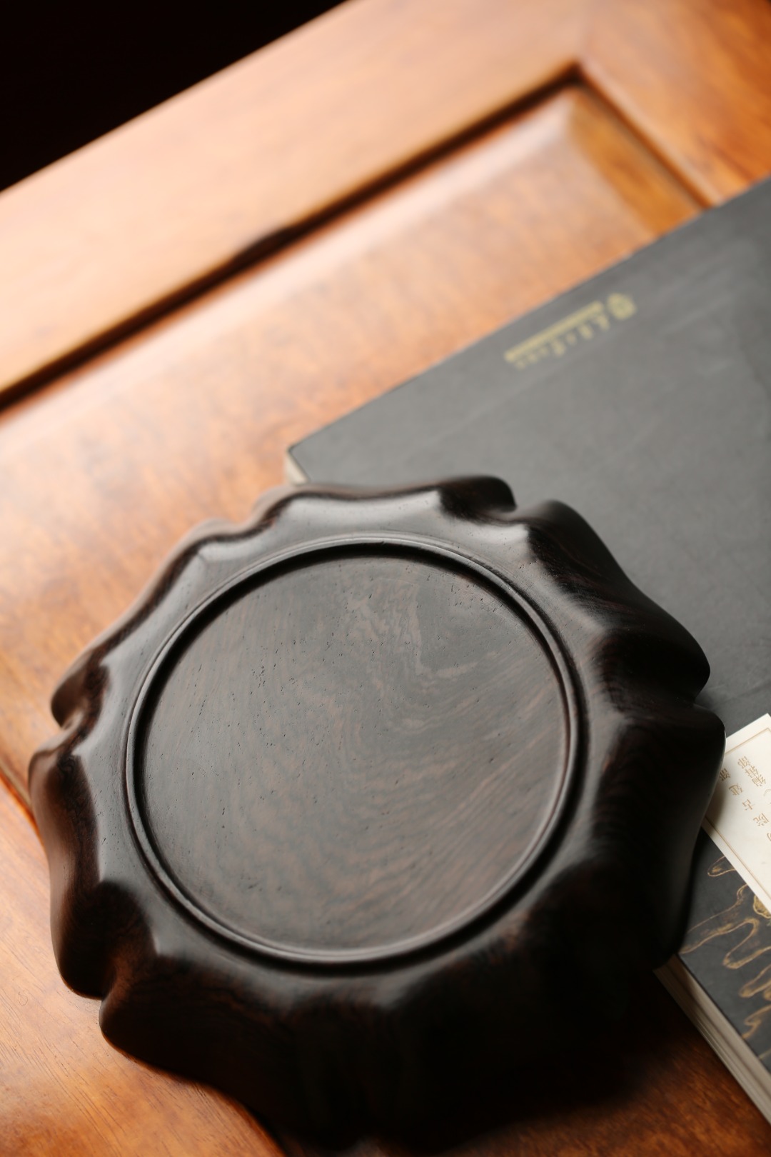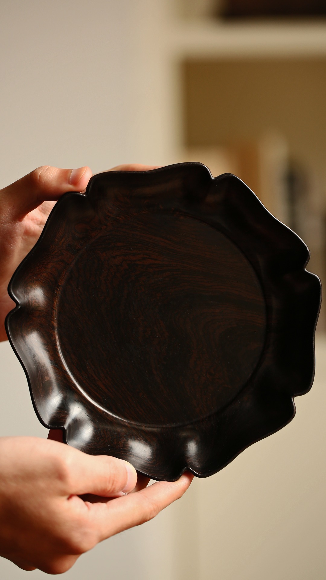紫光檀 海棠形 果盘/干泡盘 直径18.5cm 高3cm 重200g