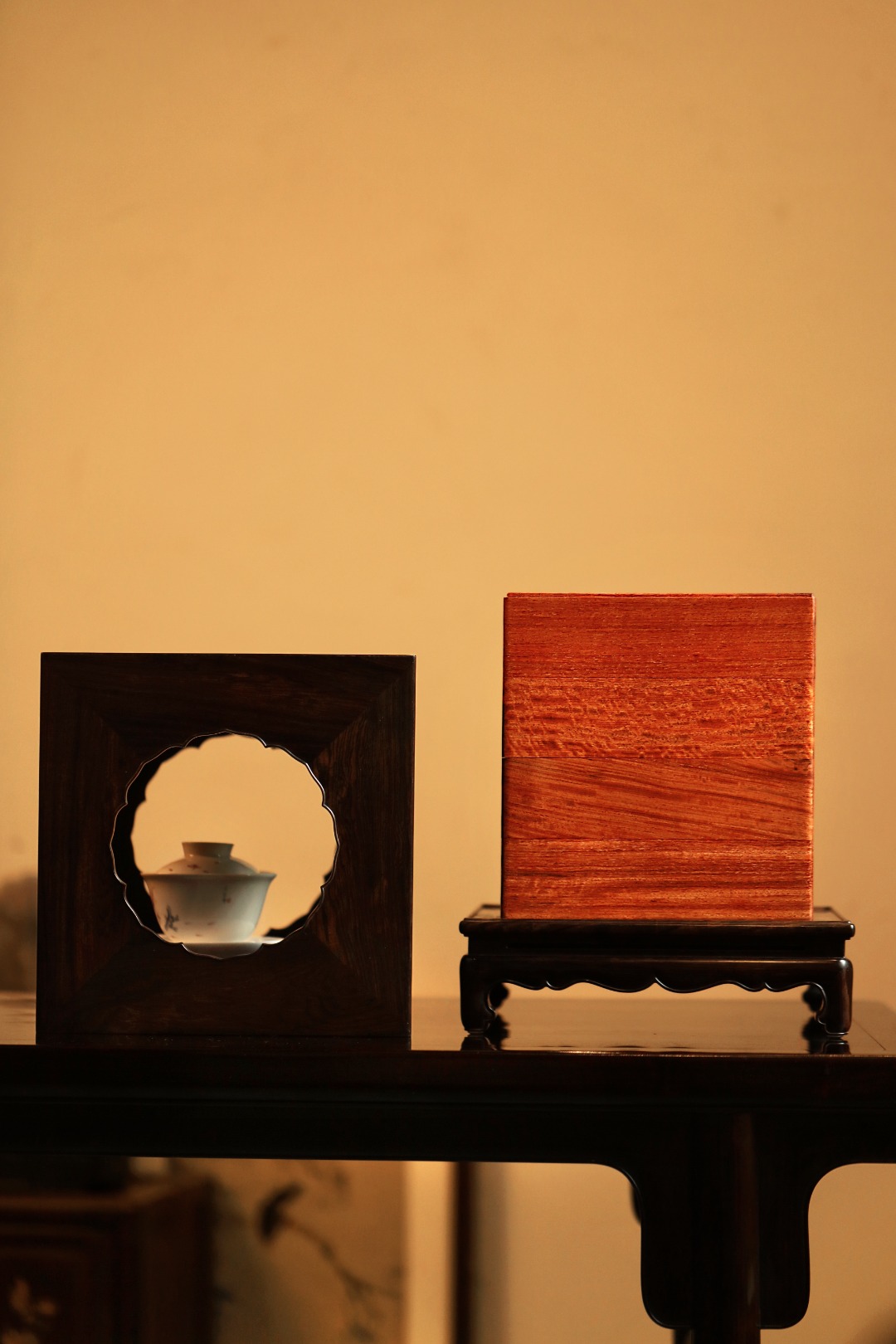 紫光檀外框四面葵形镂空,面面可观;