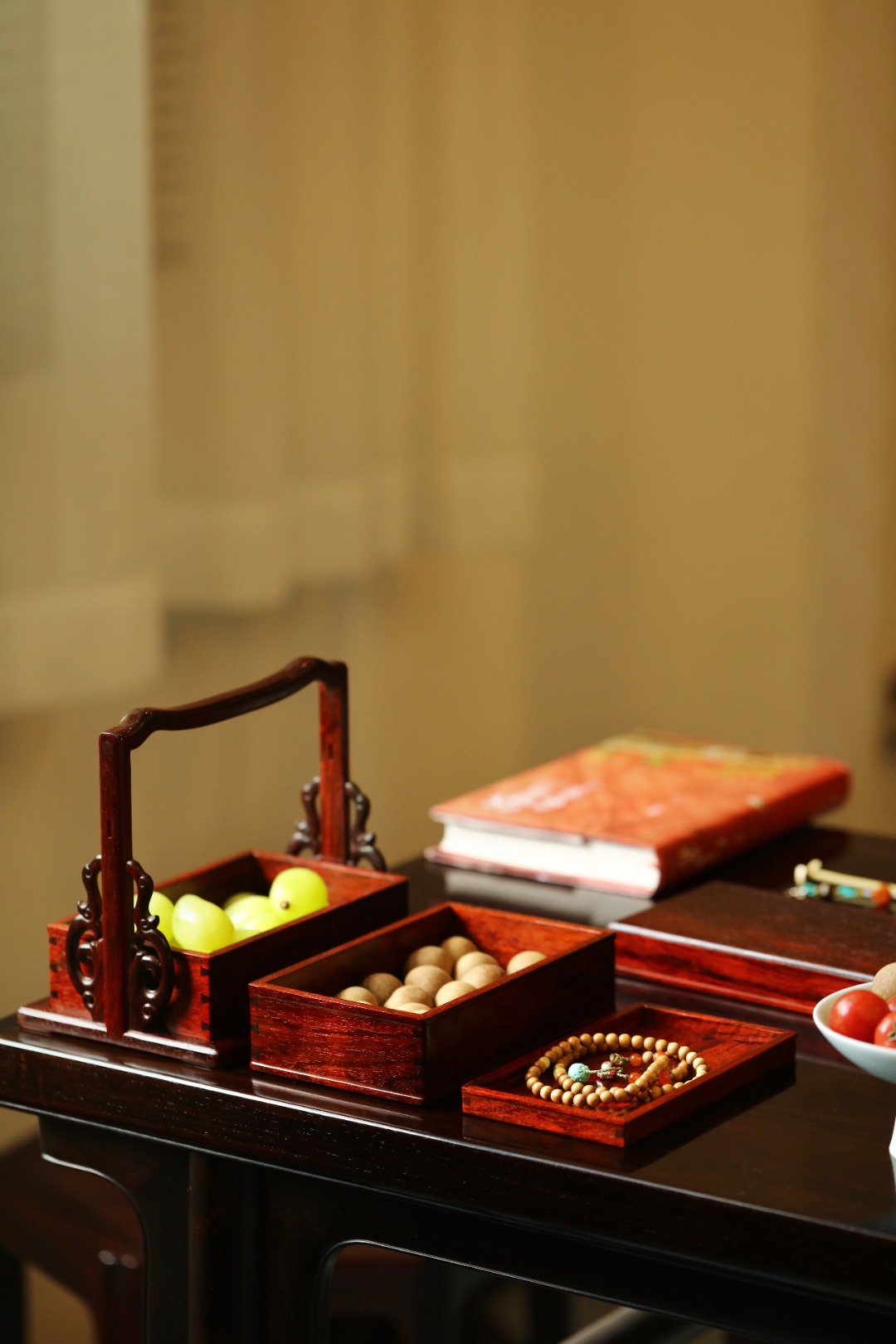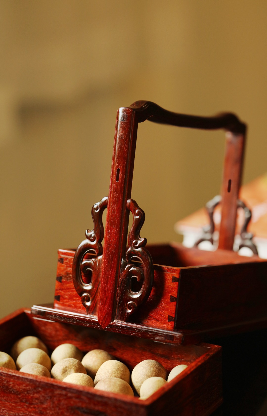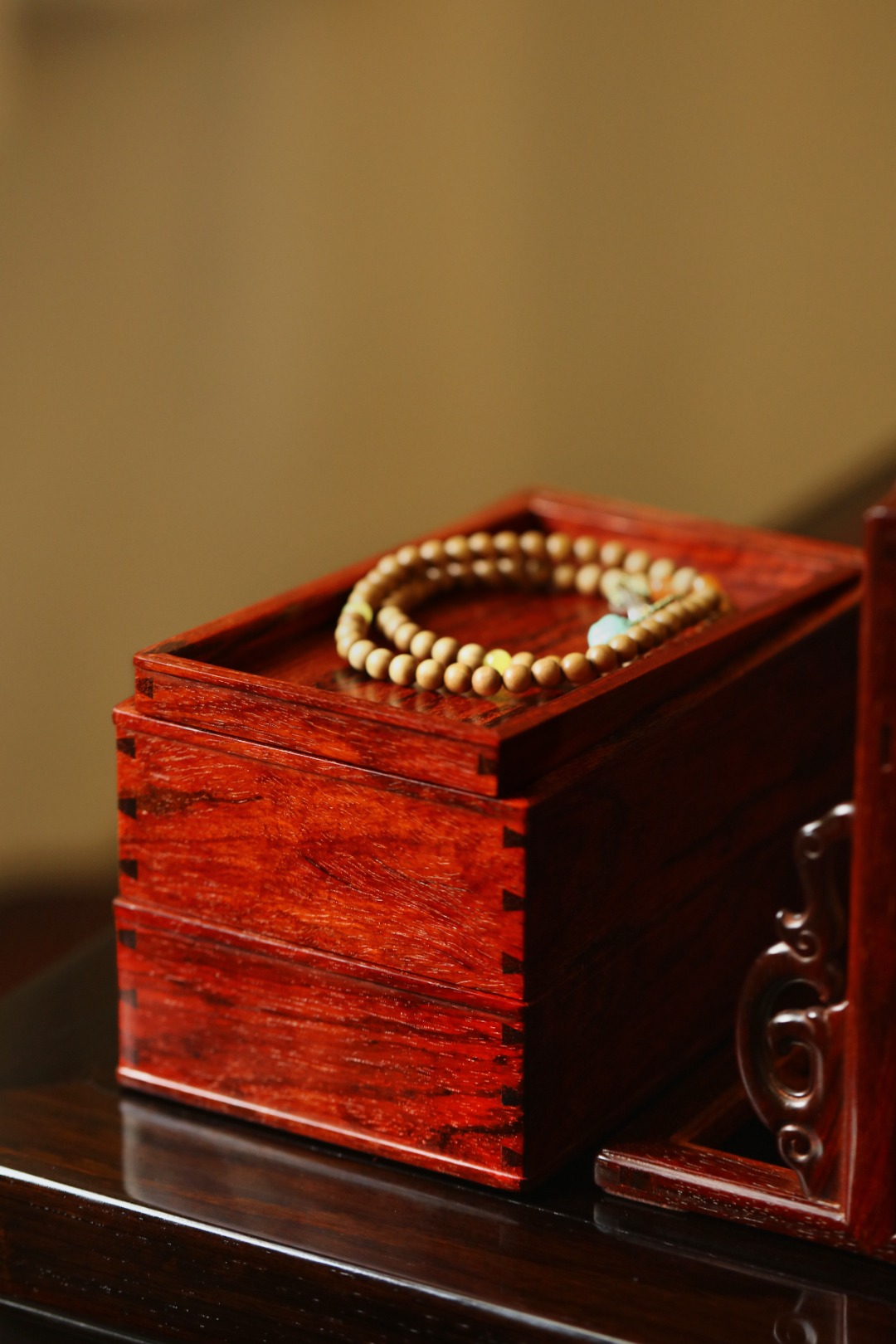 紫檀料质细腻润泽,榫卯严谨工艺细致,