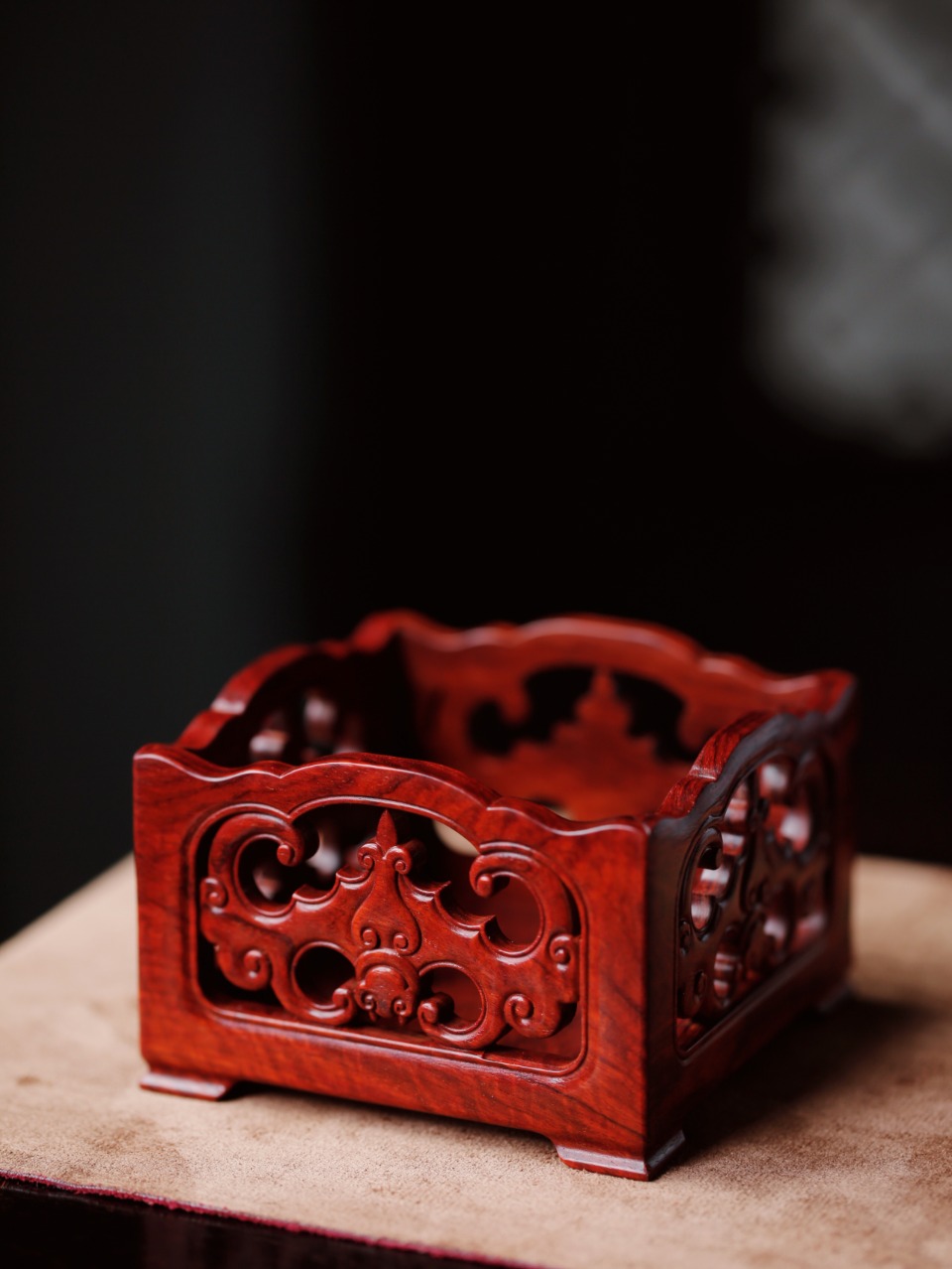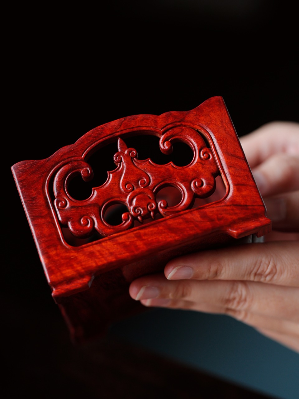 方形独板镂雕蝙蝠纹,